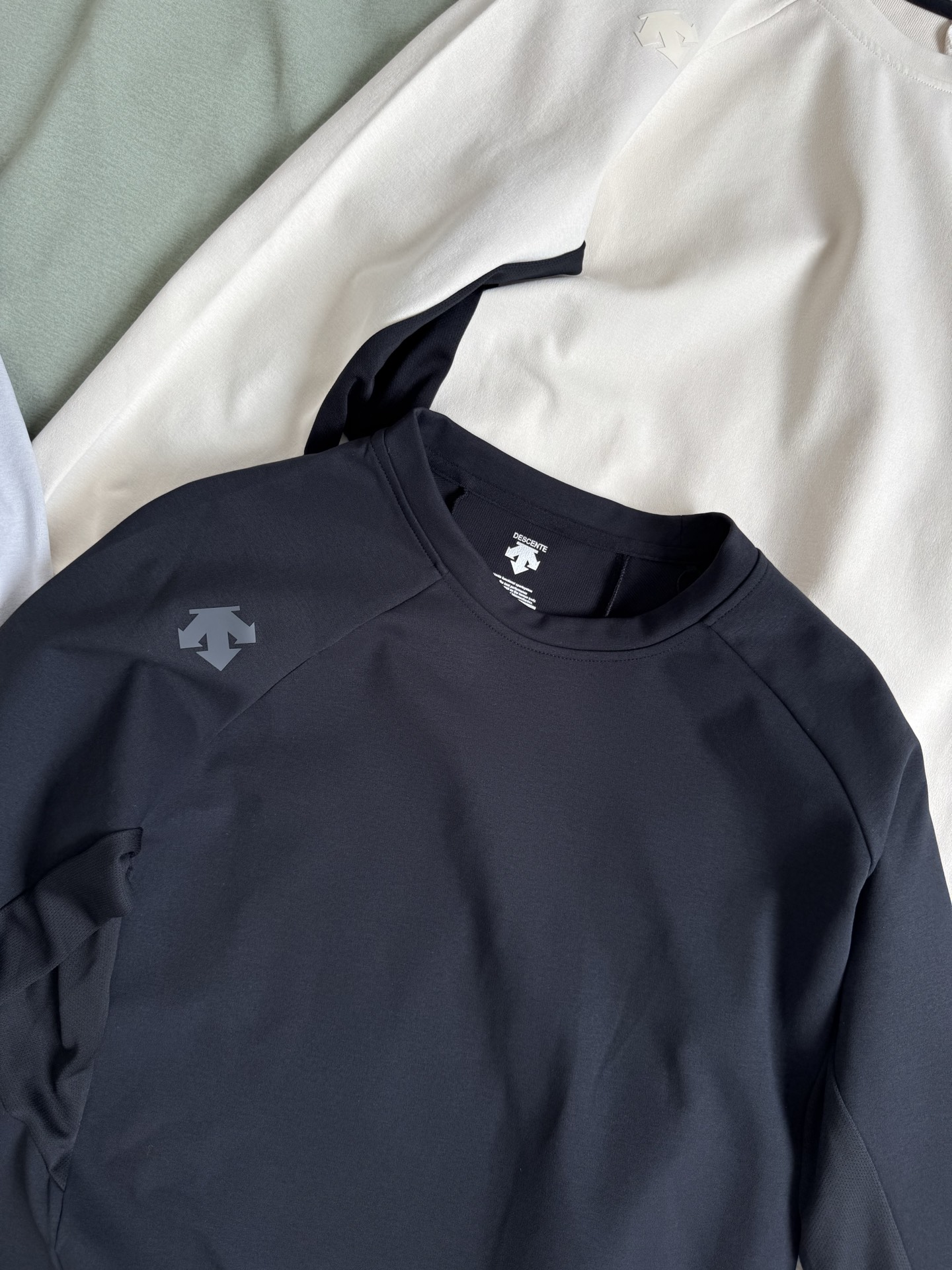 Experience ultimate comfort with the Descente long sleeve shirt. Perfect for workouts or daily wear, featuring breathable, moisture-wicking fabric.