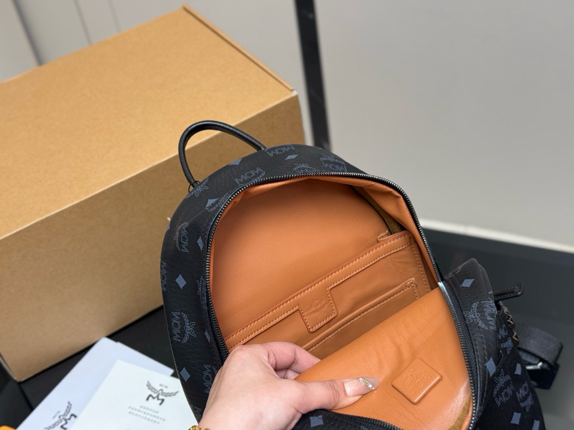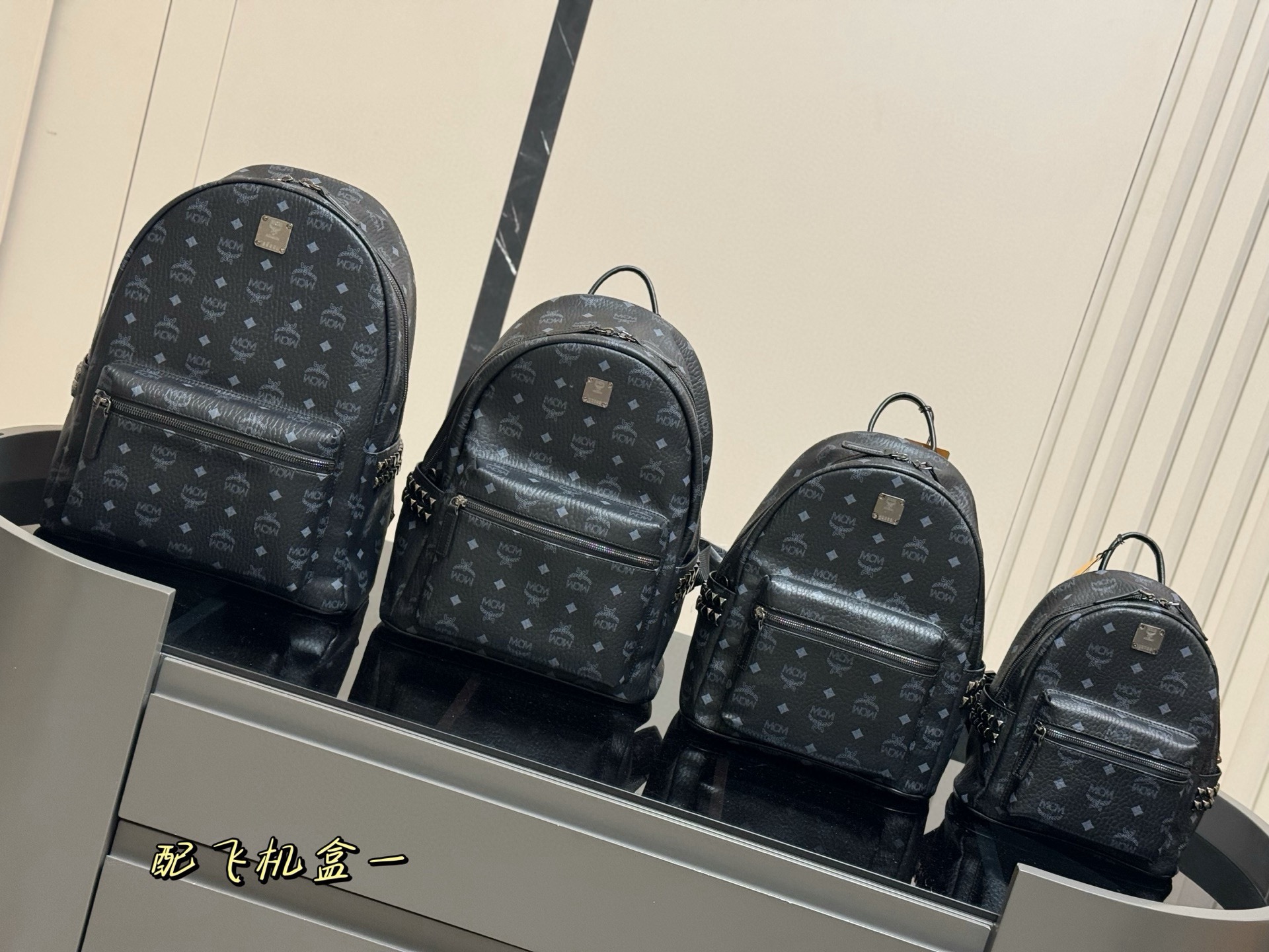 Stylish MCM backpack with signature logo print. Available in multiple sizes for all your needs. Perfect for everyday use.