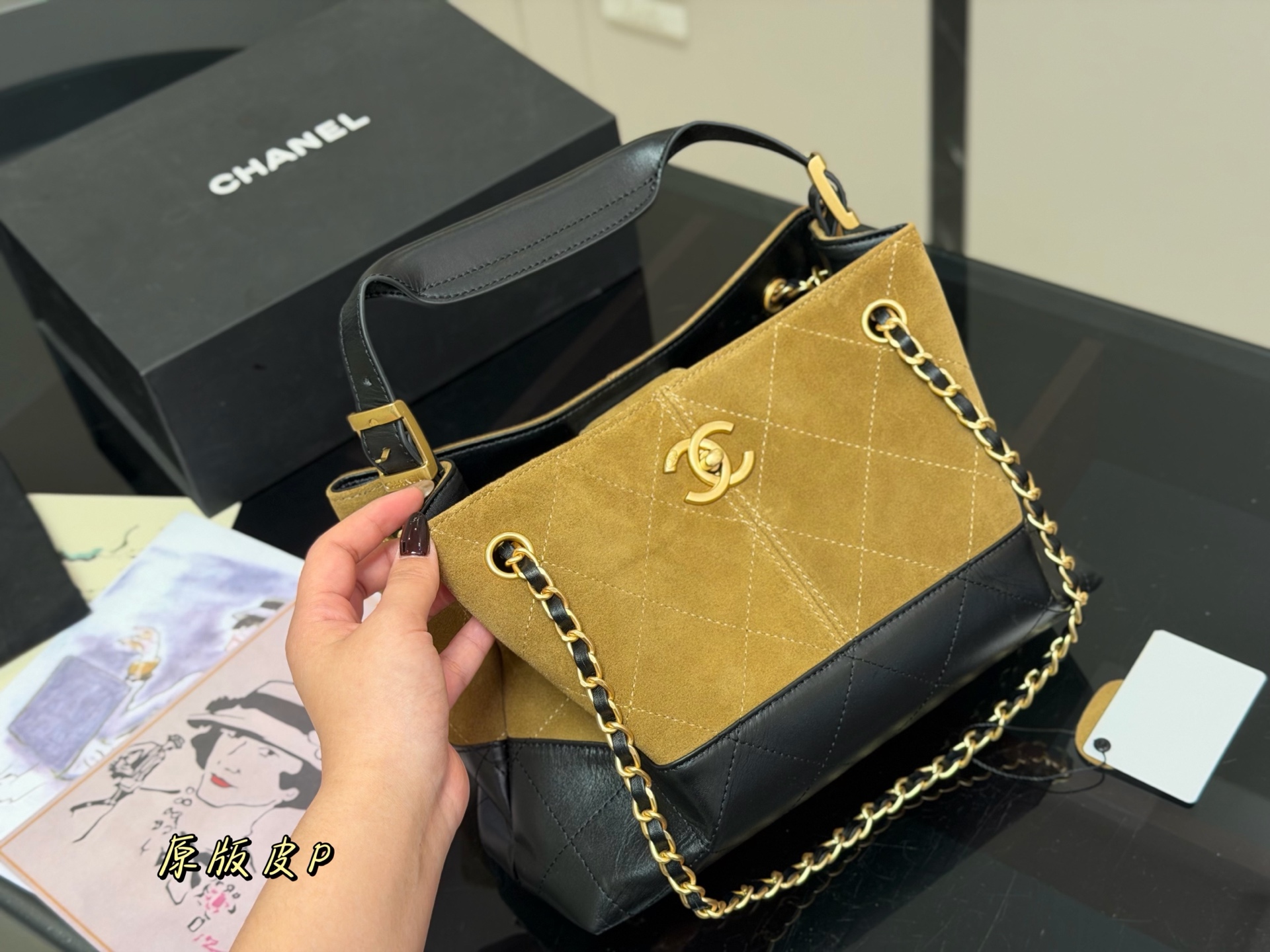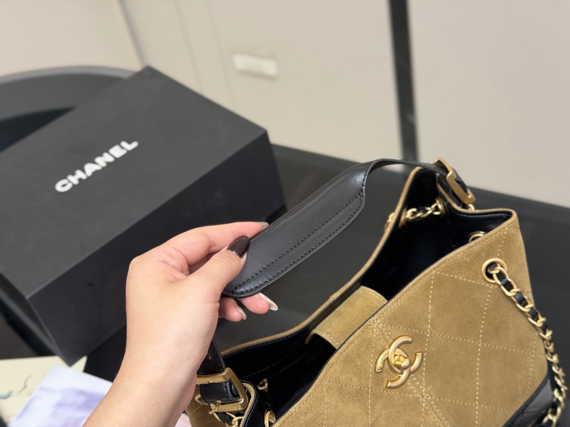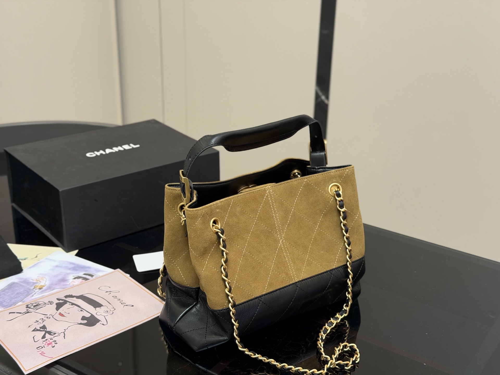 Chanel 25a suede tote bag with Mellard color series, versatile color. Can be carried by hand or under the arm for a relaxed feel.