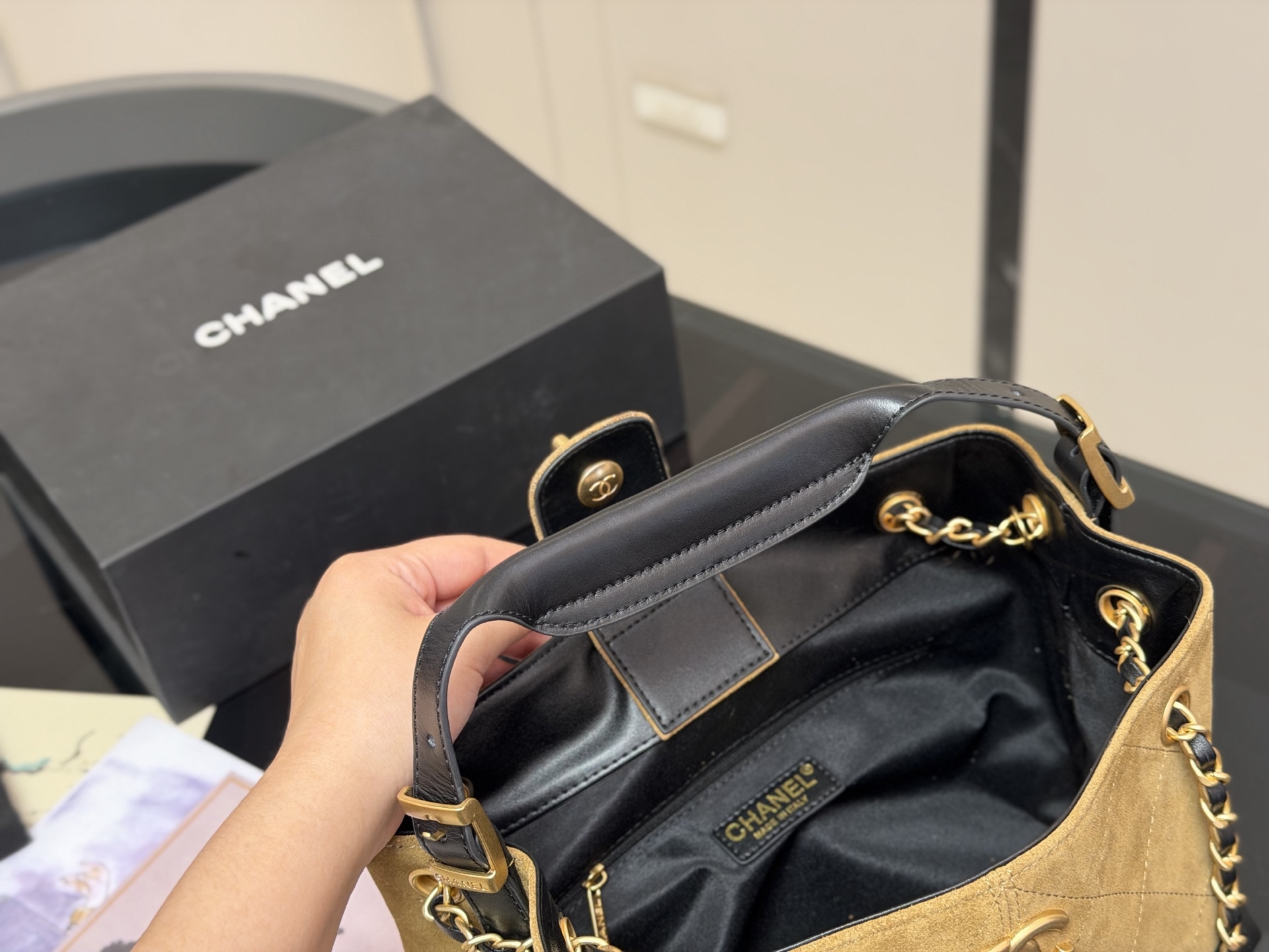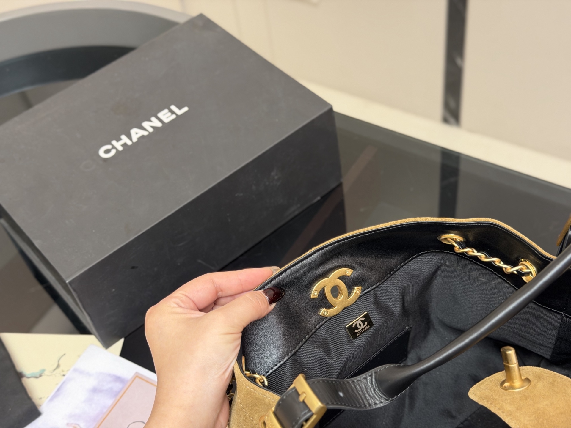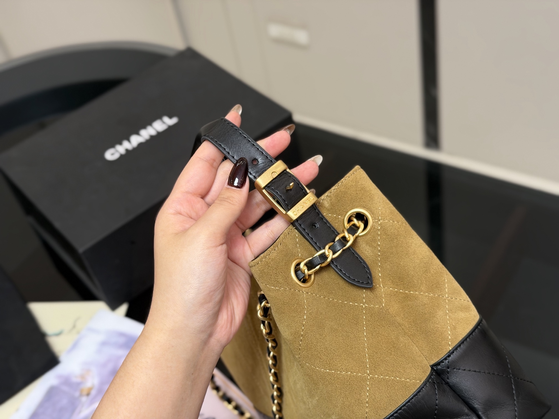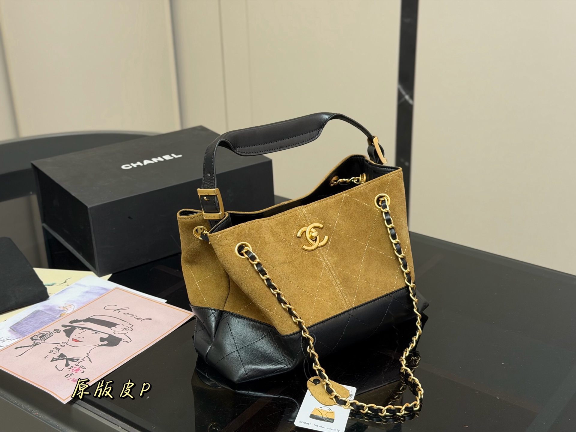 Chanel 25a suede tote bag with Mellard color series, versatile color. Can be carried by hand or under the arm for a relaxed feel.