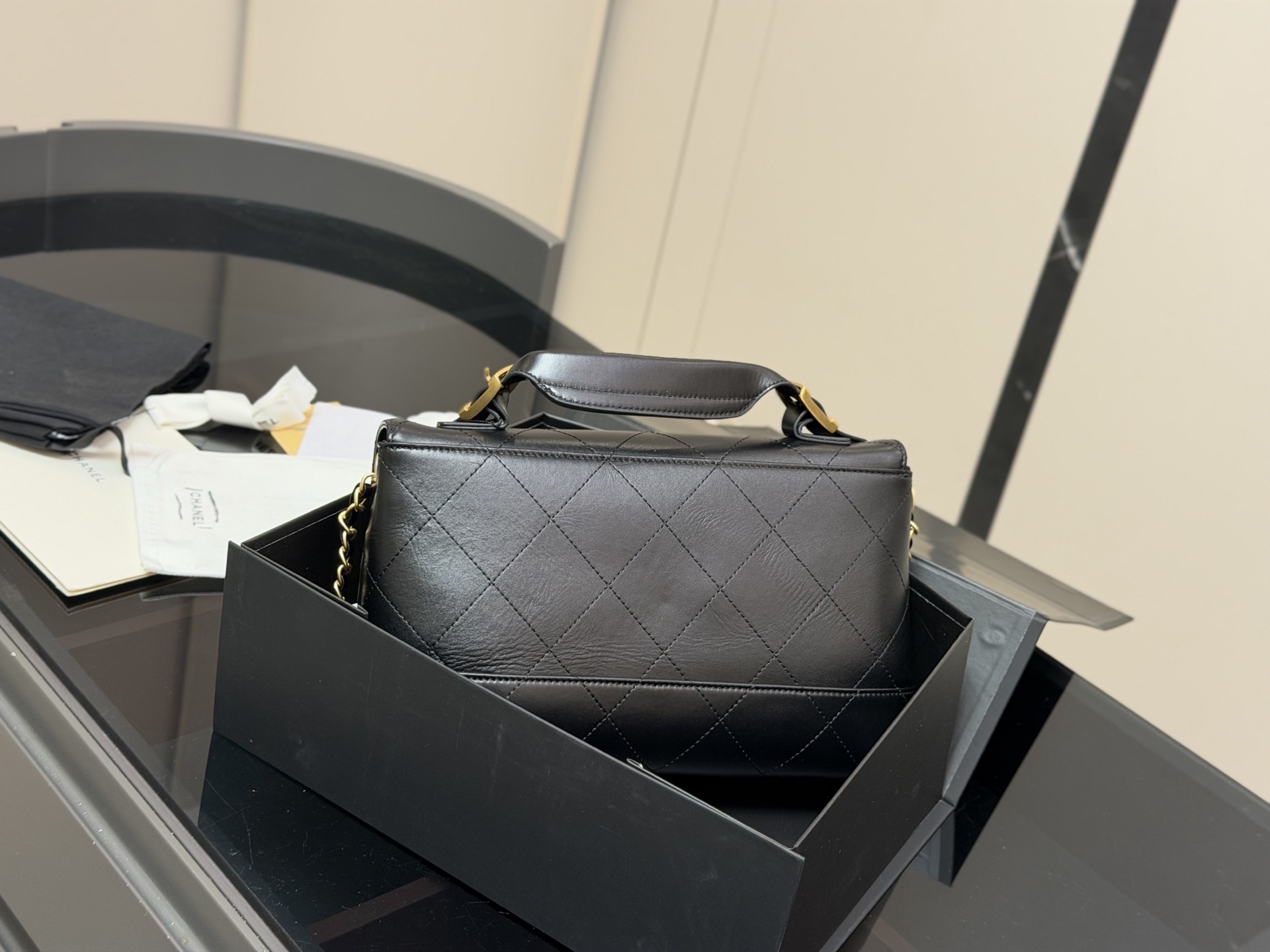 This Chanel briefcase is a timeless piece that will elevate any outfit. Its classic design and high-quality craftsmanship make it a worthwhile investment for years to come.