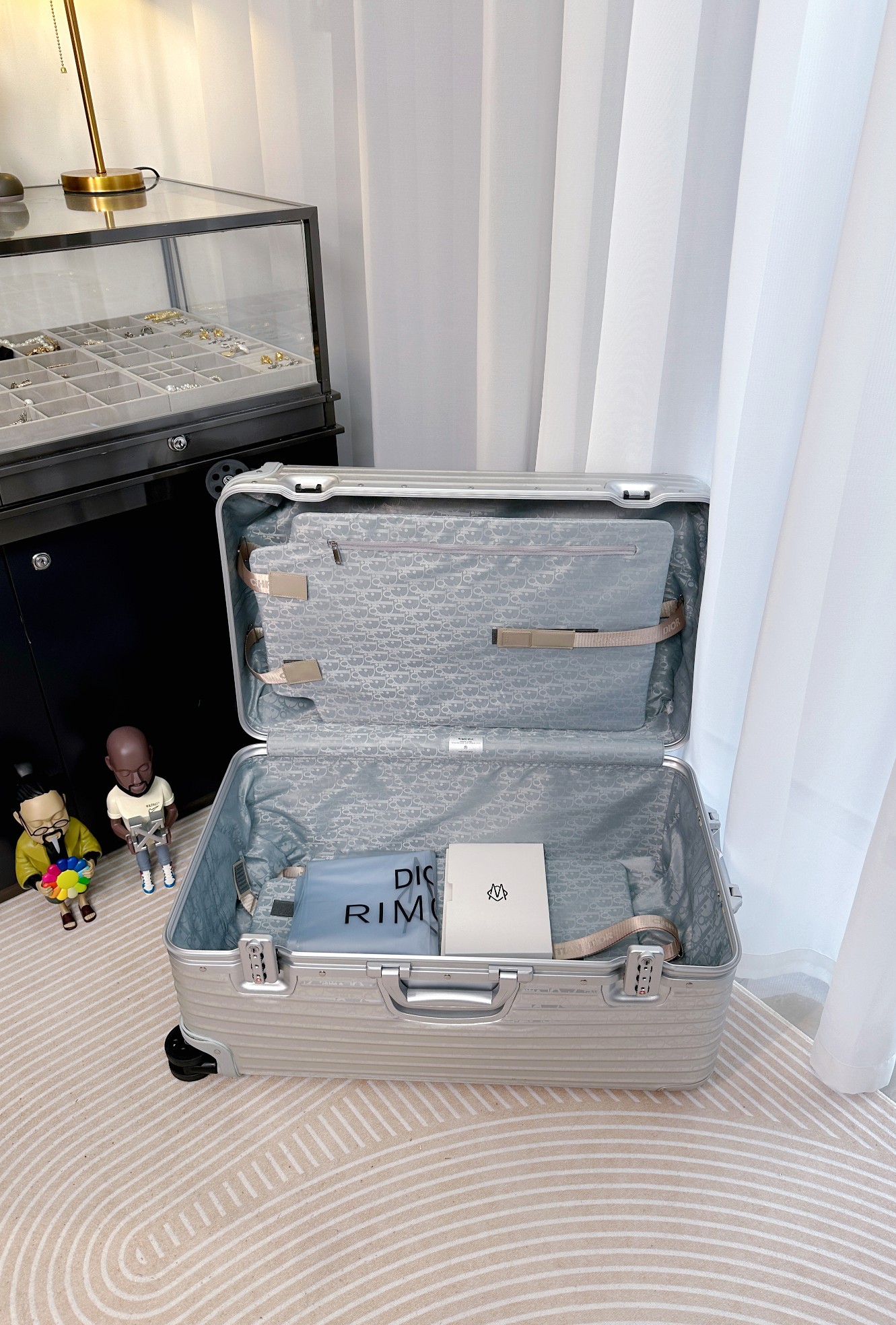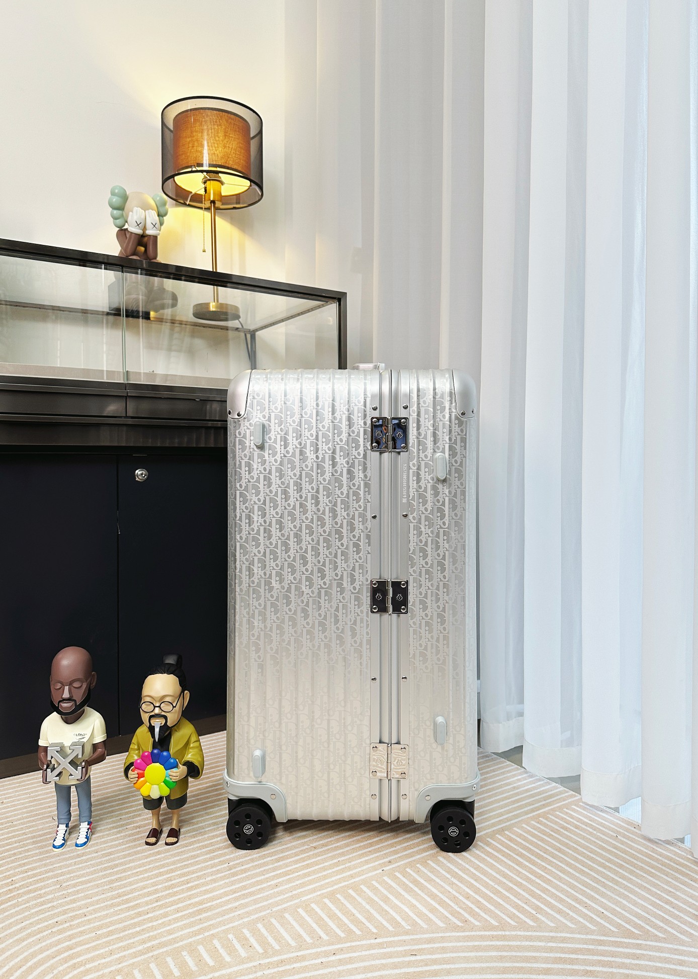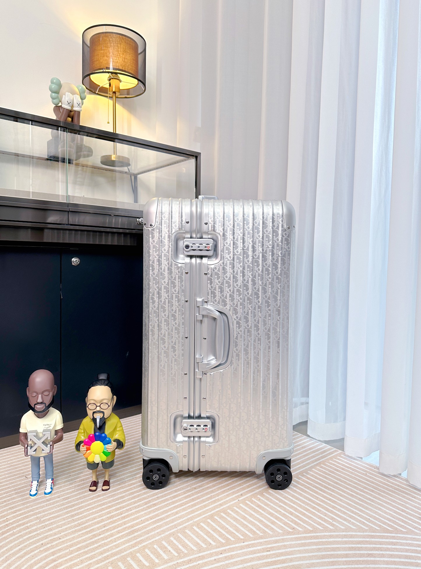 Travel in style with the Dior x Rimowa suitcase! Crafted from premium aluminum, this 31-inch trolley features a secure lock and smooth-rolling wheels.