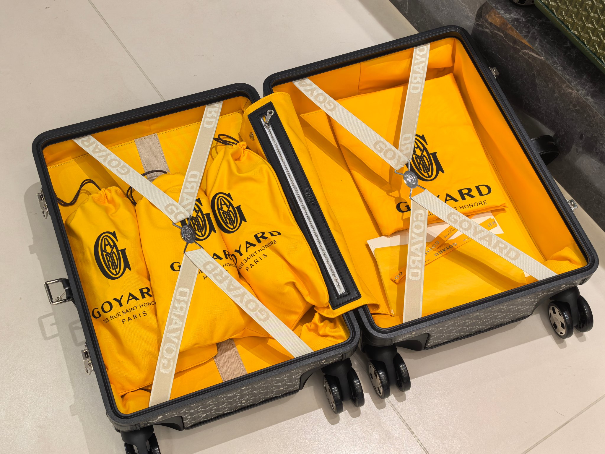 Elevate your travel experience with the Goyard 20-inch cabin luggage, a statement piece that embodies luxury and sophistication.