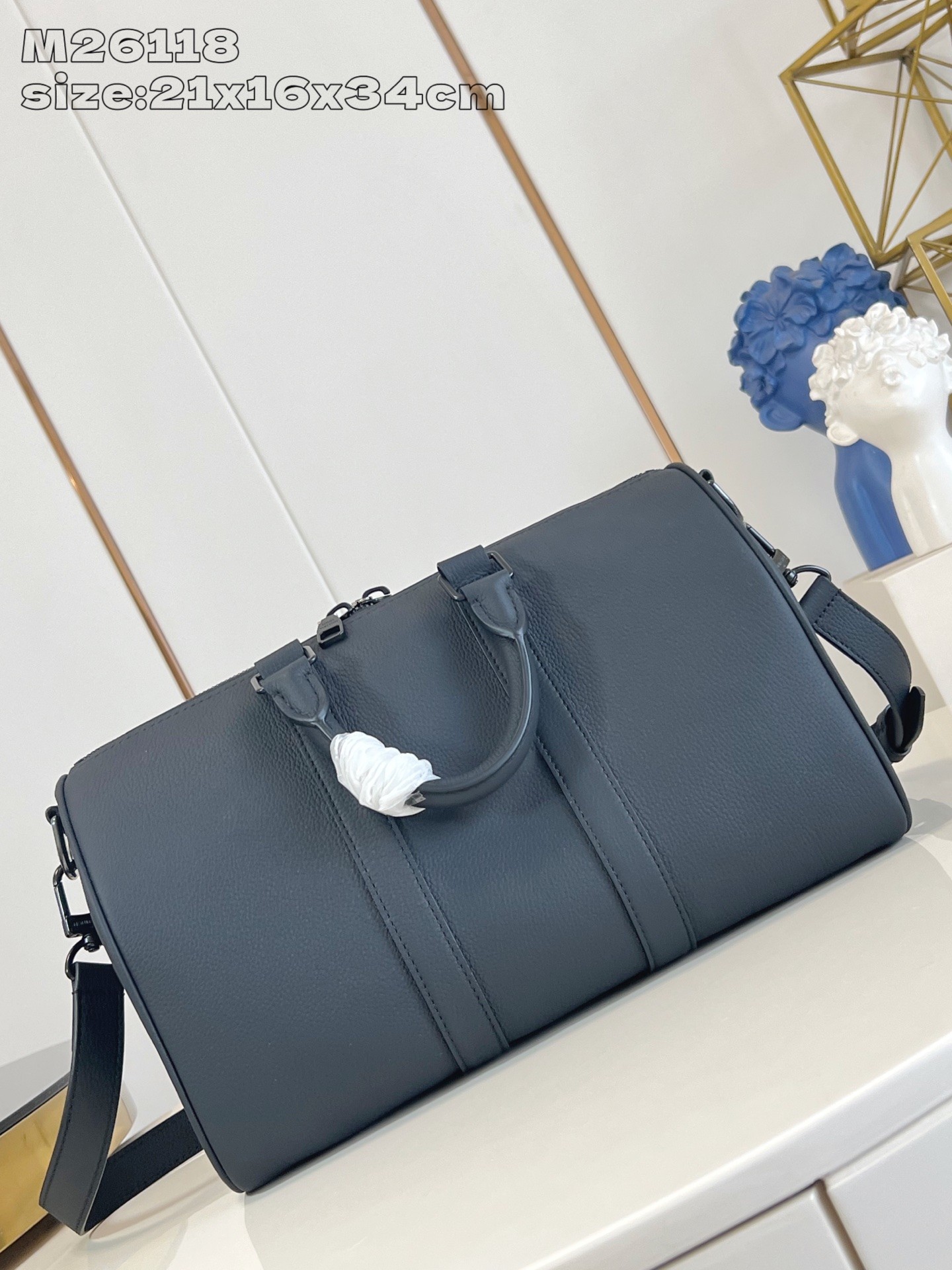 The Louis Vuitton Aerogram Keepall Bandoulière 35 is the epitome of luxury travel accessories. Crafted from premium wax-finished calfskin leather, this bag offers both durability and a sophisticated aesthetic. Its sleek design and ample interior space make it ideal for weekend getaways or as a stylish carry-on.