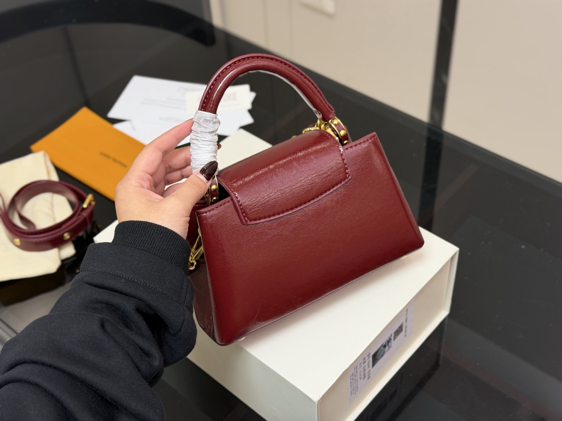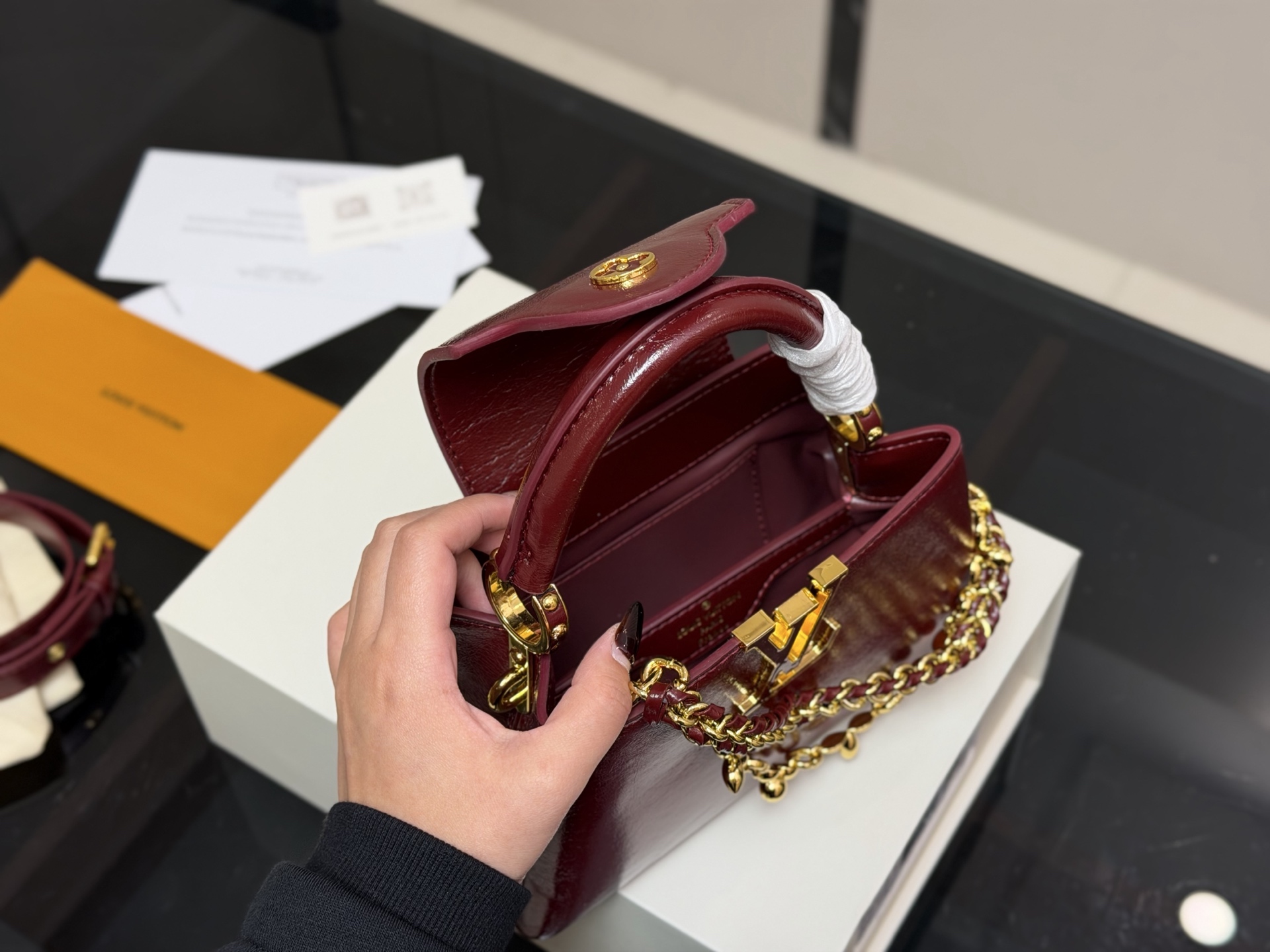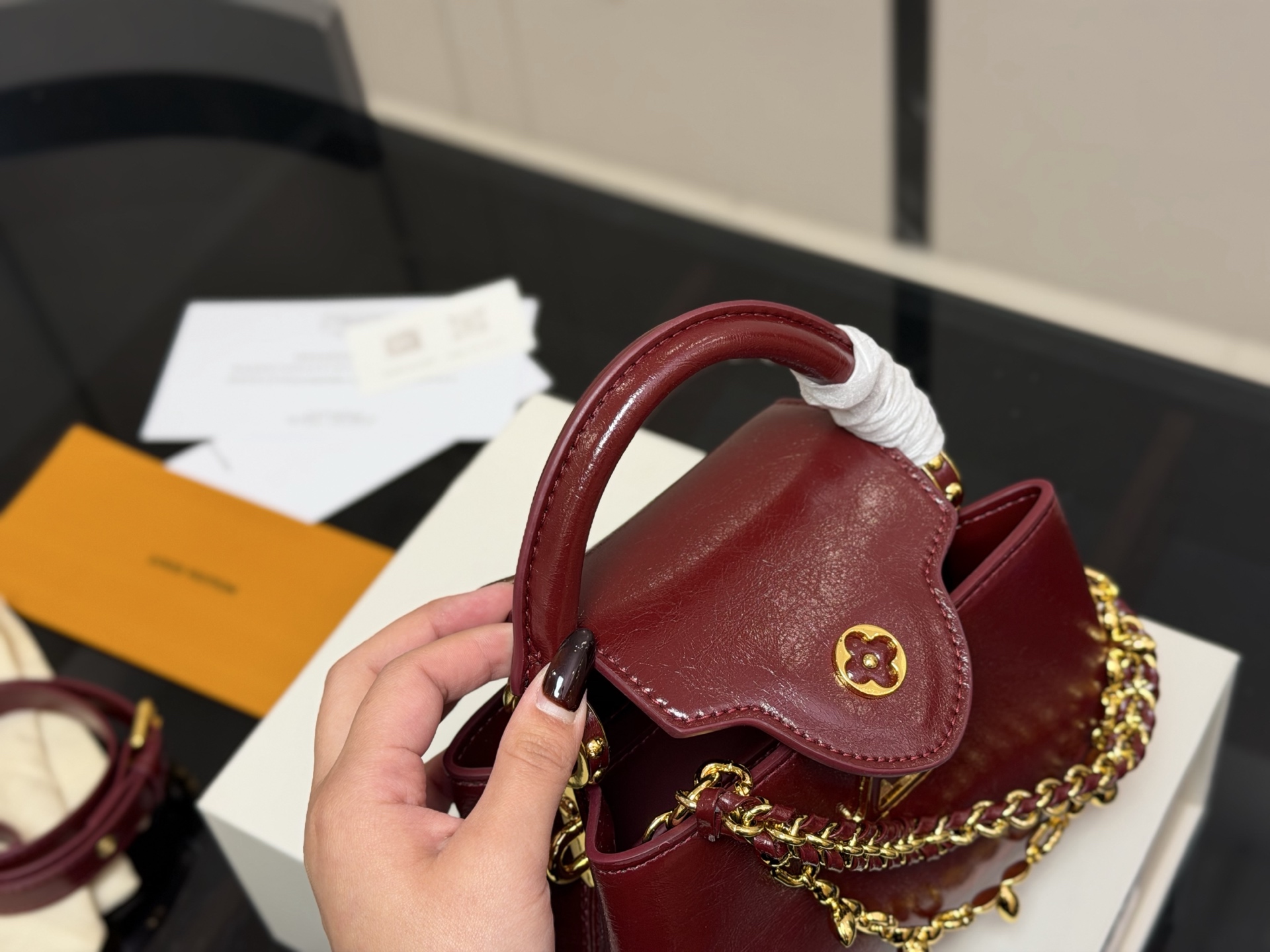 Louis Vuitton Capucines Mini Handbag in Burgundy Taurillon Leather