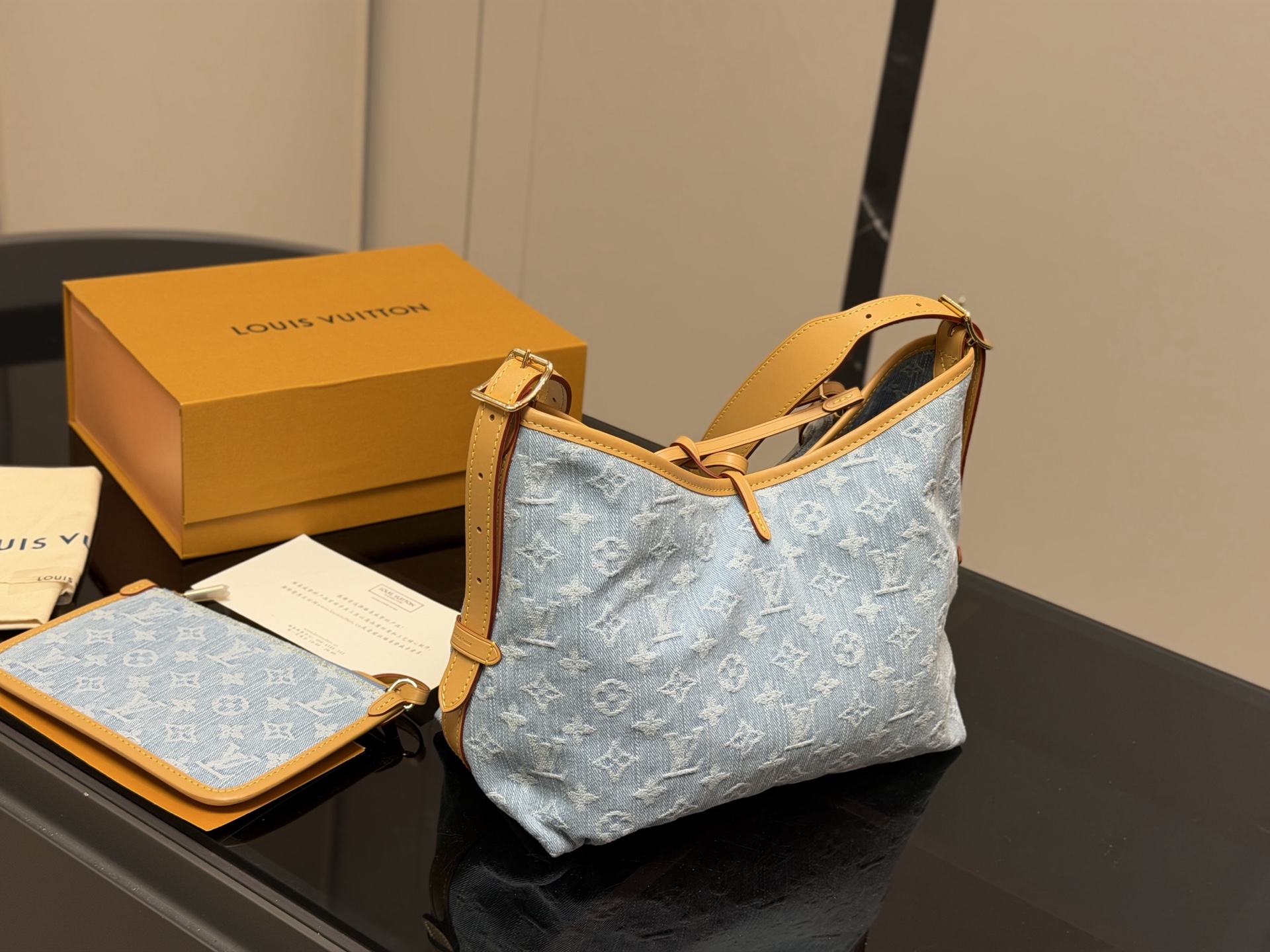 Louis Vuitton CarryAll Denim Hobo Bag with Pouch - Cute & Casual Style