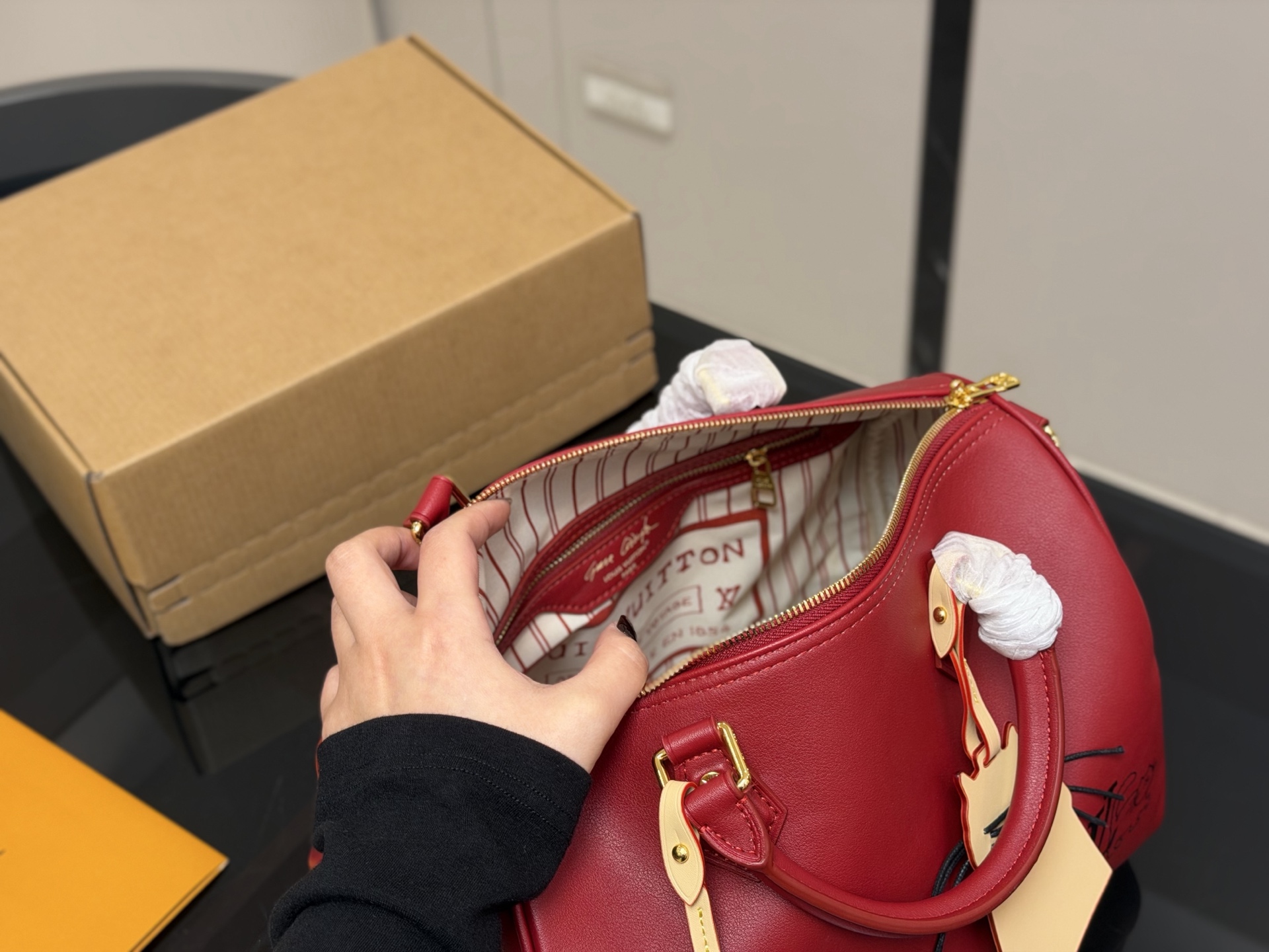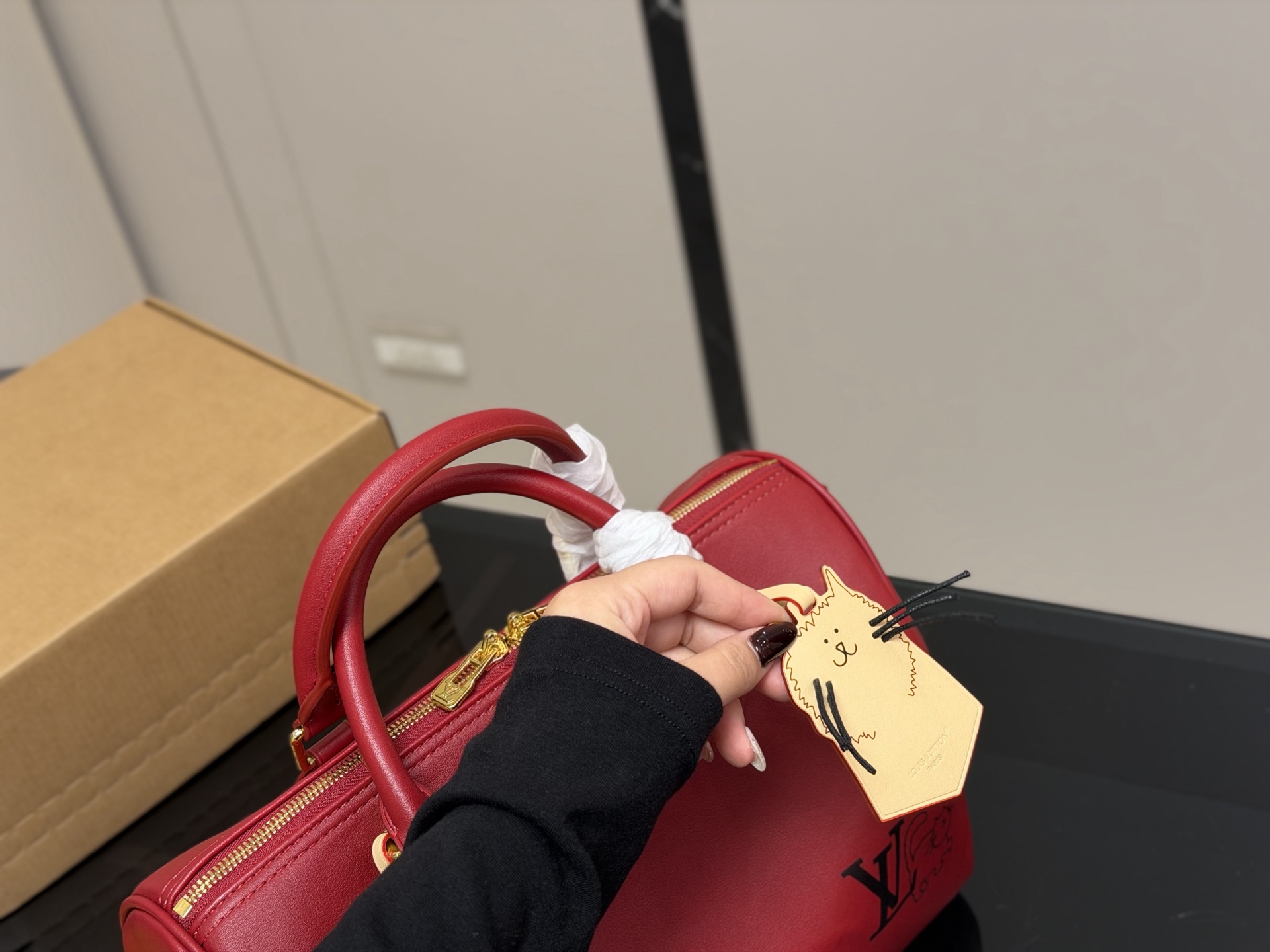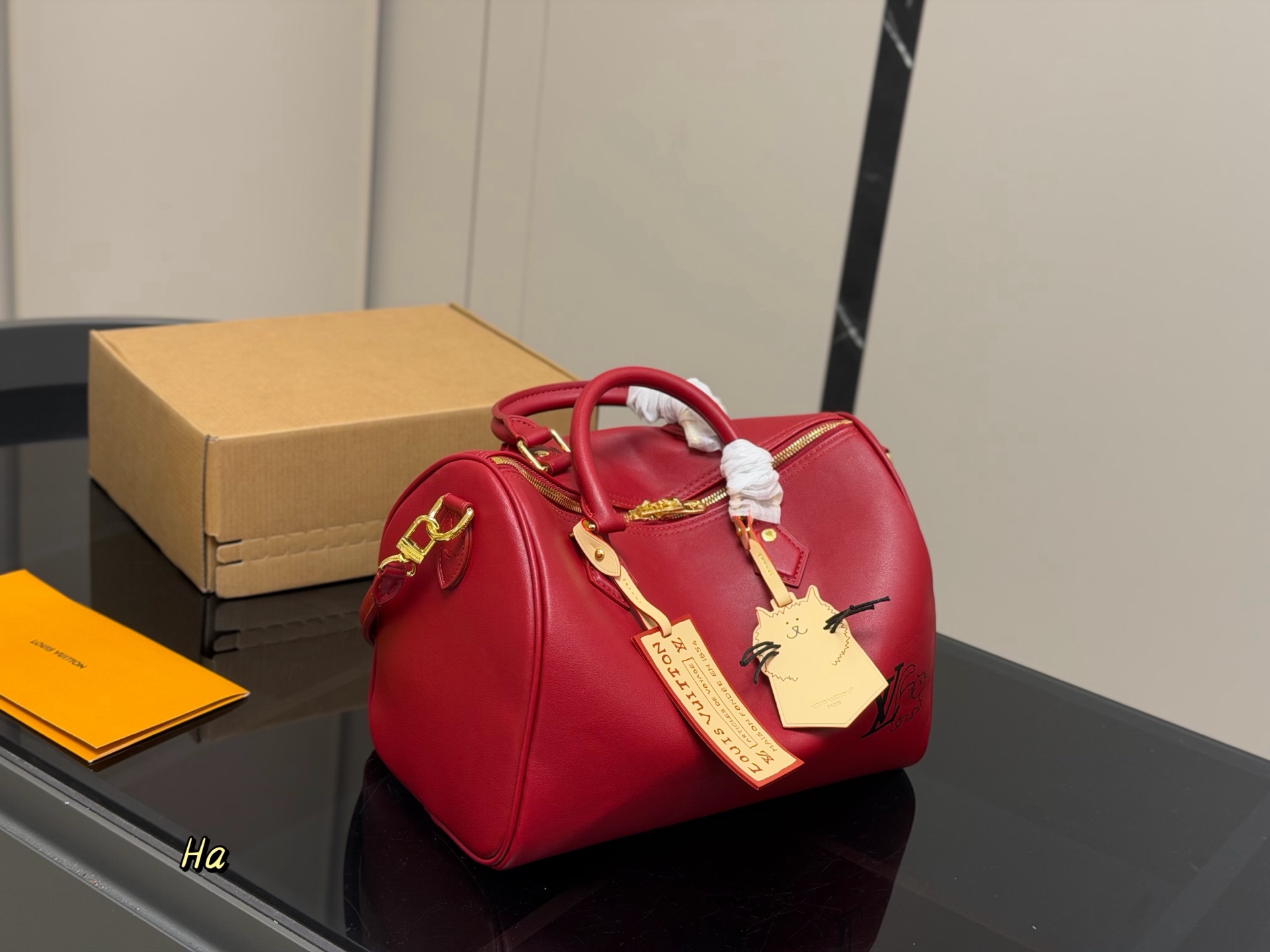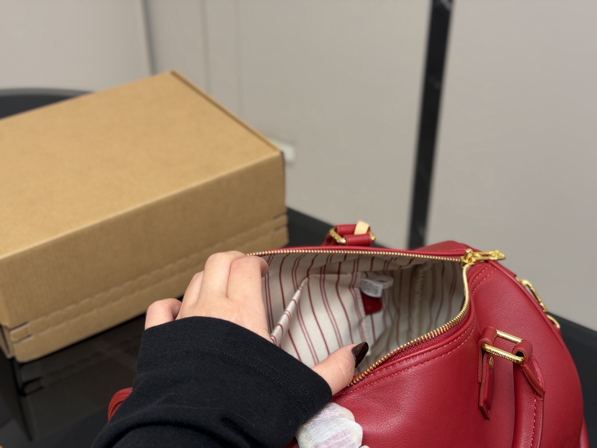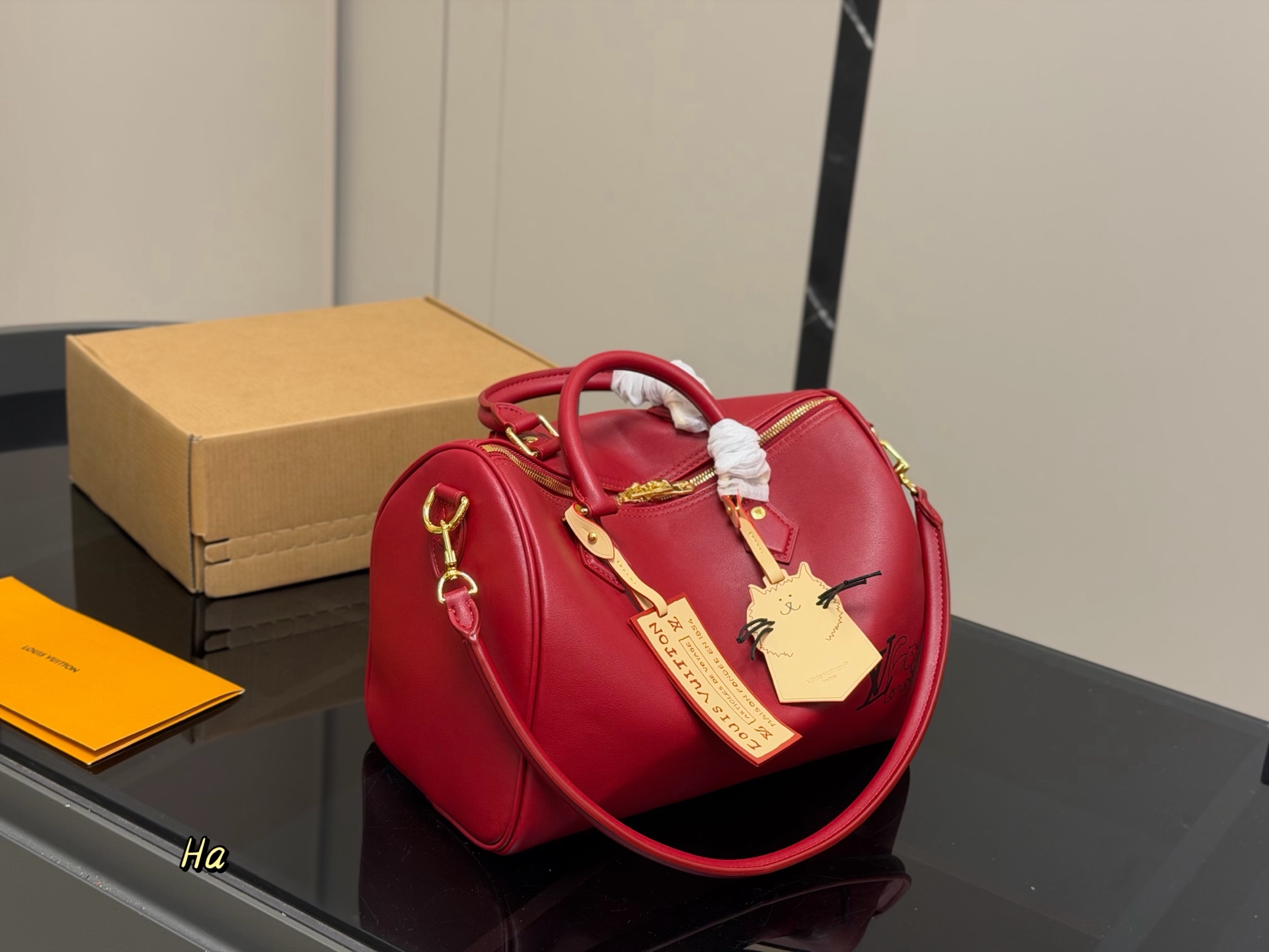 Louis Vuitton Keepall Red Leather Pillow Bag 30cm, Perfect Gift for Him or Her