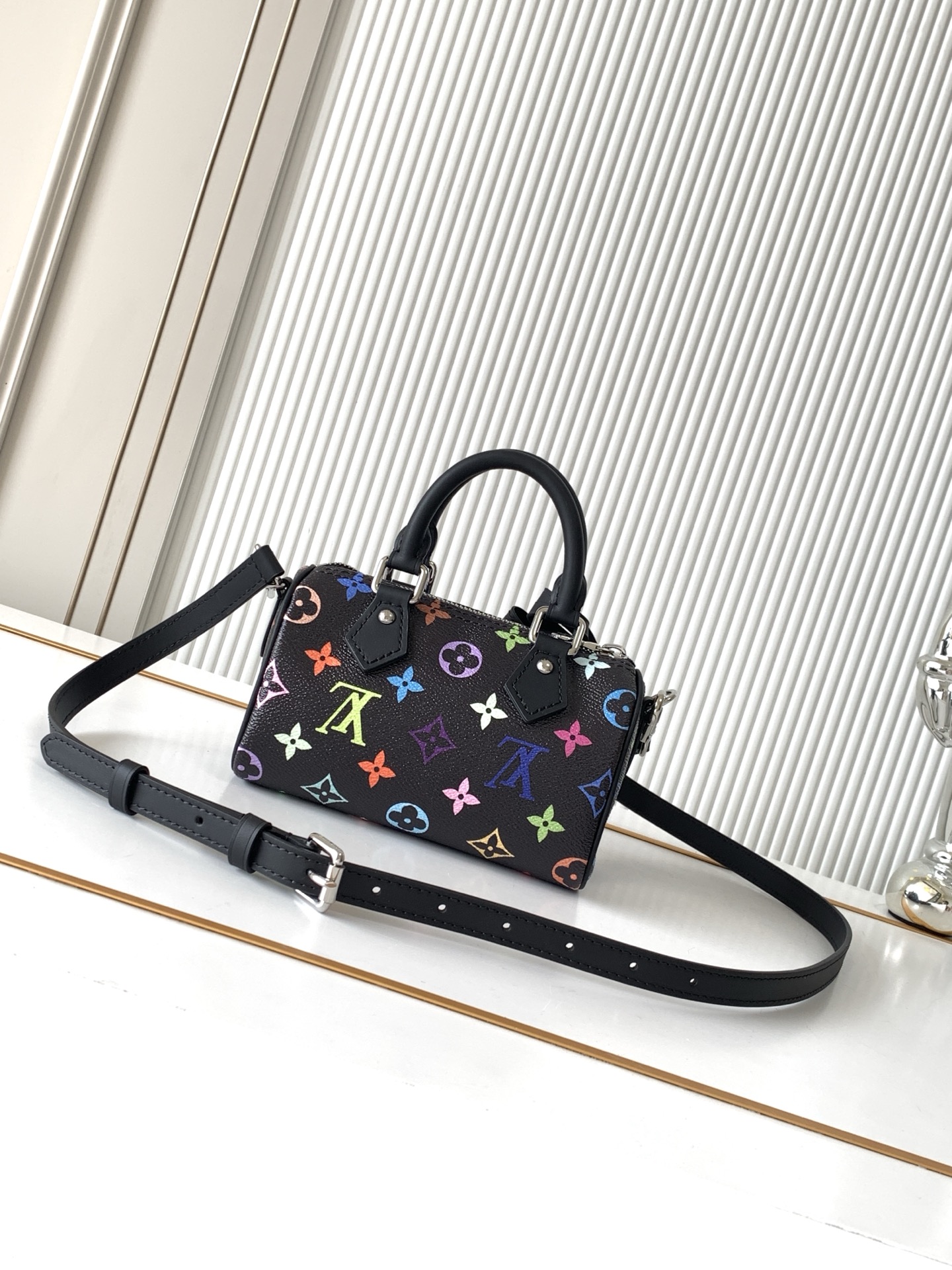 Louis Vuitton Nano Speedy Monogram Coated Canvas Crossbody Bag, Black