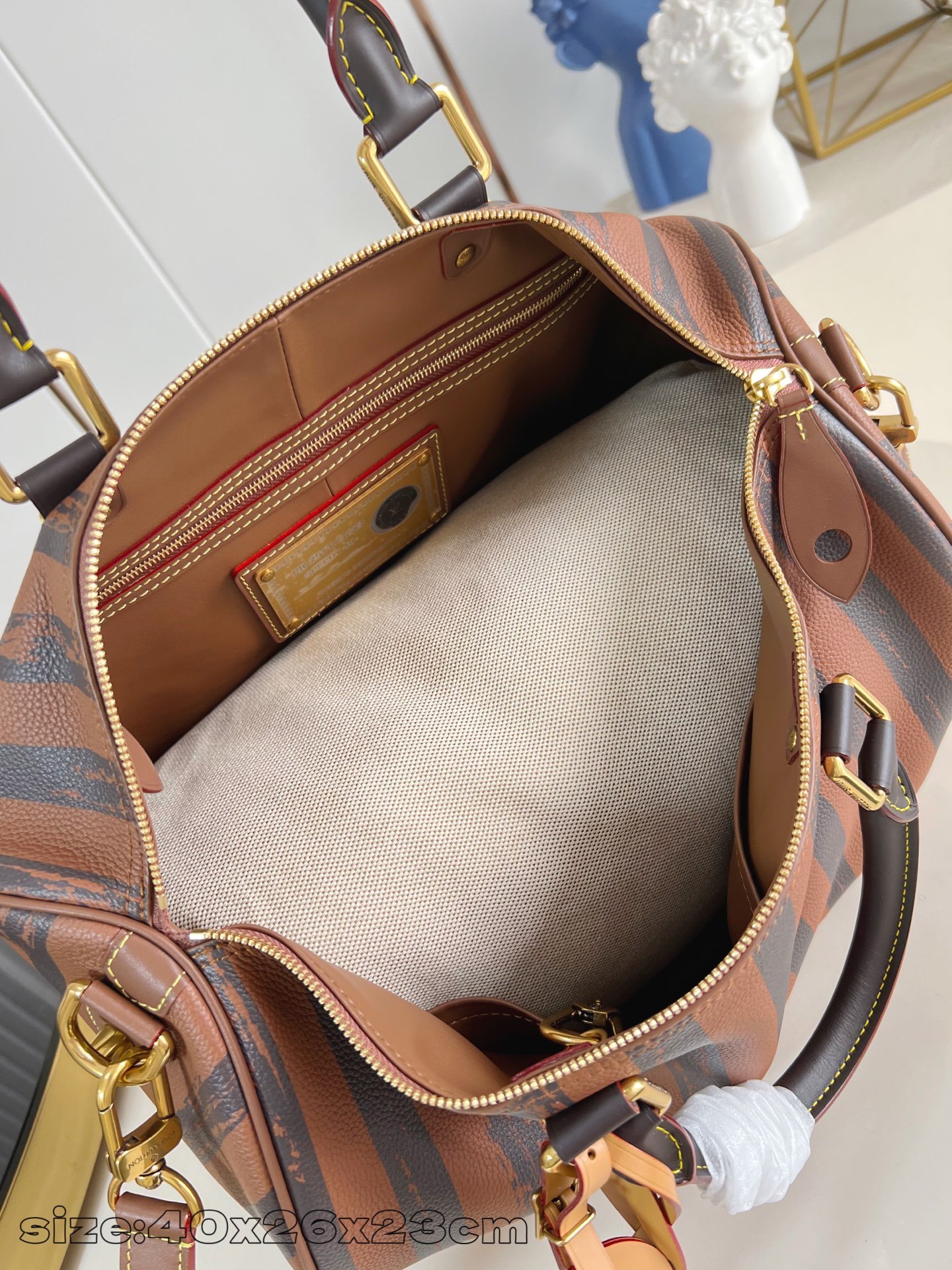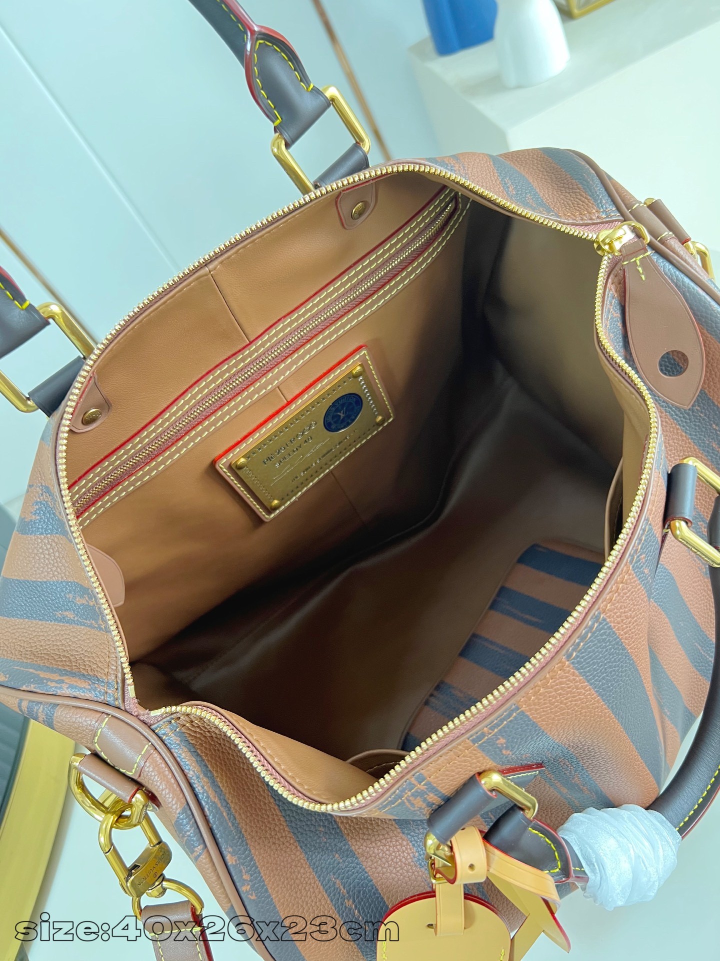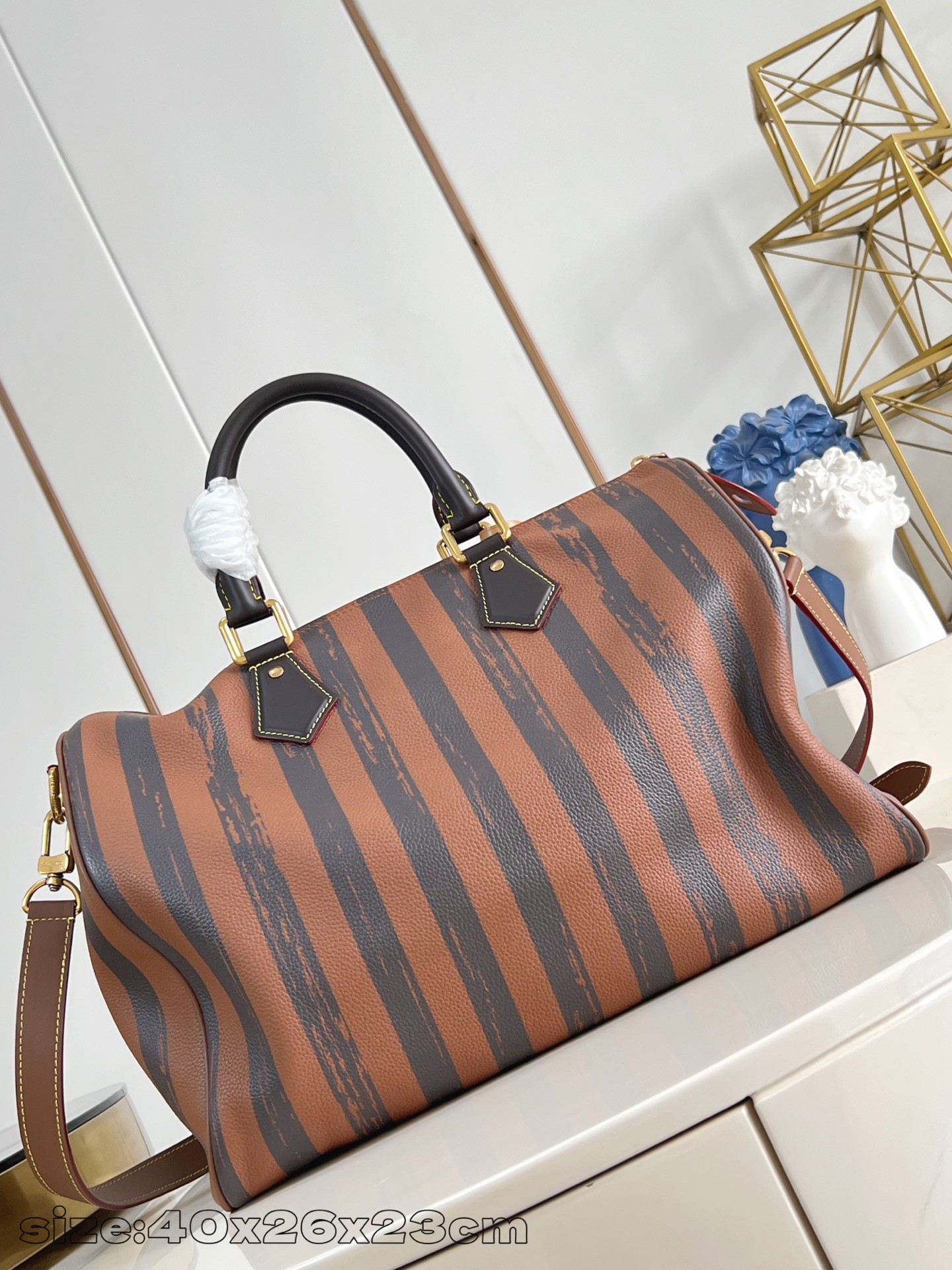 The Louis Vuitton Speedy Bandoulière 40 Monogram Leather handbag showcases the creative vision with its unique blend of classic design and modern aesthetics.