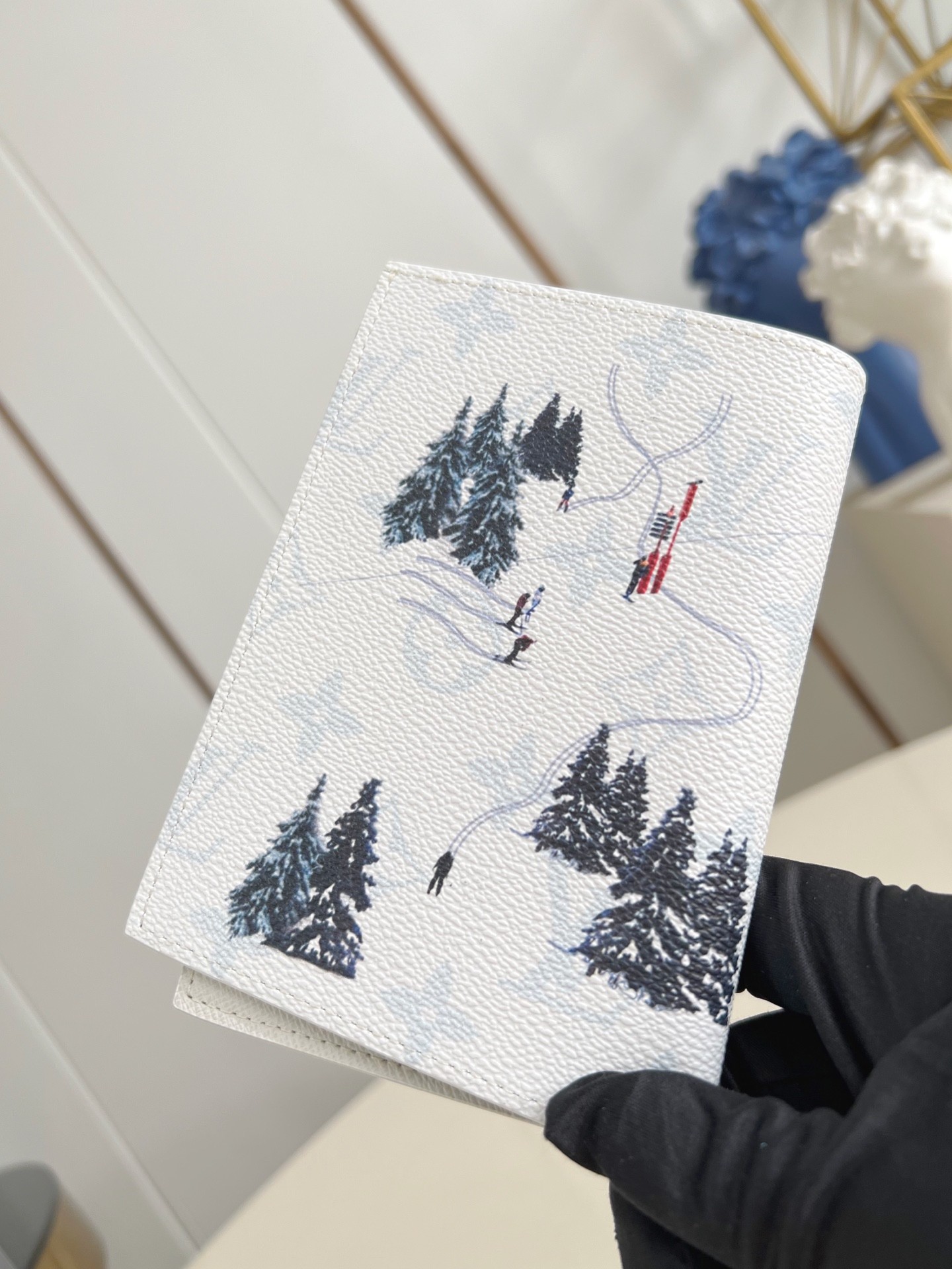 Stylish Coated Canvas Passport Holder with Winter Skiing Design and Card Slots