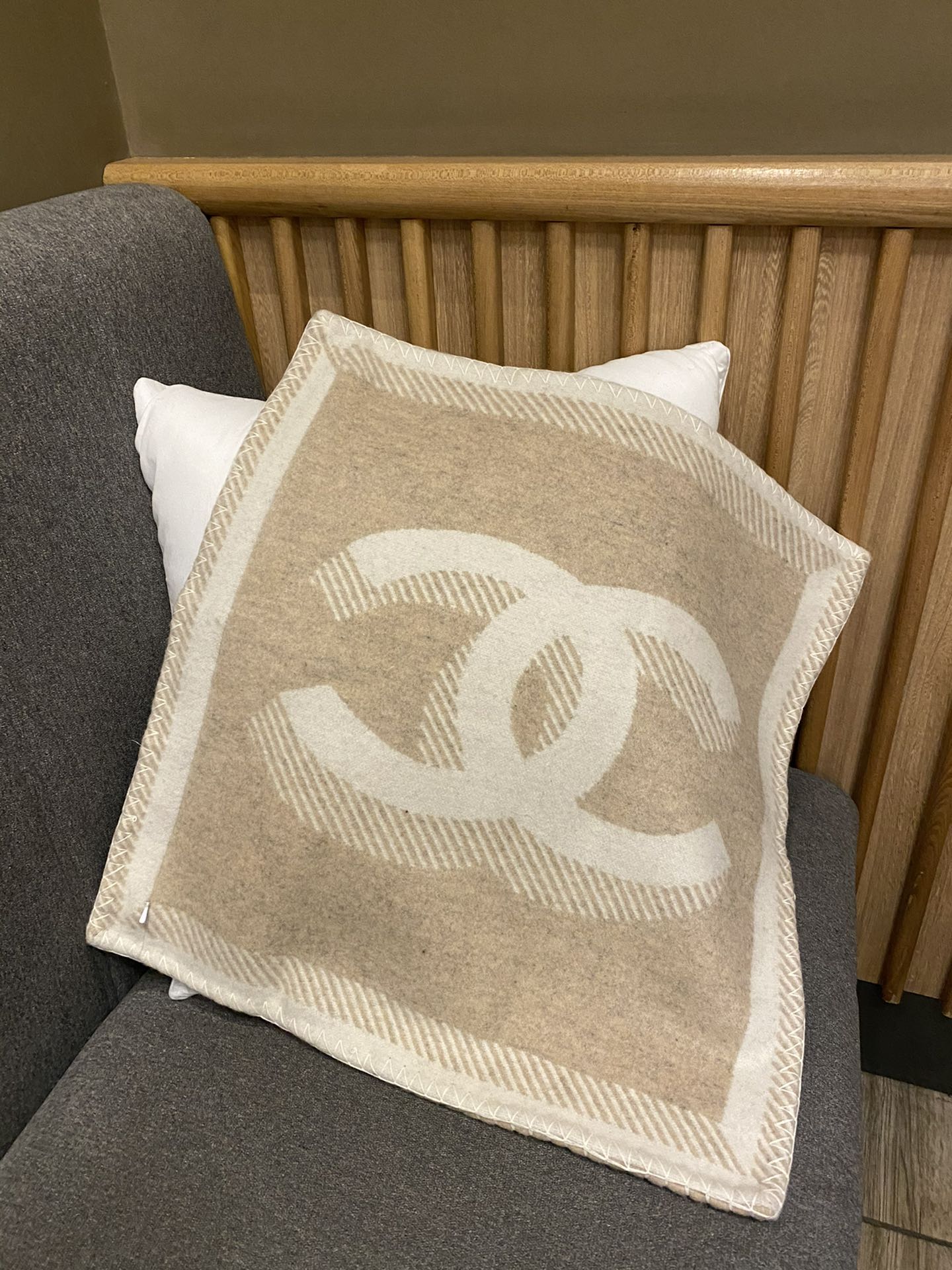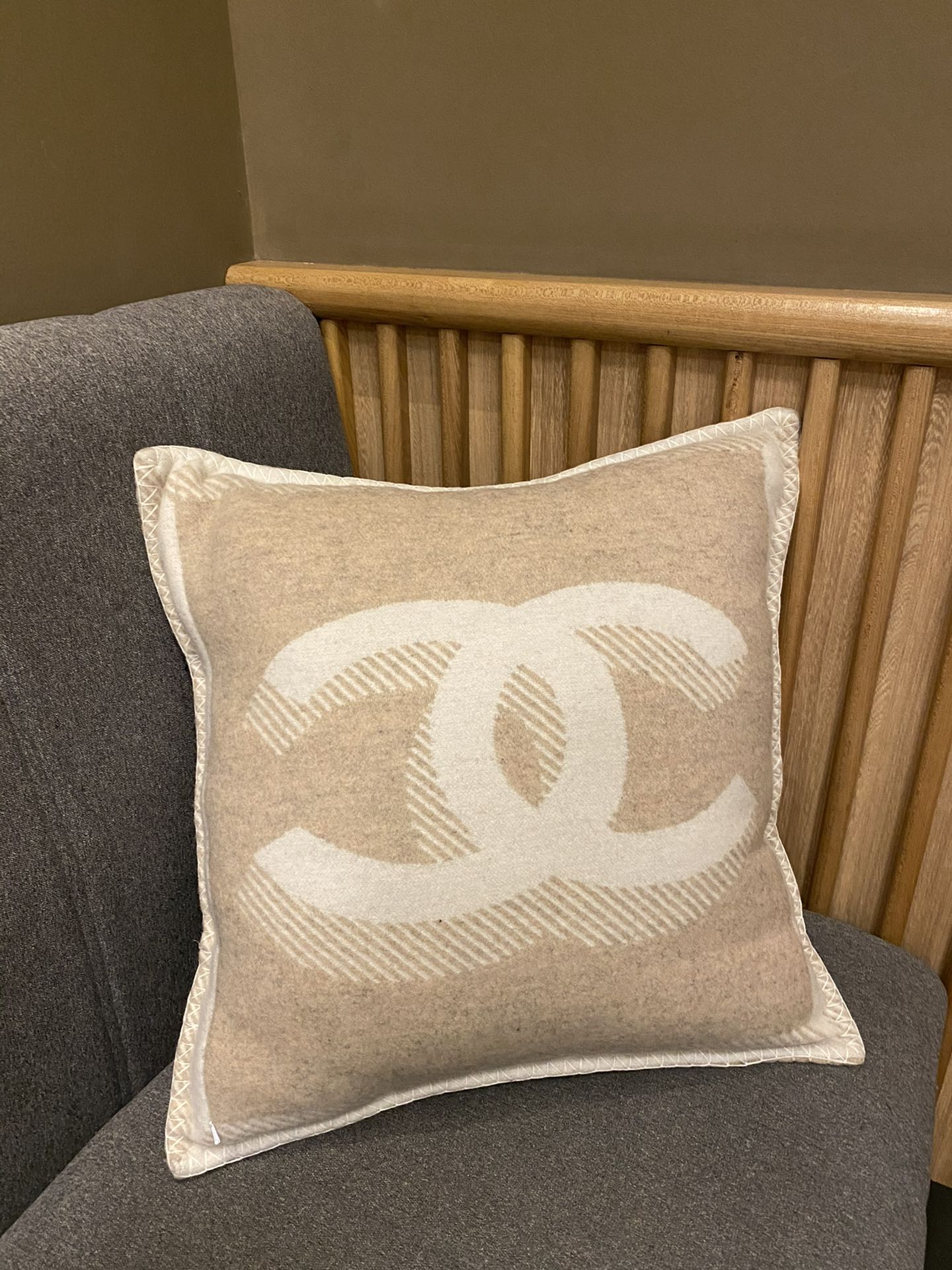 Chanel Wool Cashmere Throw Pillow, CC Logo Cushion, Home Decor for Couch Sofa