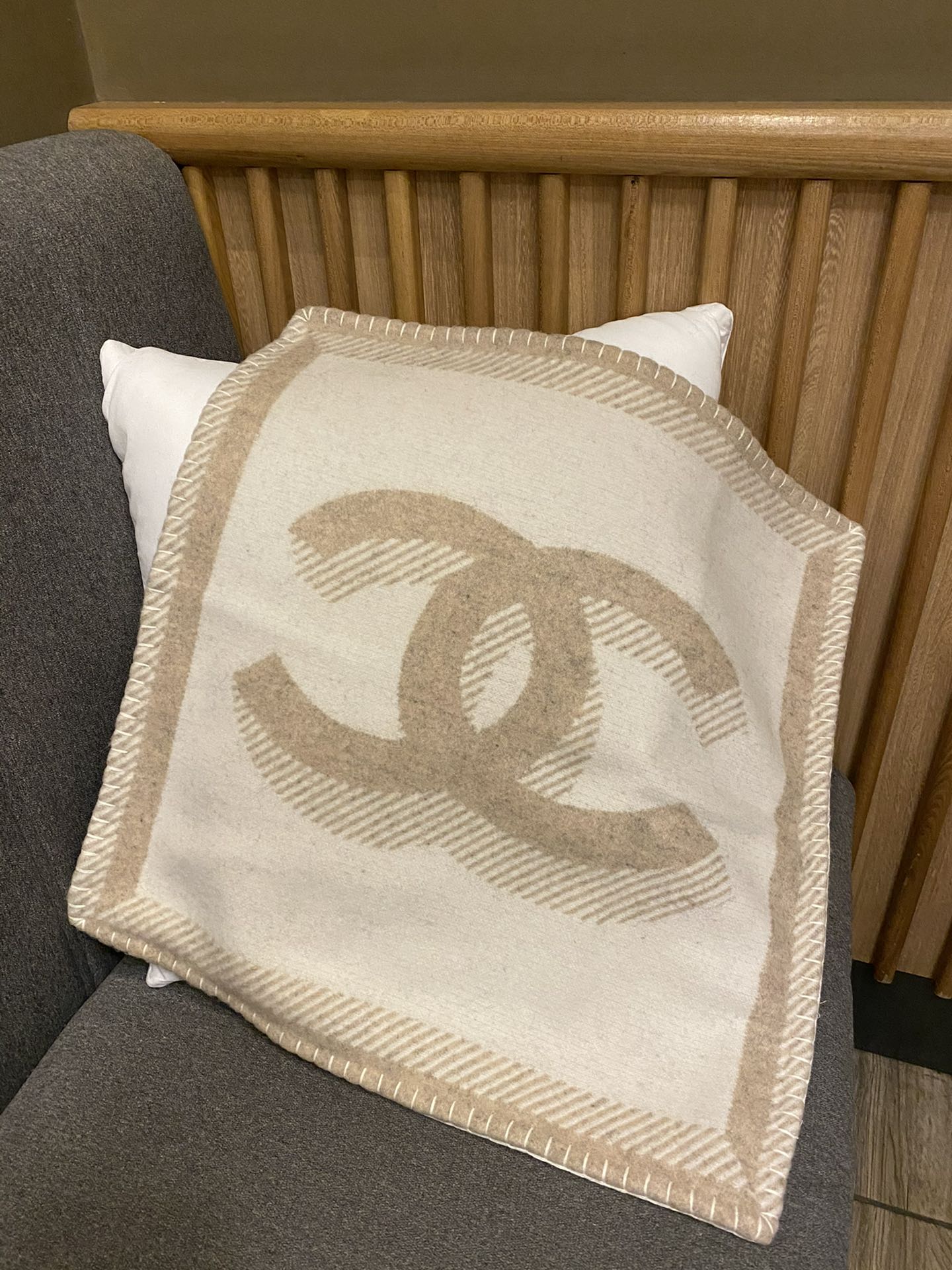 Elevate your home decor with this luxurious Chanel throw pillow. Crafted from wool and cashmere, it features the iconic CC logo.
