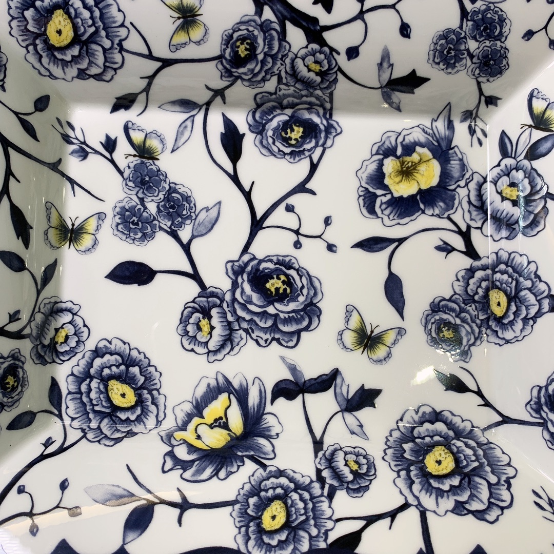 This elegant floral bone china tray is a beautiful addition to any home. Its delicate floral design and high-quality materials make it a perfect decorative accent or serving dish for special occasions.
