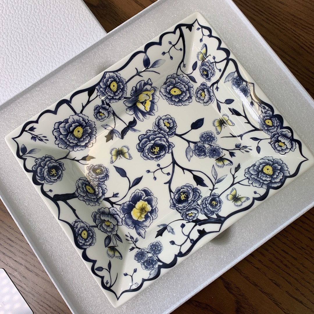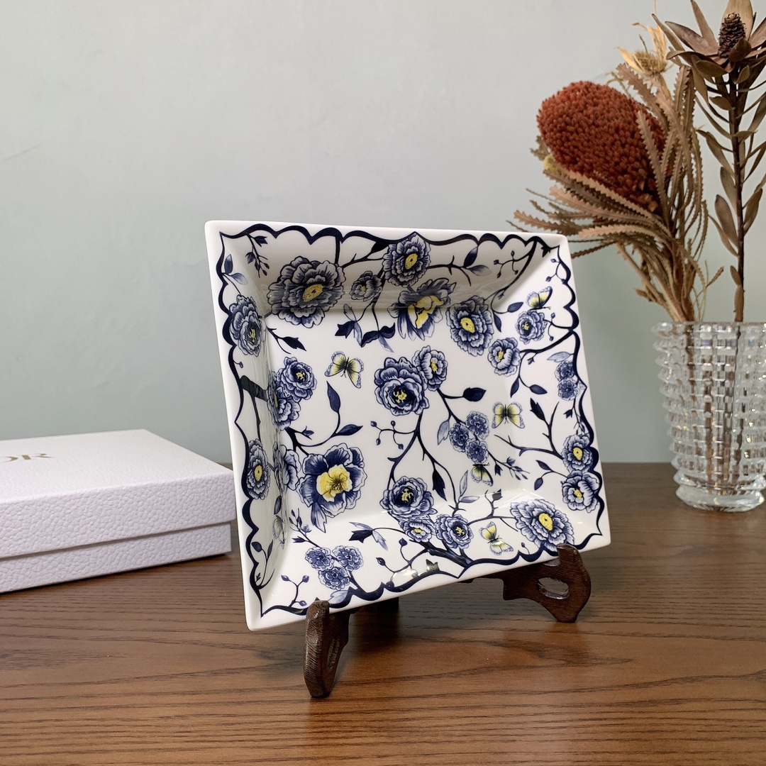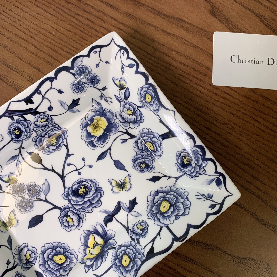 Elevate your home decor with this exquisite Dior floral bone china tray. Perfect as a decorative accent or for serving guests with elegance.