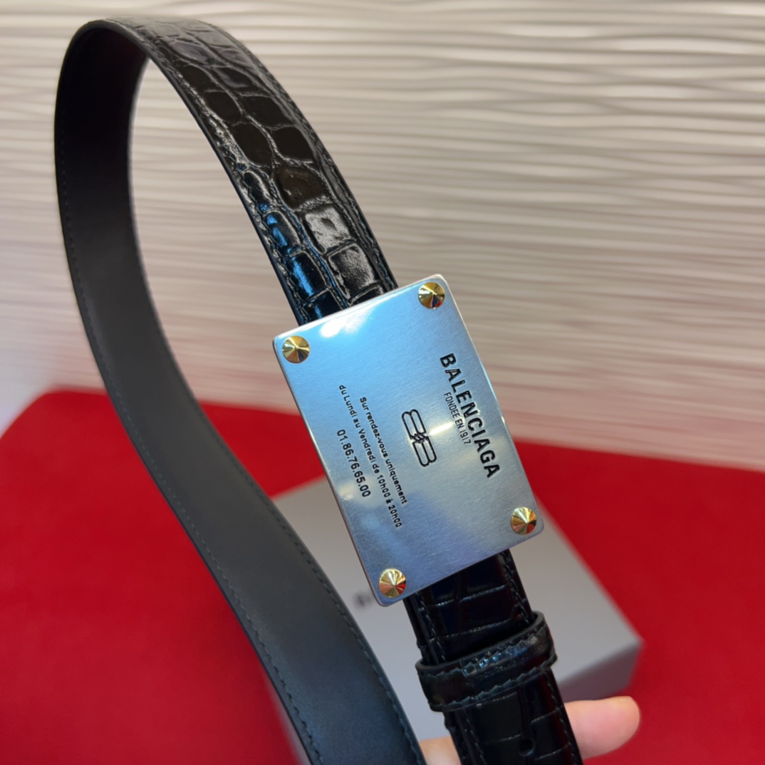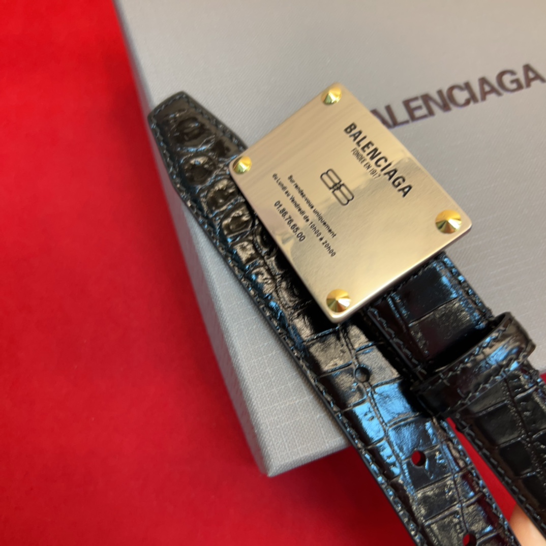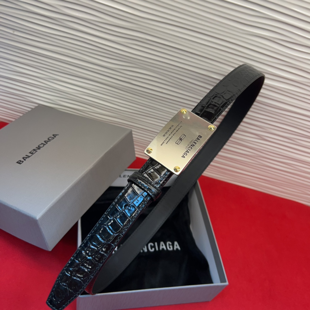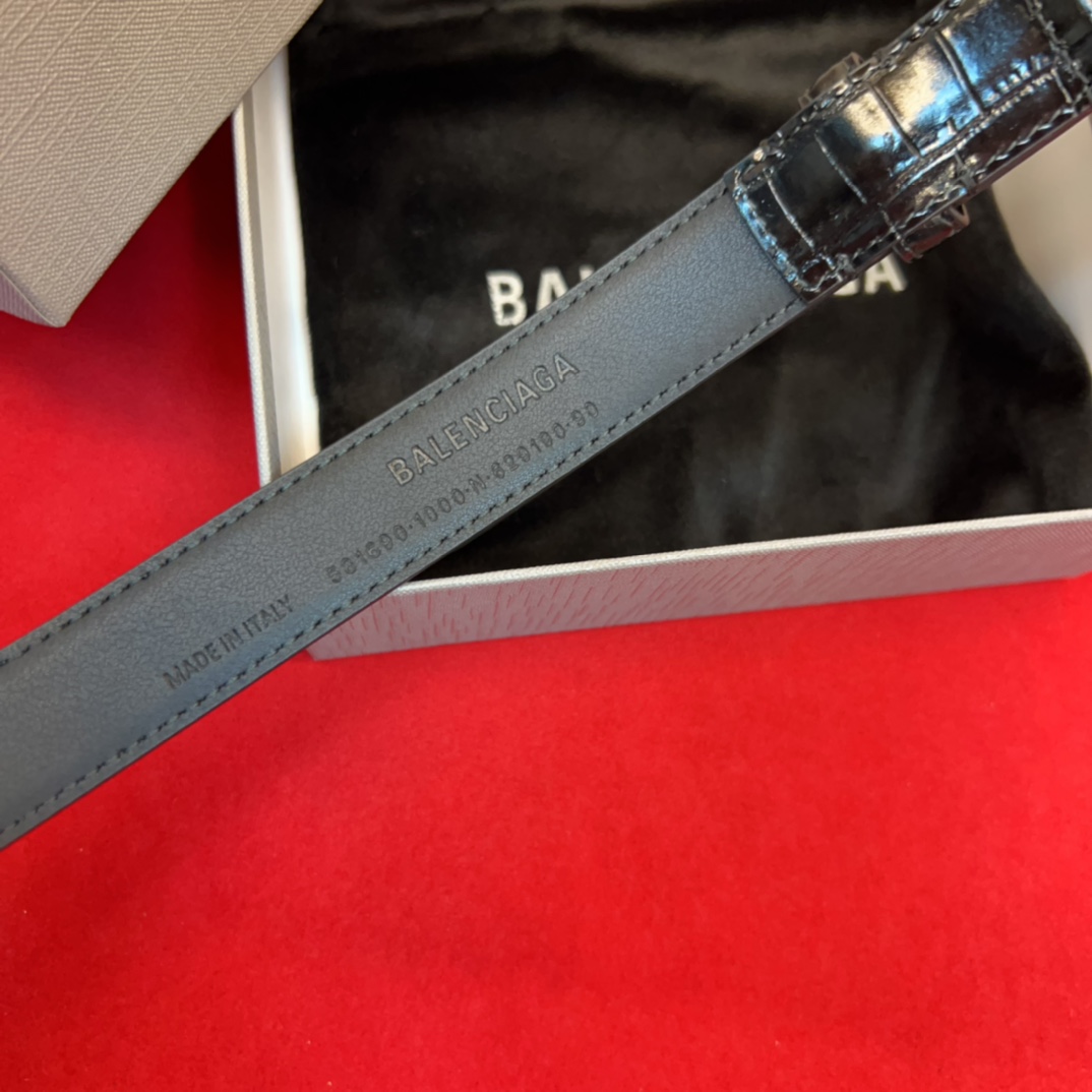 Elevate your style with this Balenciaga belt. Crafted from croc-embossed leather with silver-tone hardware, this belt exudes luxury and sophistication. A versatile wardrobe staple.