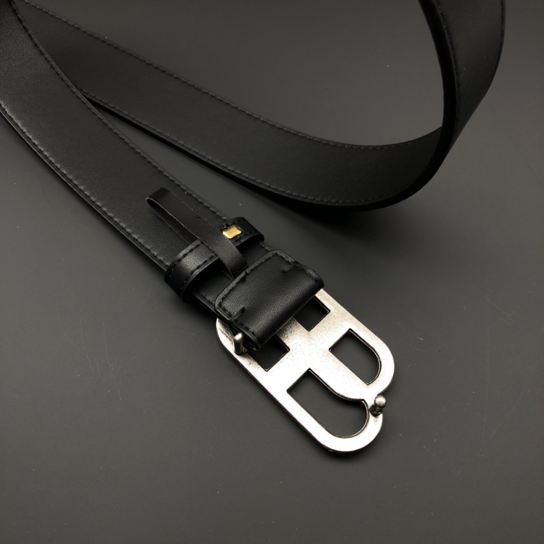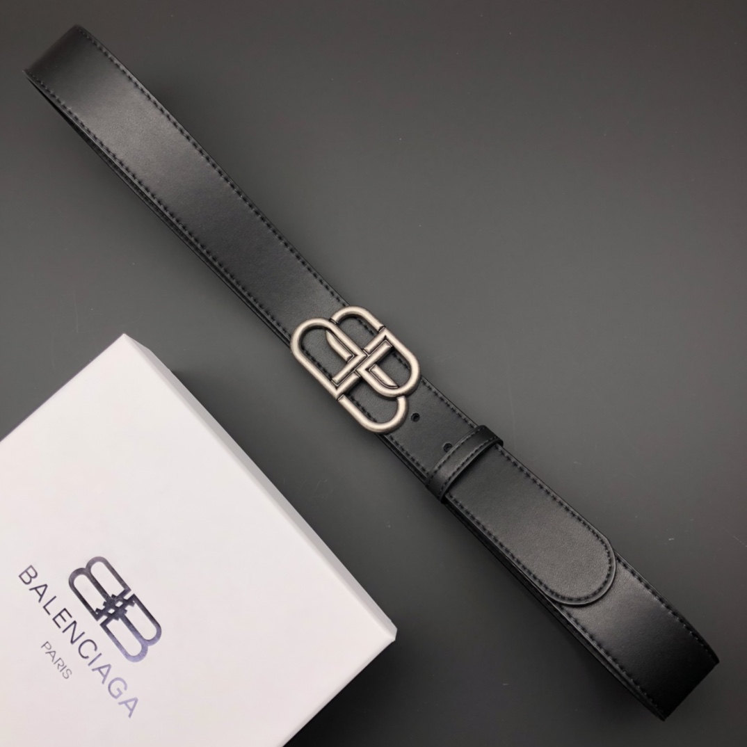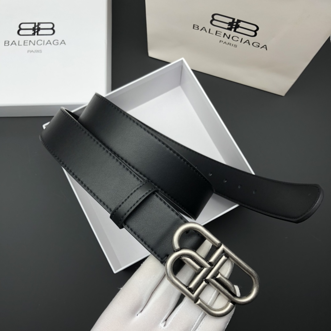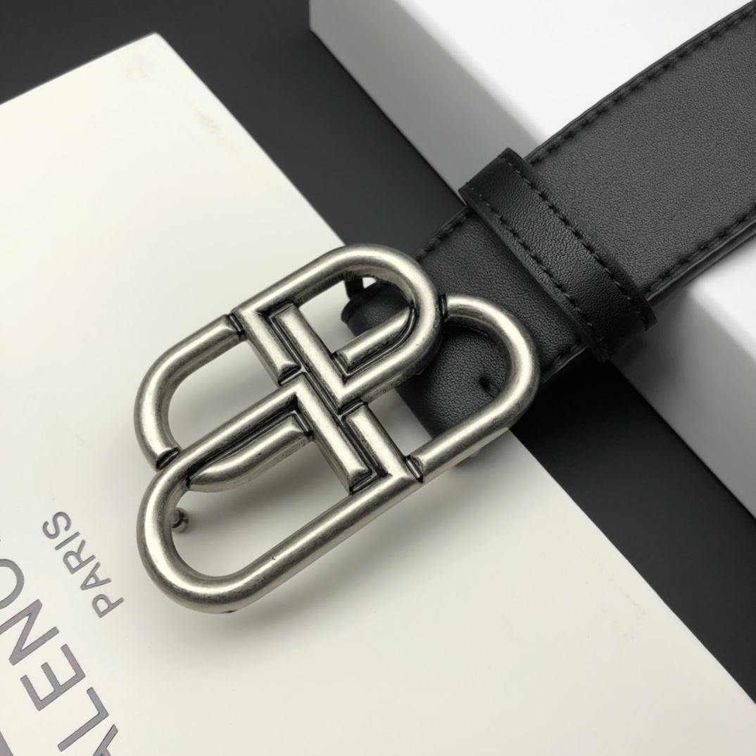 Balenciaga BB Extra Large Belt - Black Leather with Antique Silver Buckle
