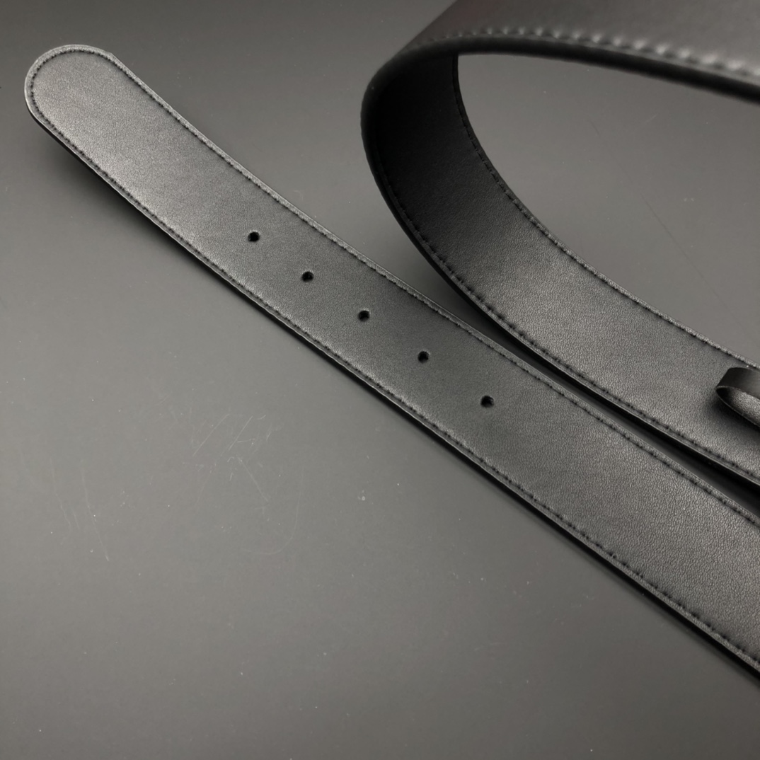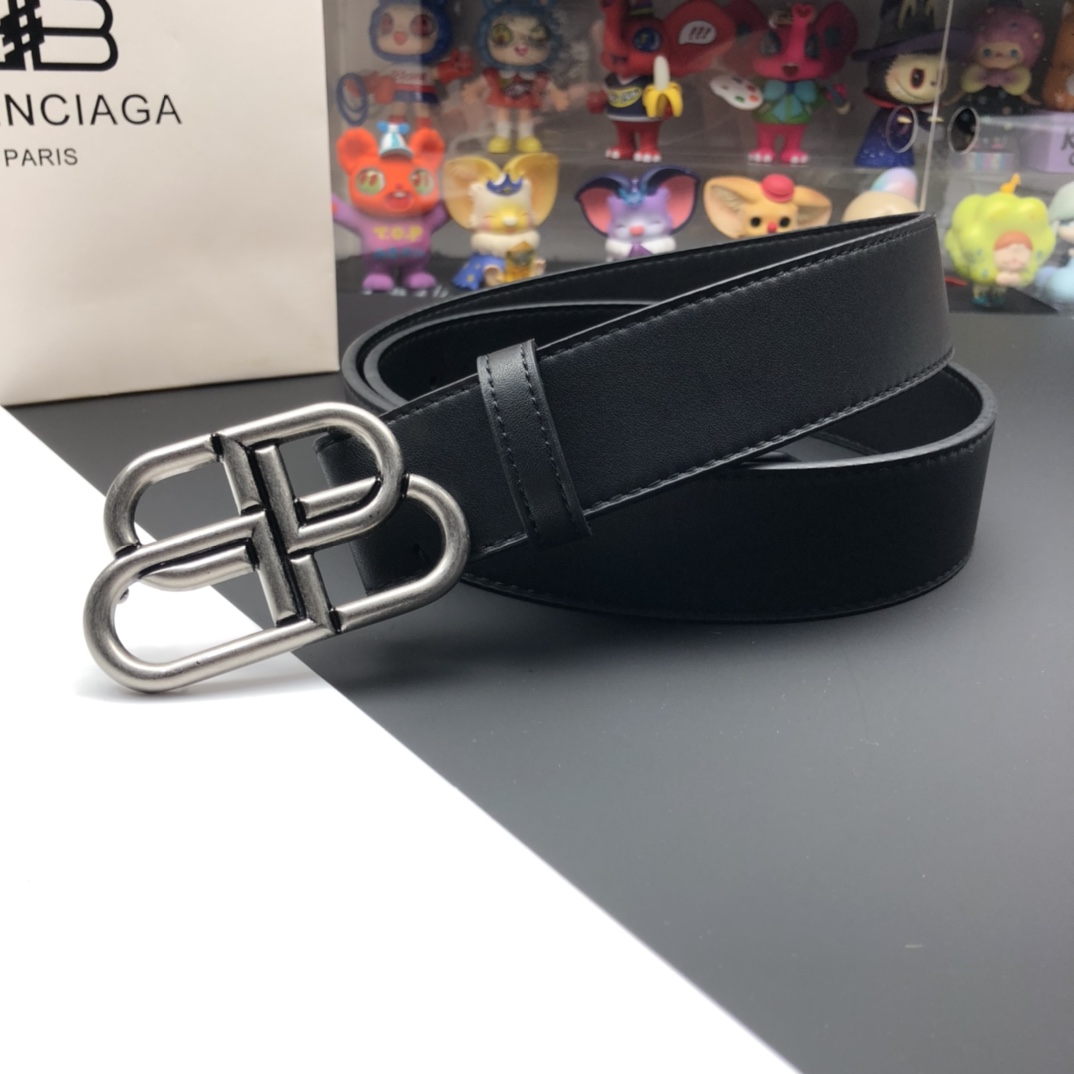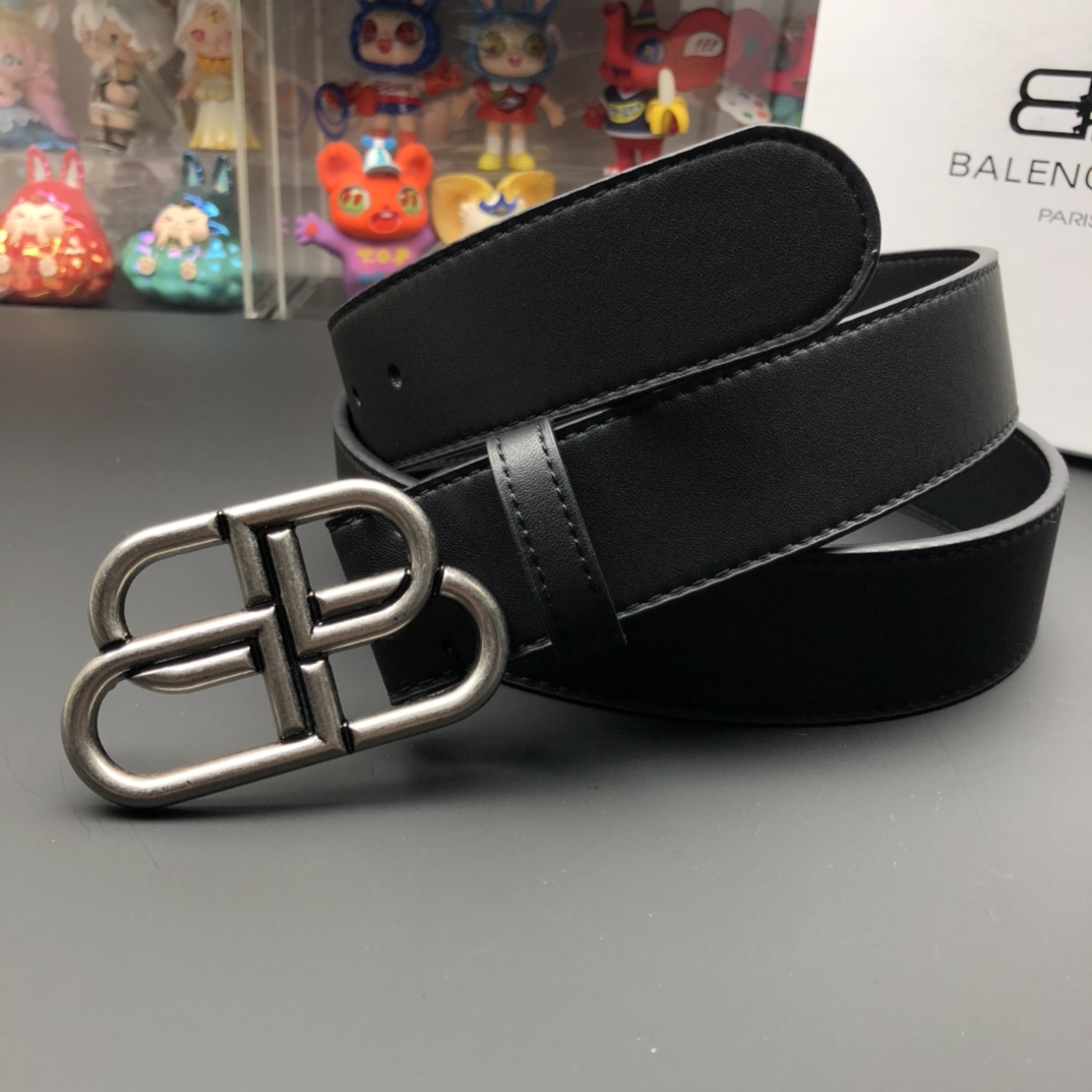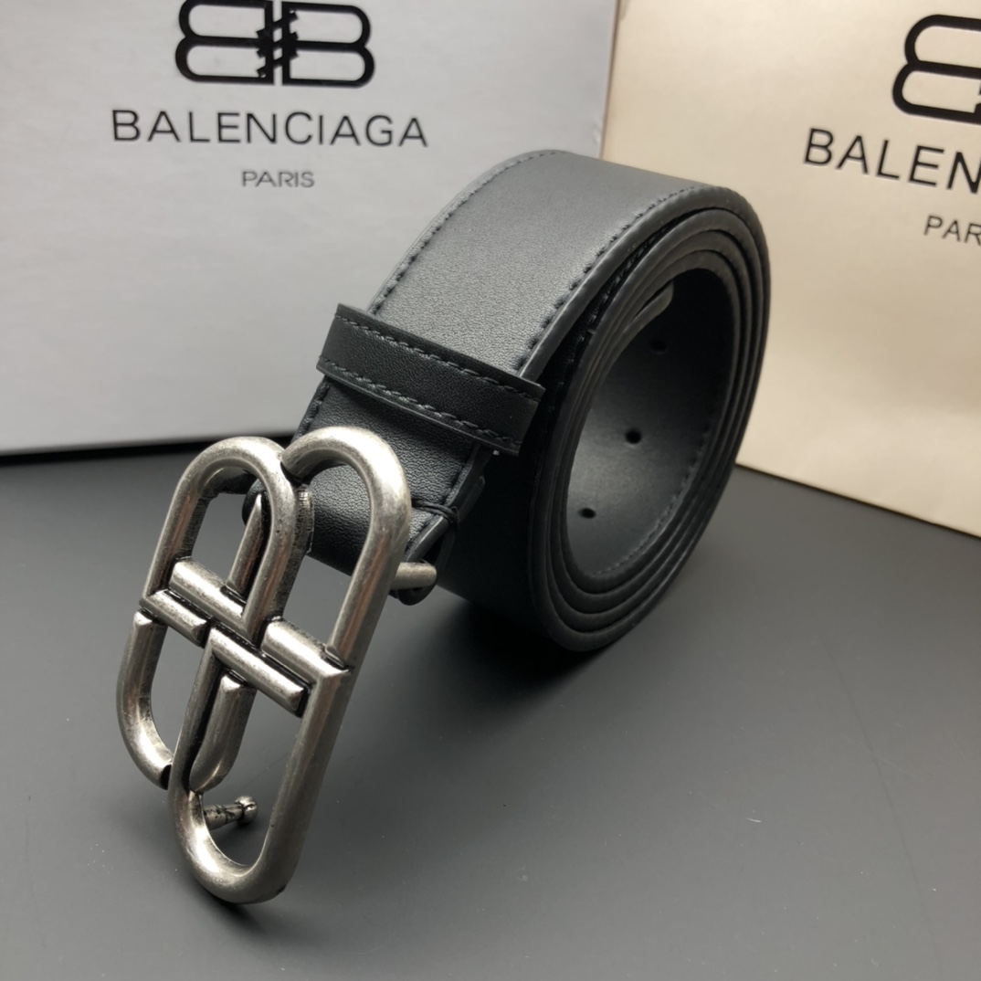 Balenciaga BB Extra Large Belt - Black Leather with Antique Silver Buckle