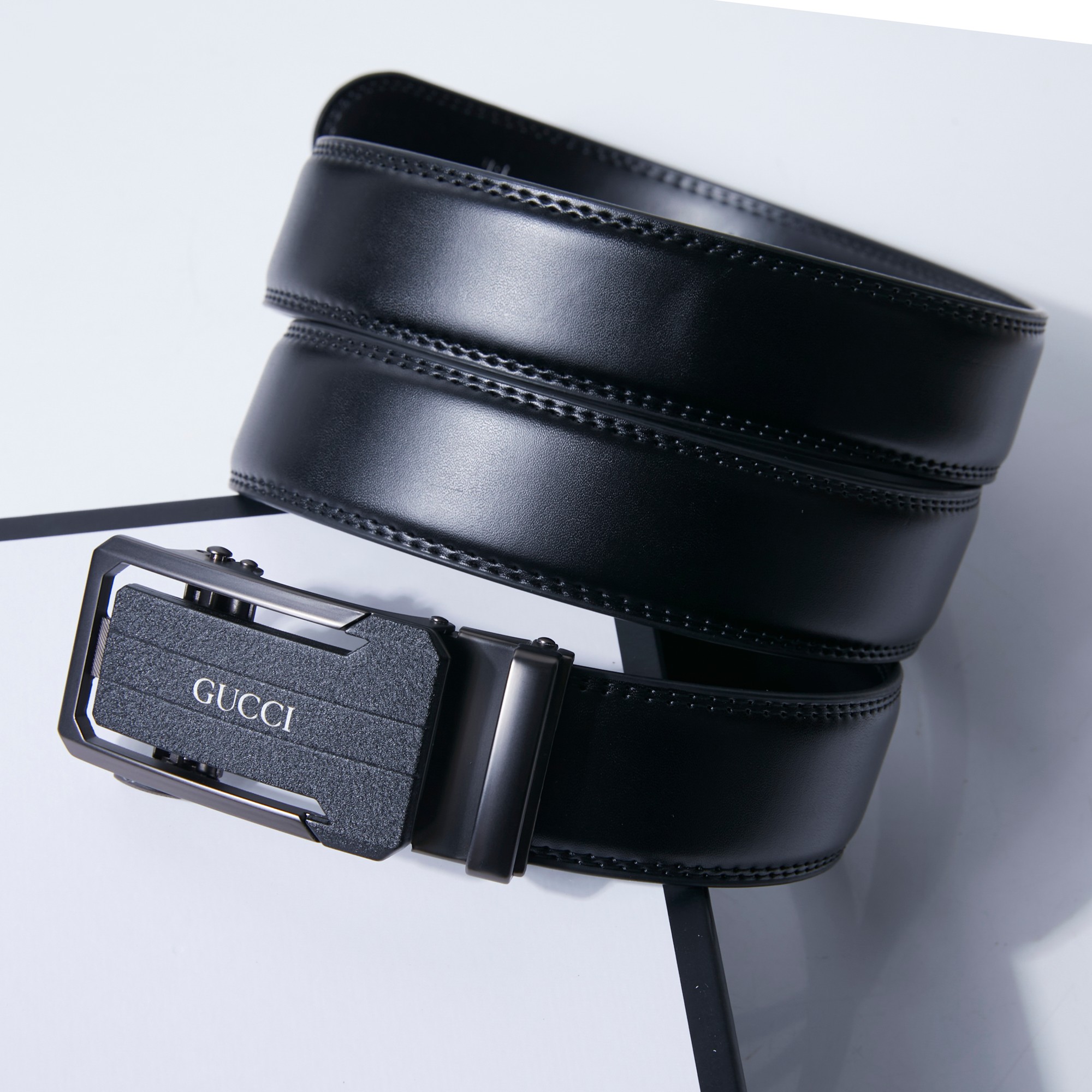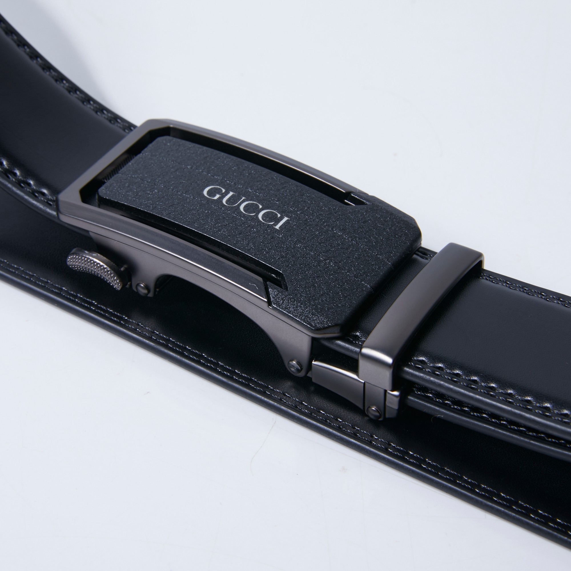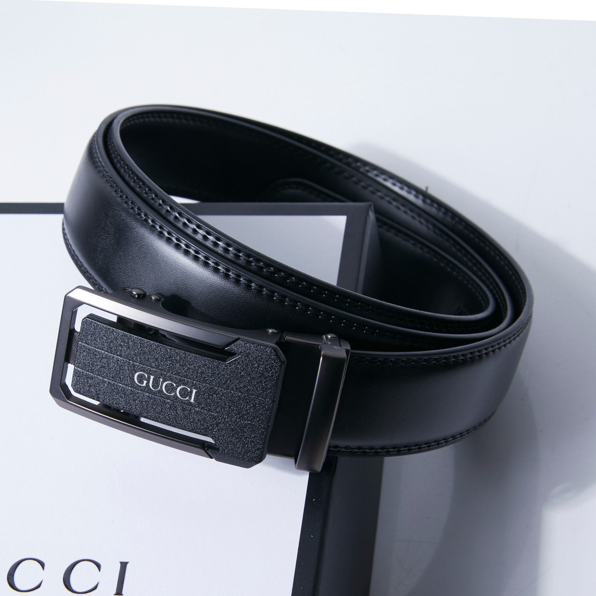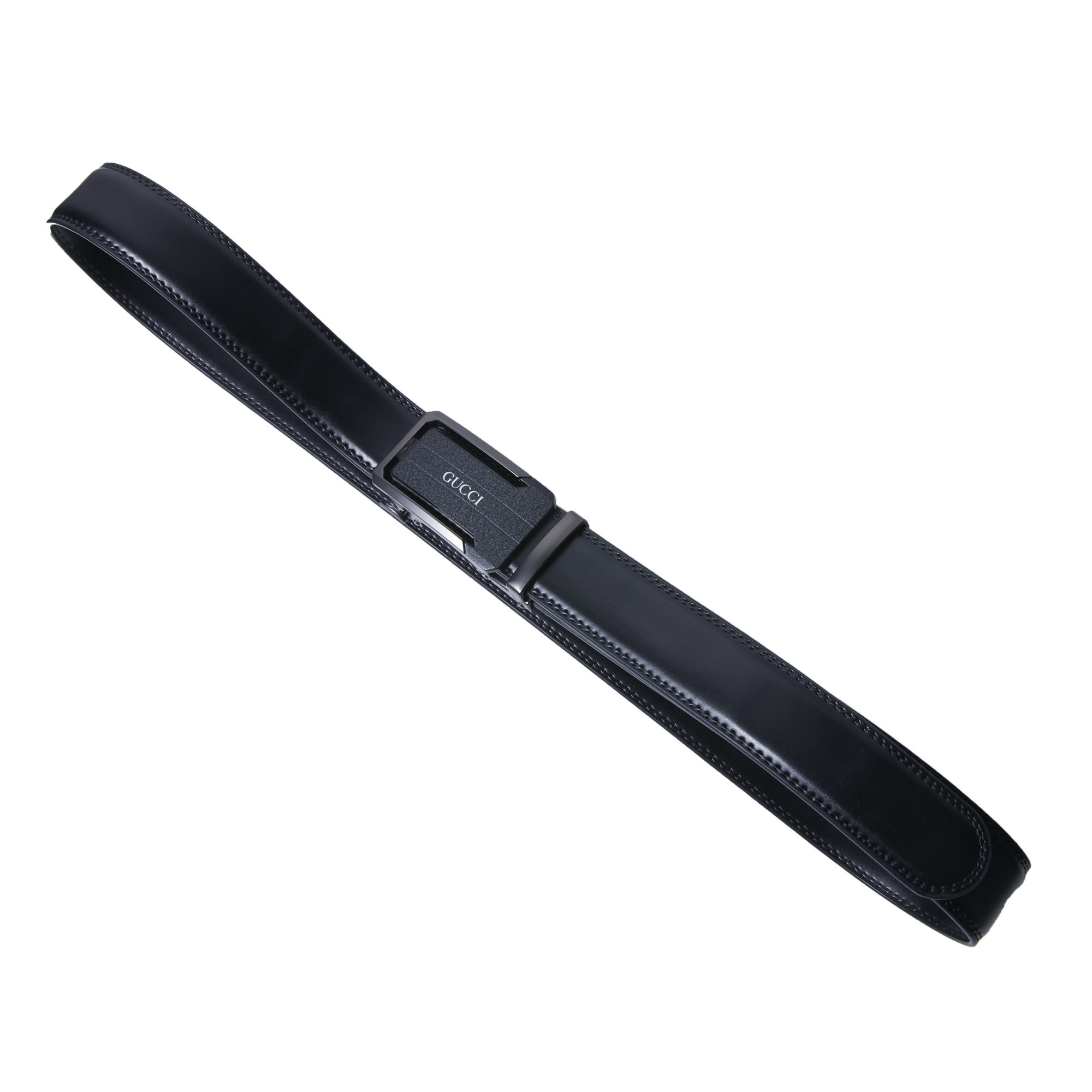 Gucci Men's Black Leather Belt with Automatic Buckle, Adjustable Length