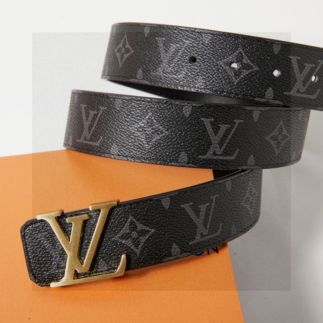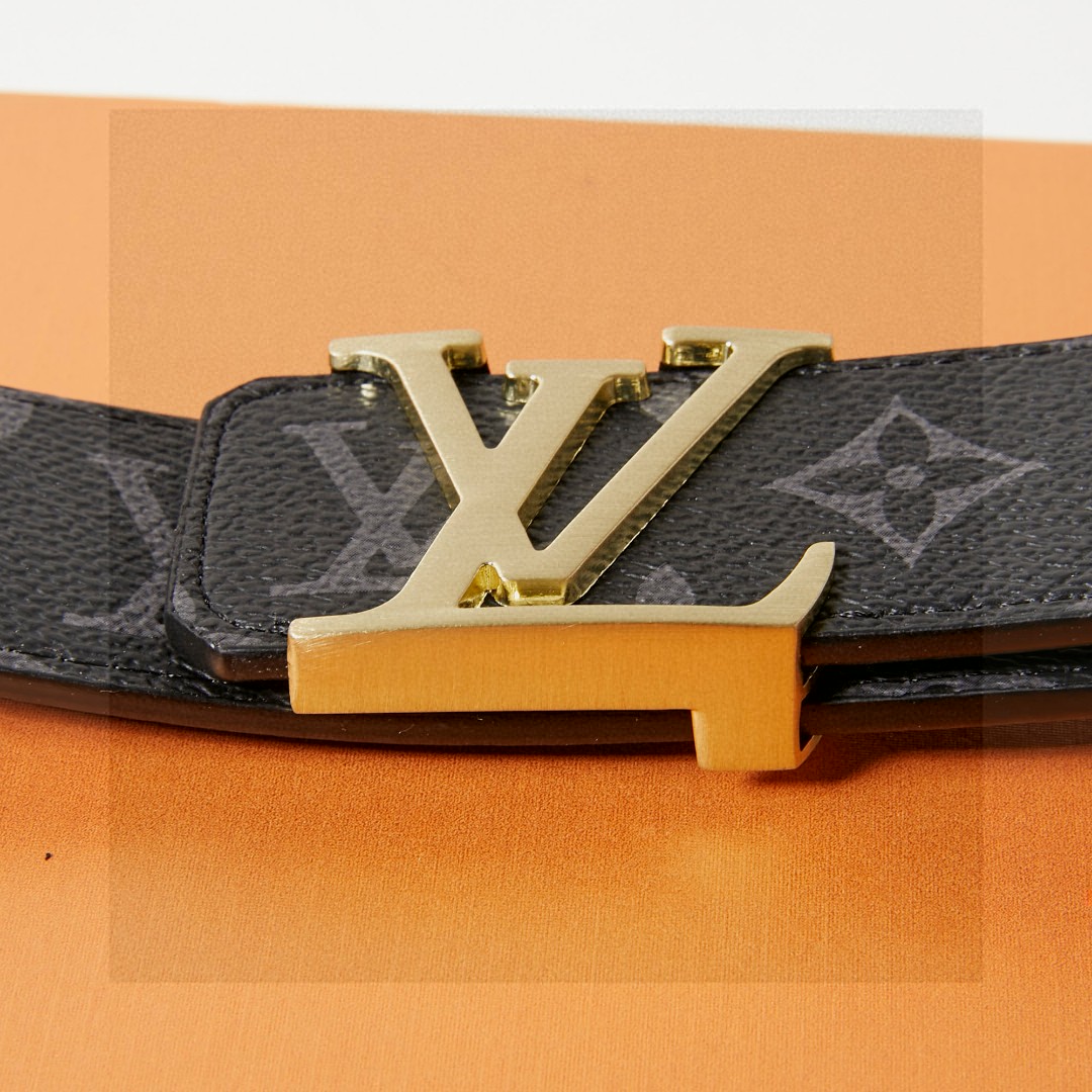 Louis Vuitton Men's Belt, Black Leather with Gold Buckle, 4cm Width, 120cm Length