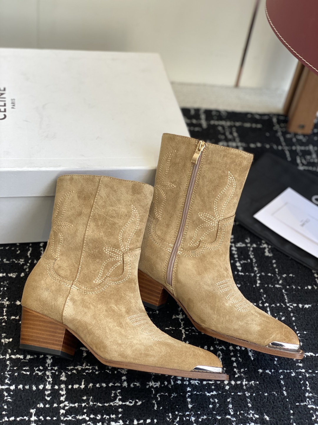 Crafted with a blend of timeless design and modern flair, these Celine Western Ankle Boots are a must-have for any fashion-forward wardrobe.