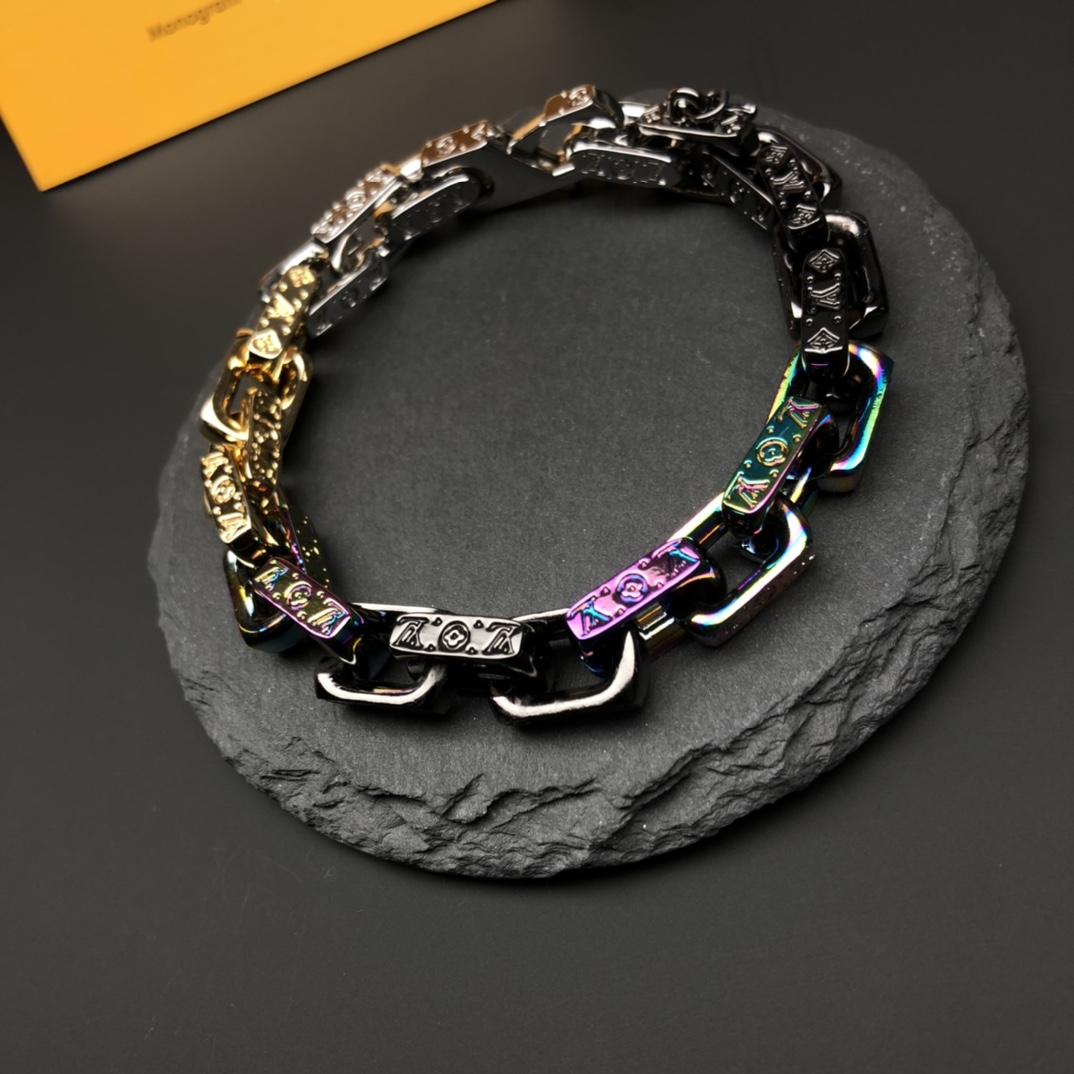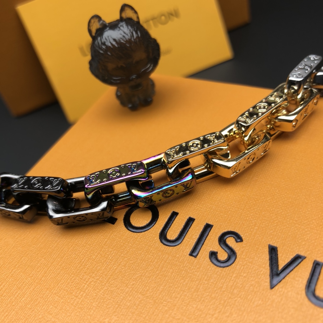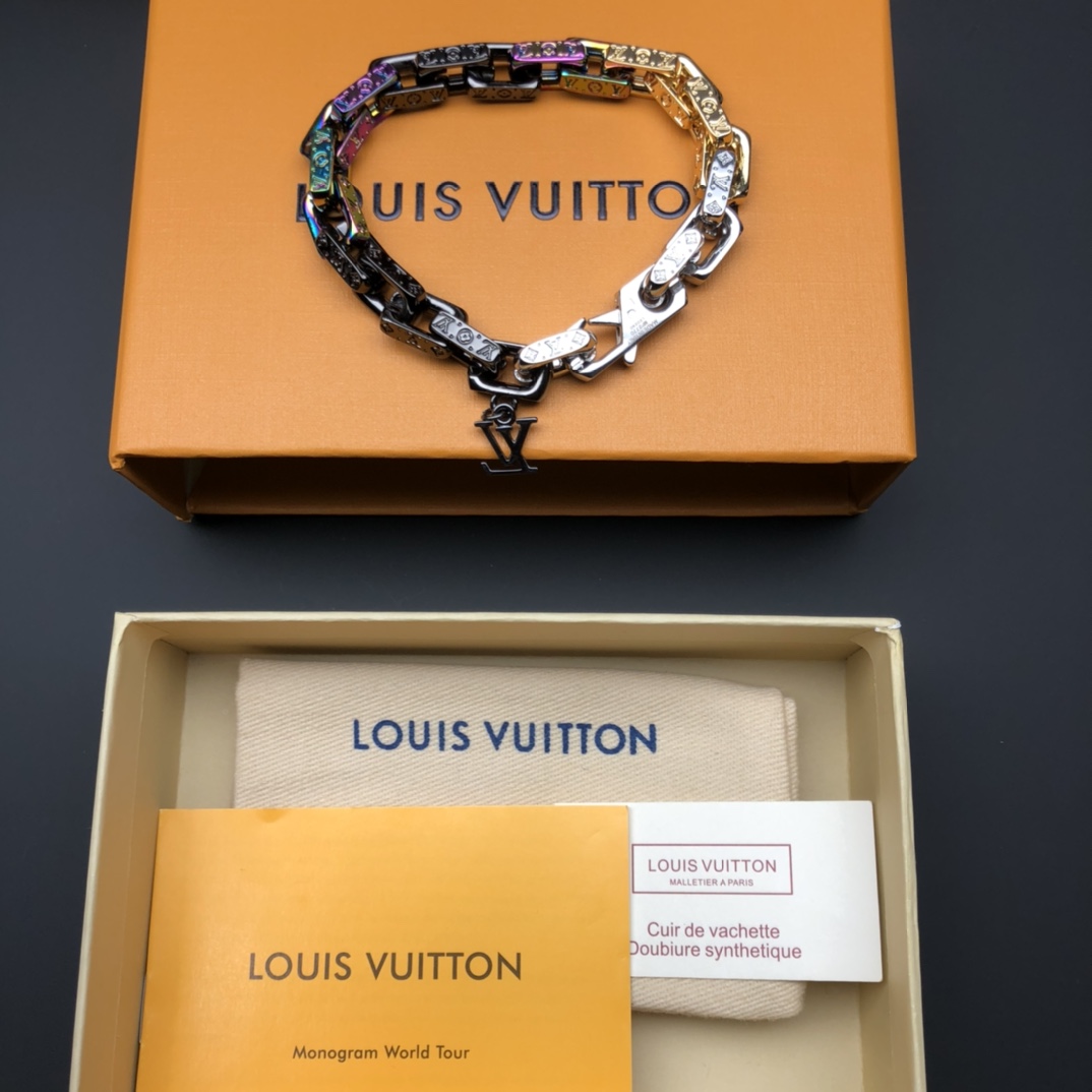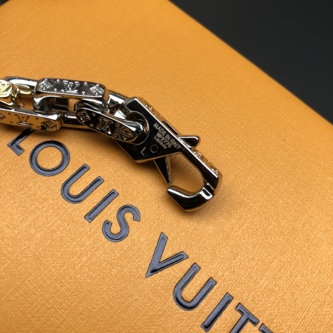 - Design: Chain link with Monogram engraving and LV initials