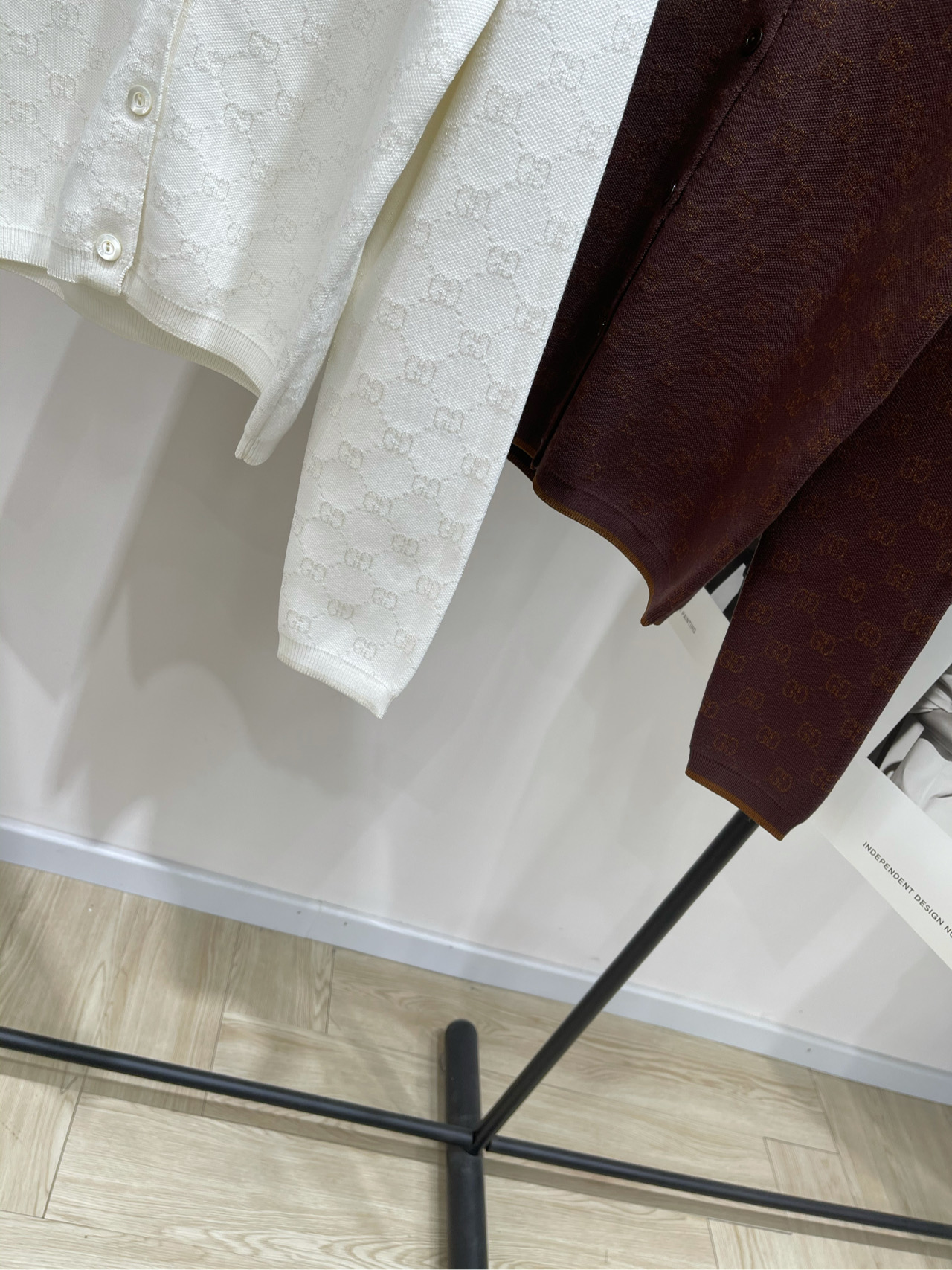 This Gucci jacquard knit cardigan is a timeless addition to any wardrobe, blending subtle luxury with everyday comfort. The iconic Gucci pattern is woven into the fabric, creating a sophisticated and understated look.