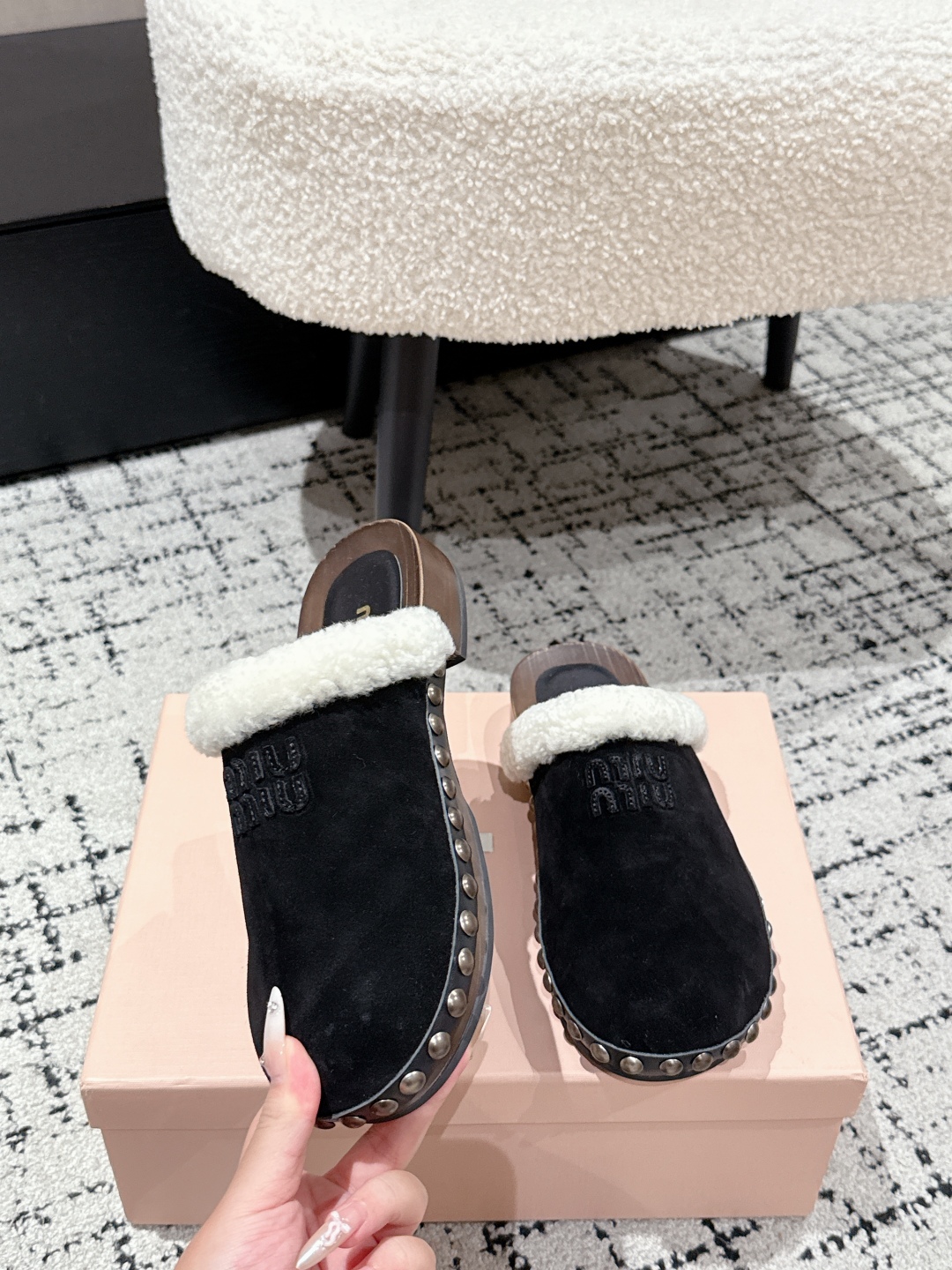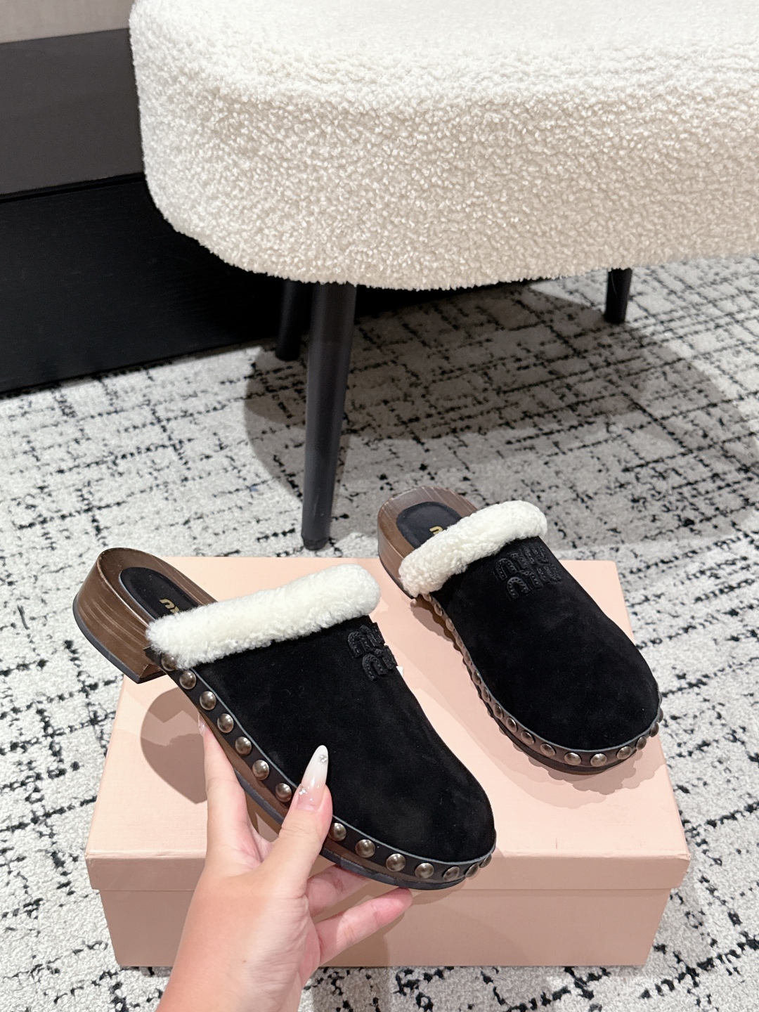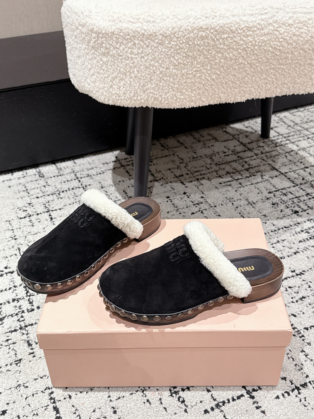 Miu Miu Women's Fuzzy Suede Clogs, Warm and Comfortable, Size 35-40