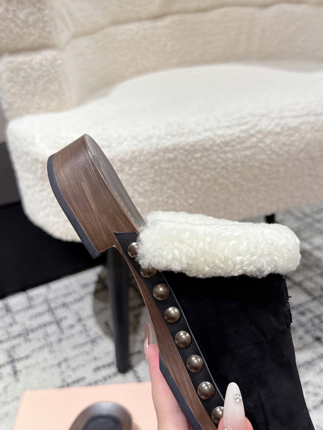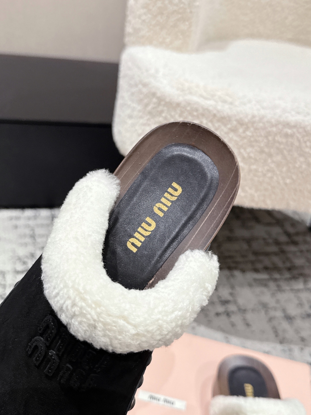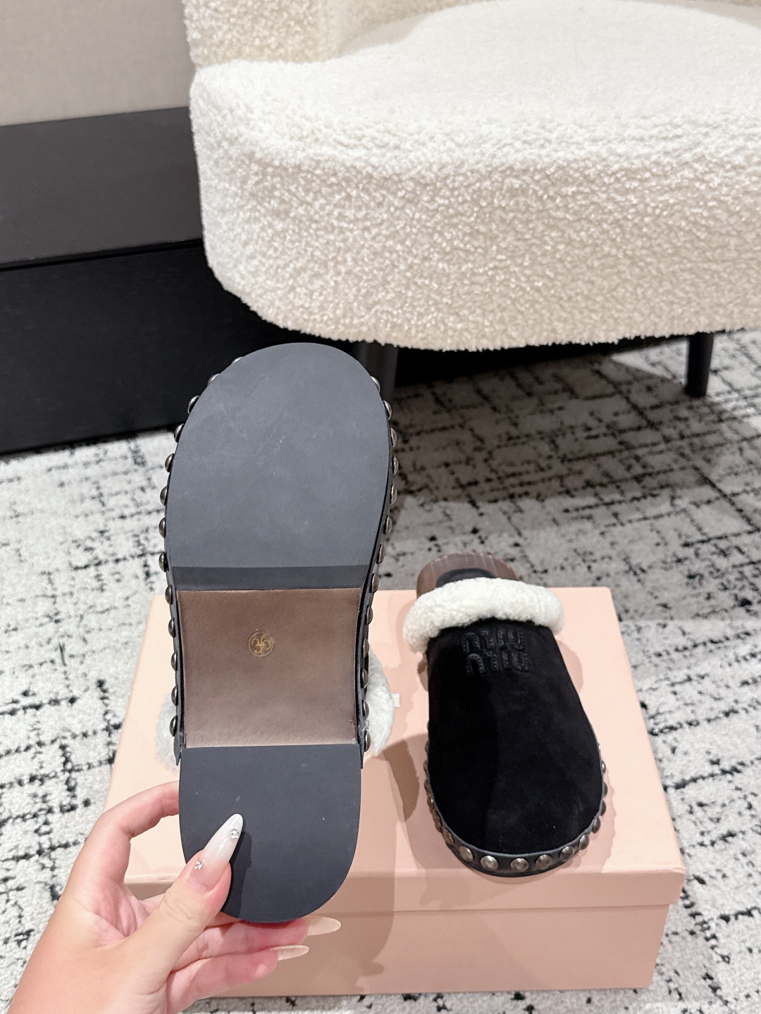 Miu Miu Women's Fuzzy Suede Clogs, Warm and Comfortable, Size 35-40