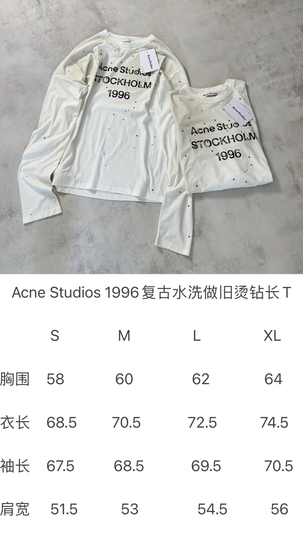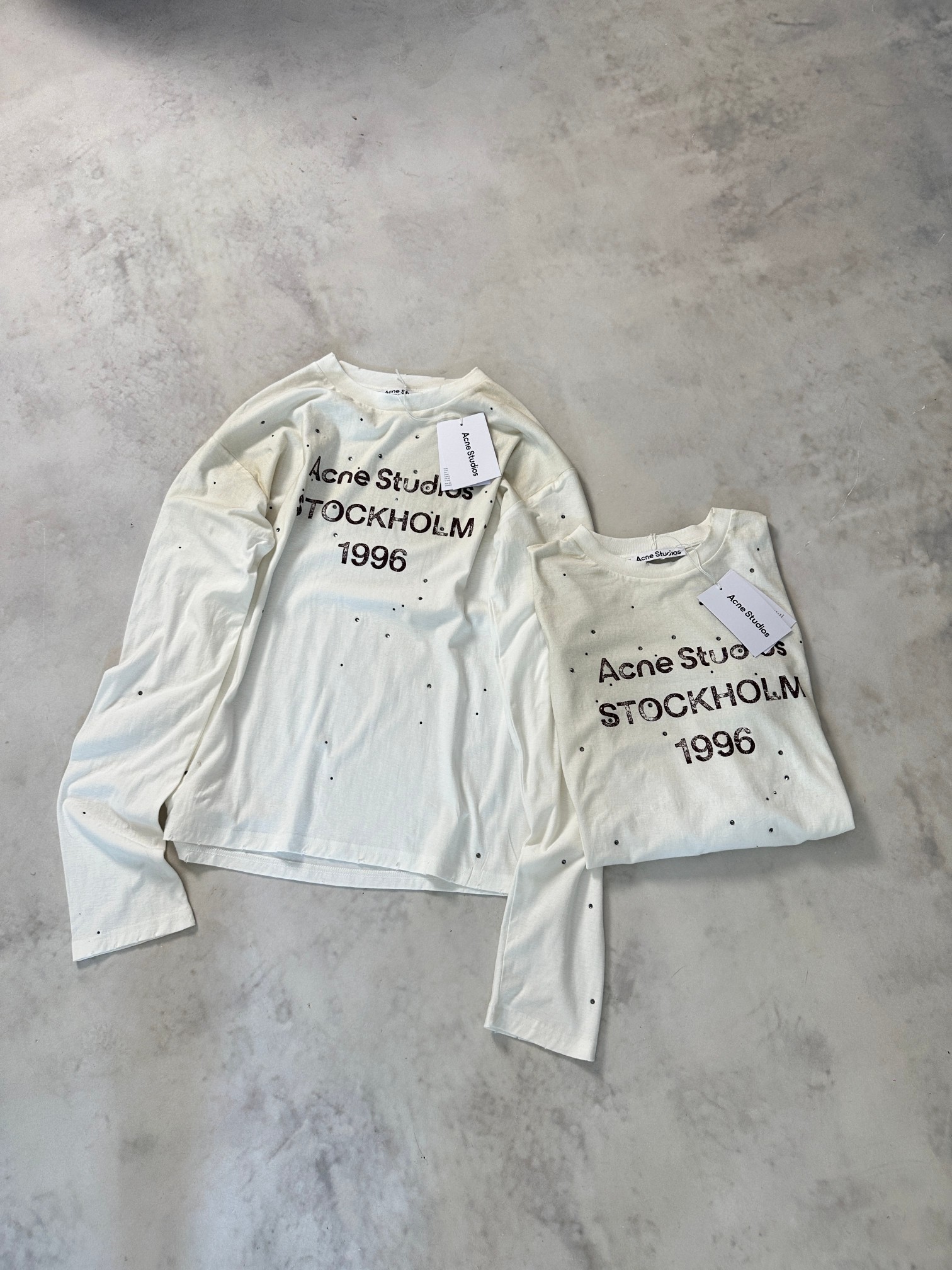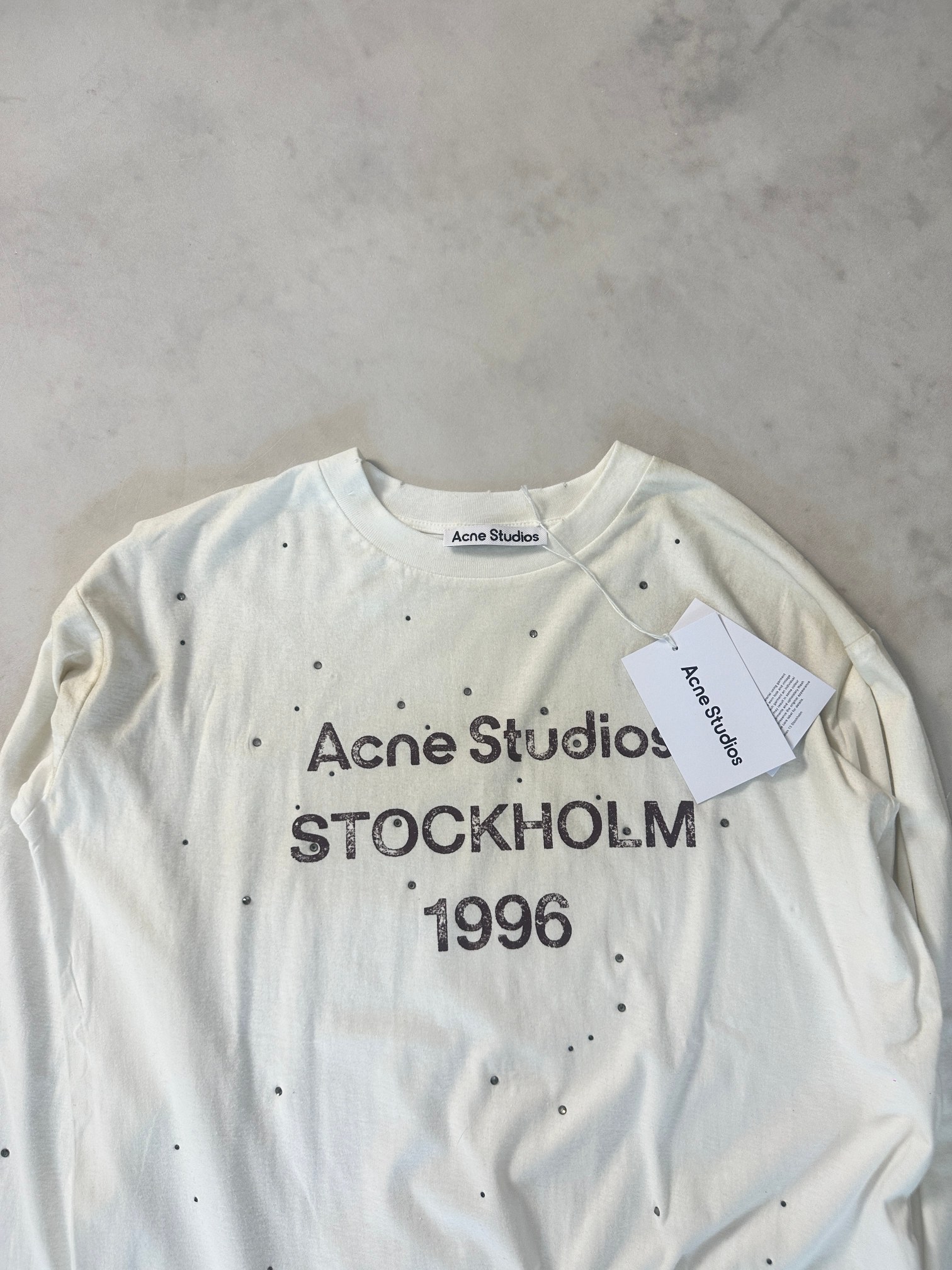 Acne Studios 1996 Distressed Rhinestone Long Sleeve T-Shirt, White, Unisex
