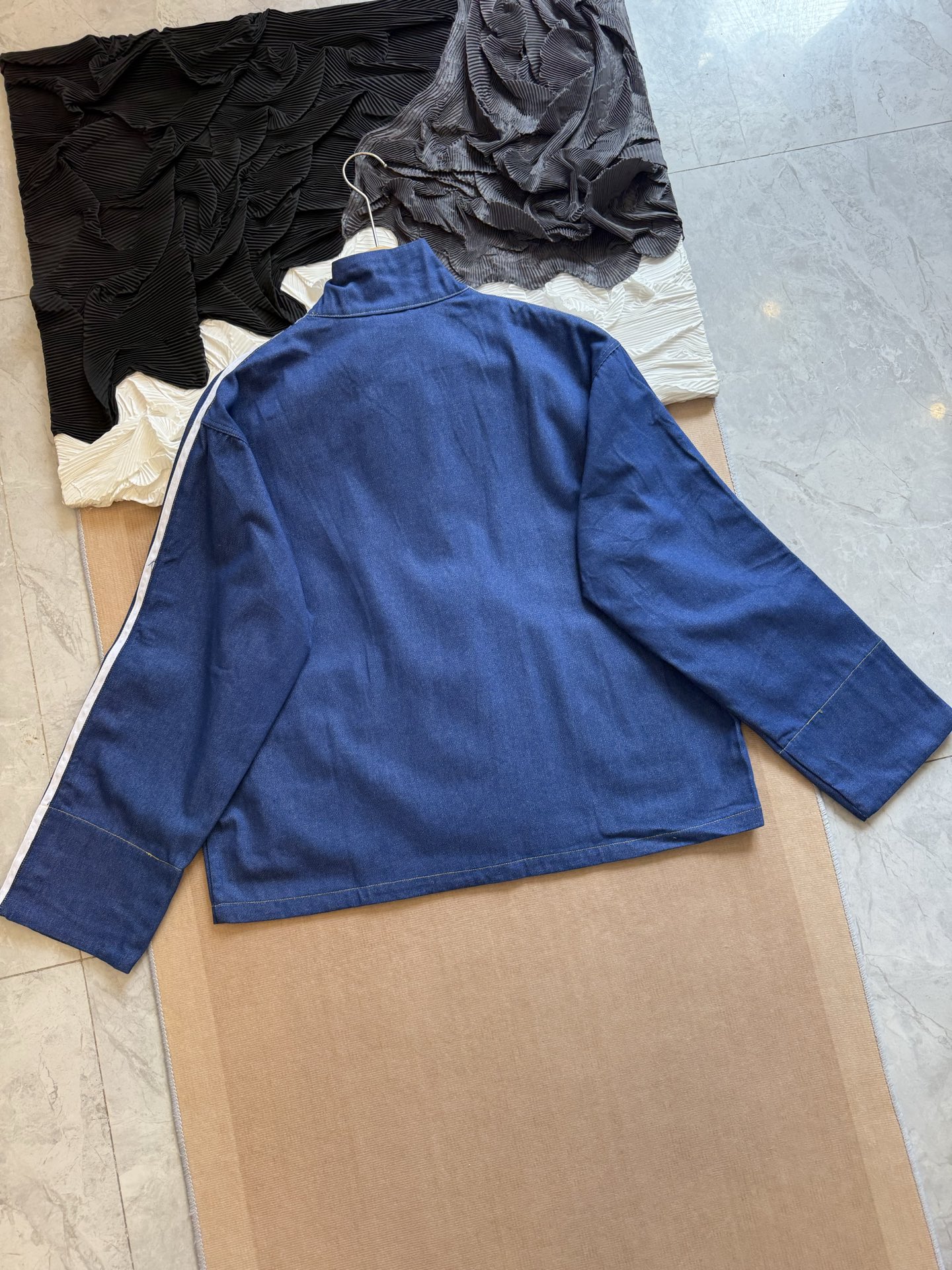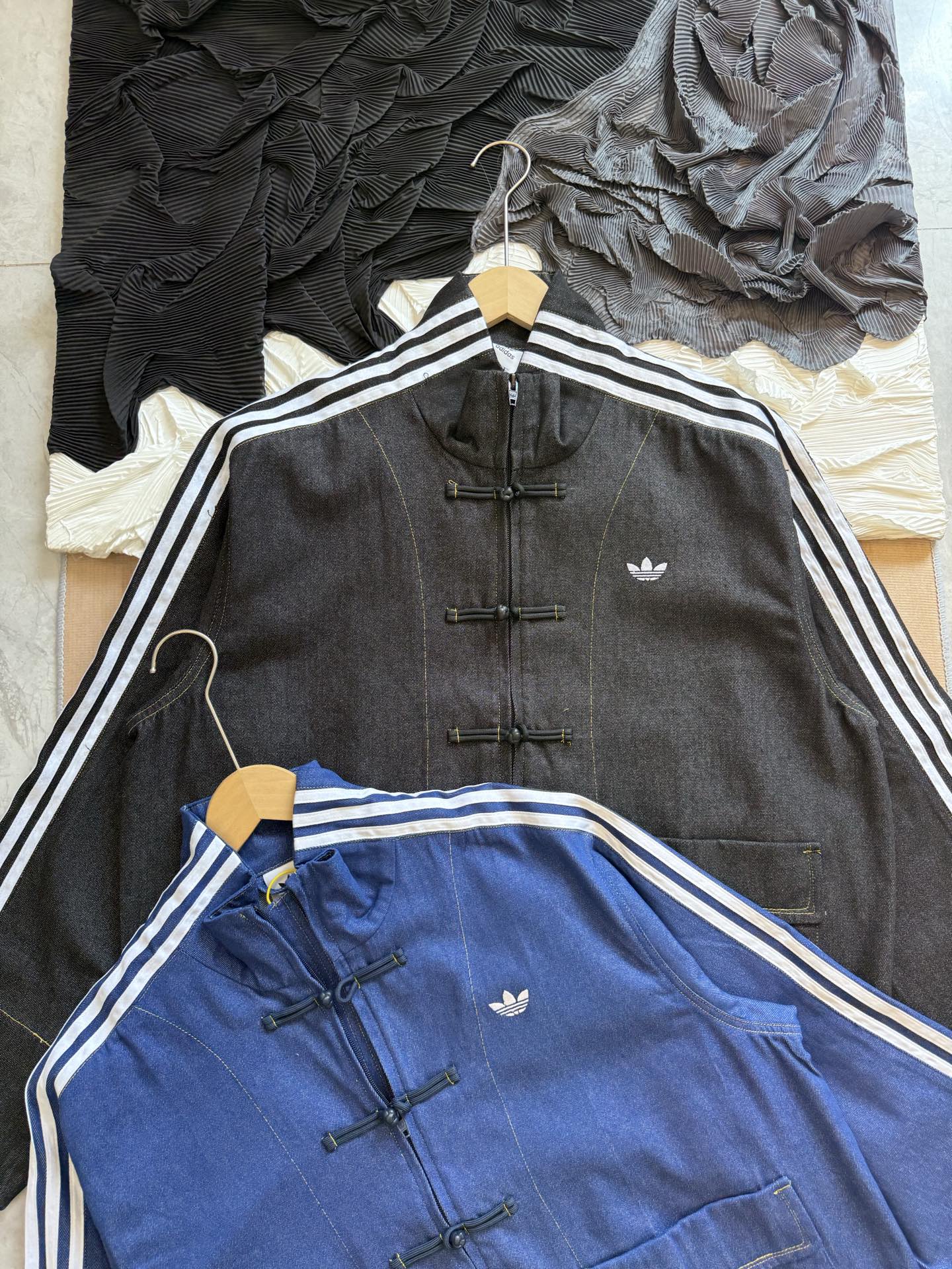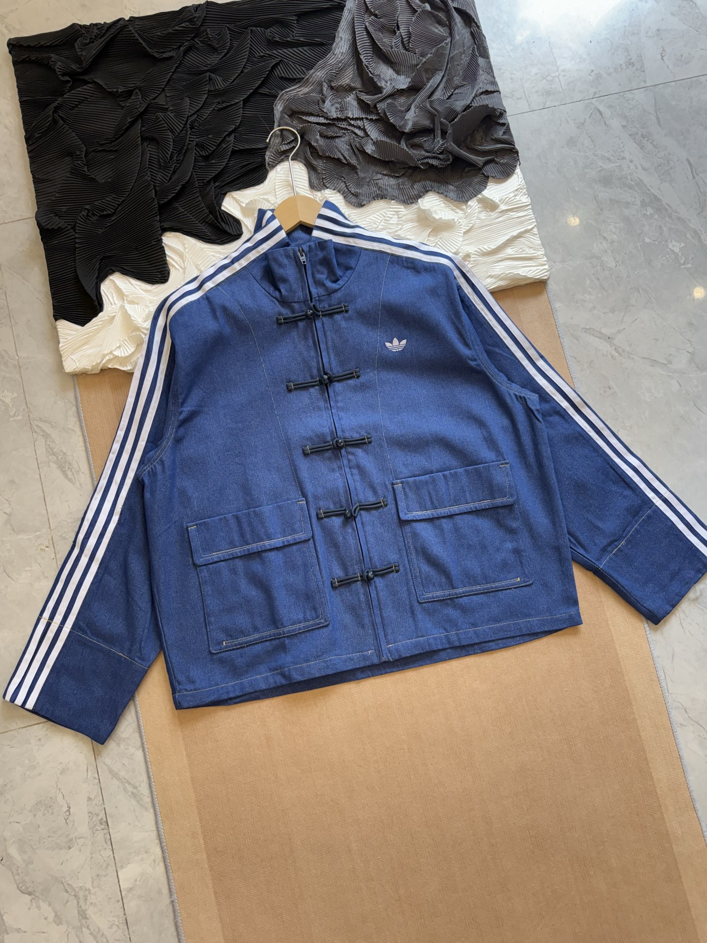 This Adidas denim jacket combines traditional Chinese design with modern streetwear. It features a unique blend of Eastern and Western styles, making it a standout piece for any wardrobe.
