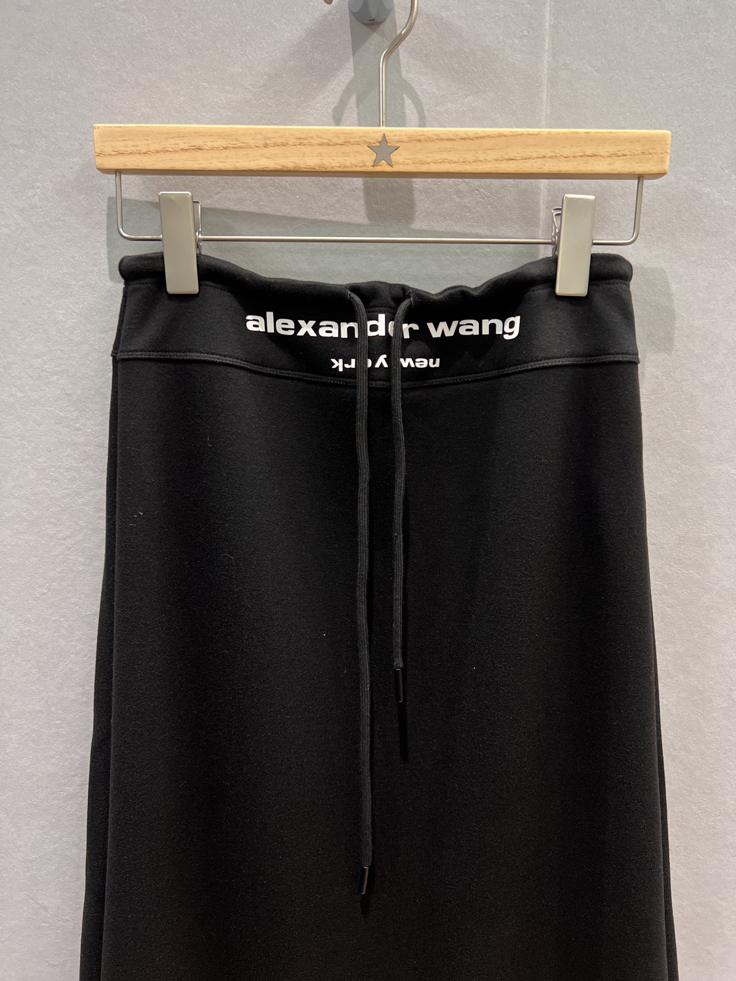 Elevate your everyday look with this minimalist A-line skirt featuring a drawstring waist and Alexander Wang logo print. Perfect for casual wear.