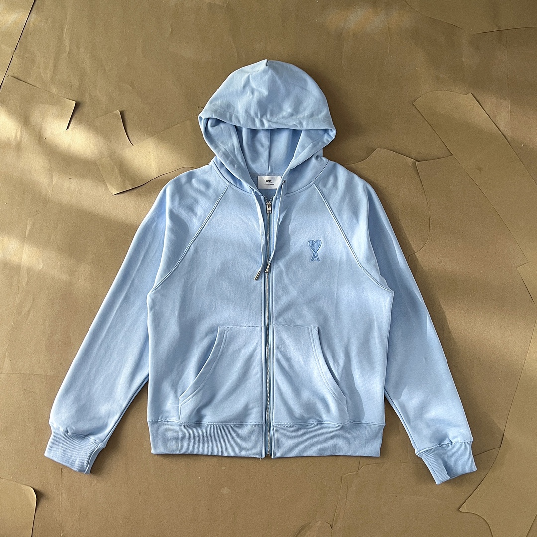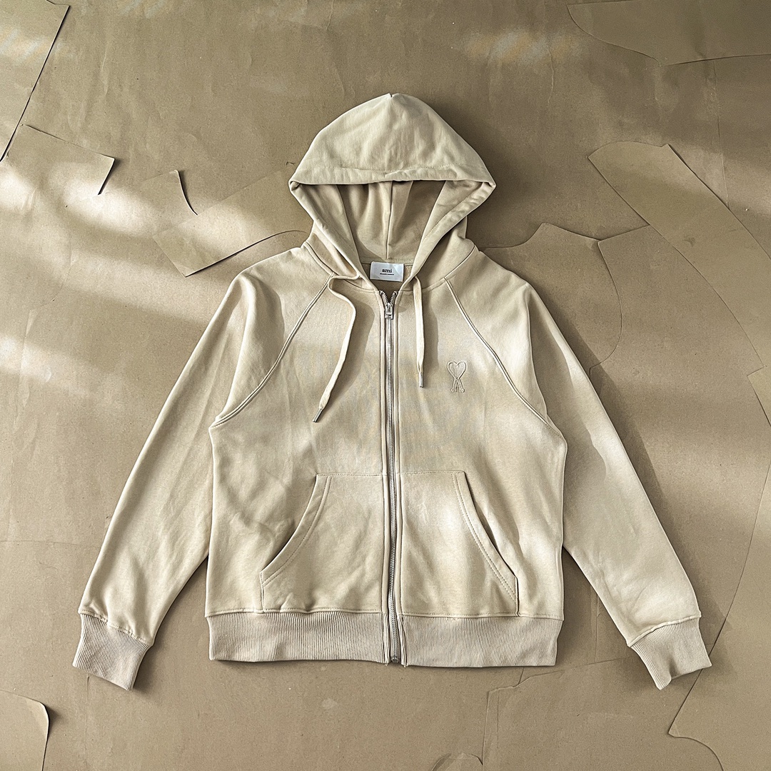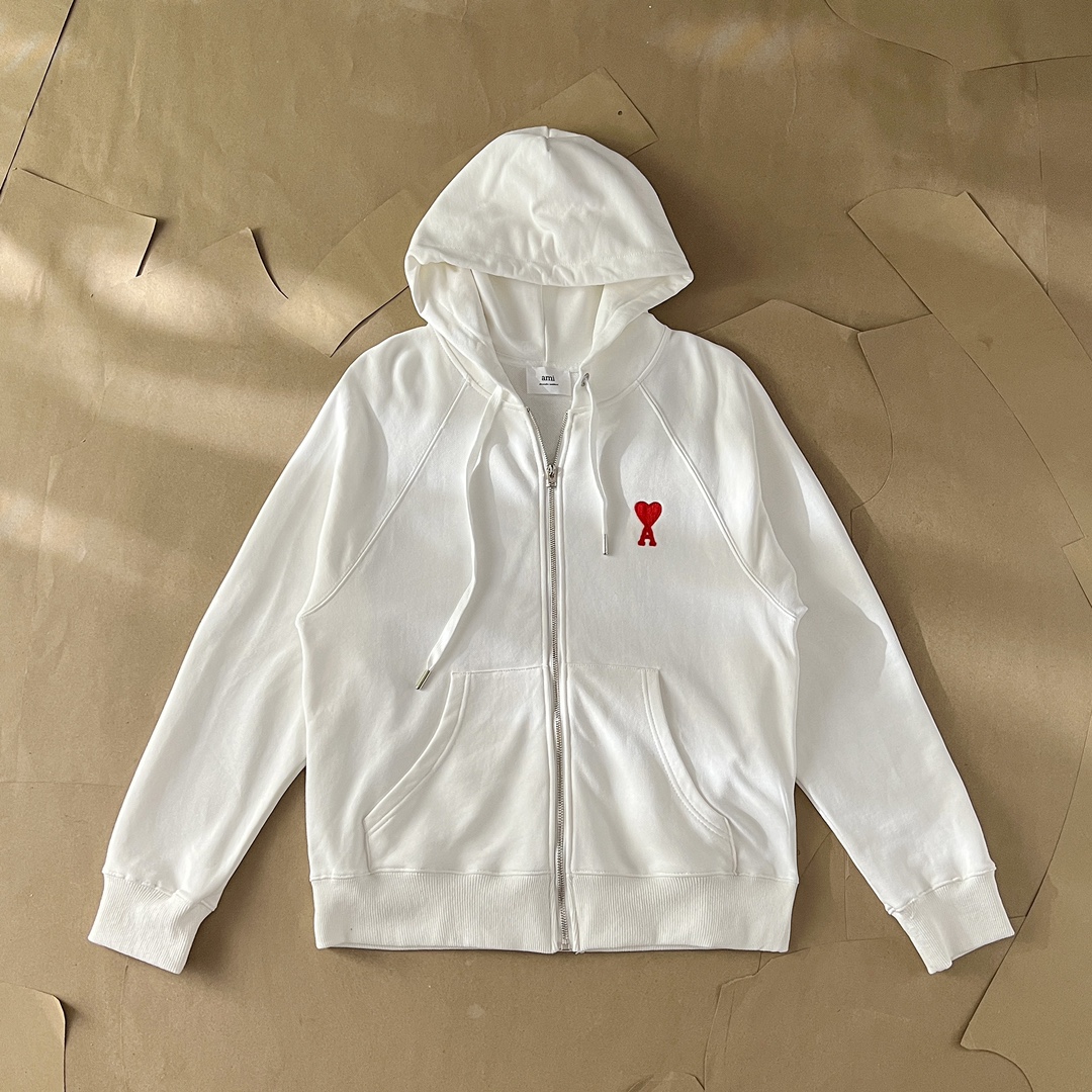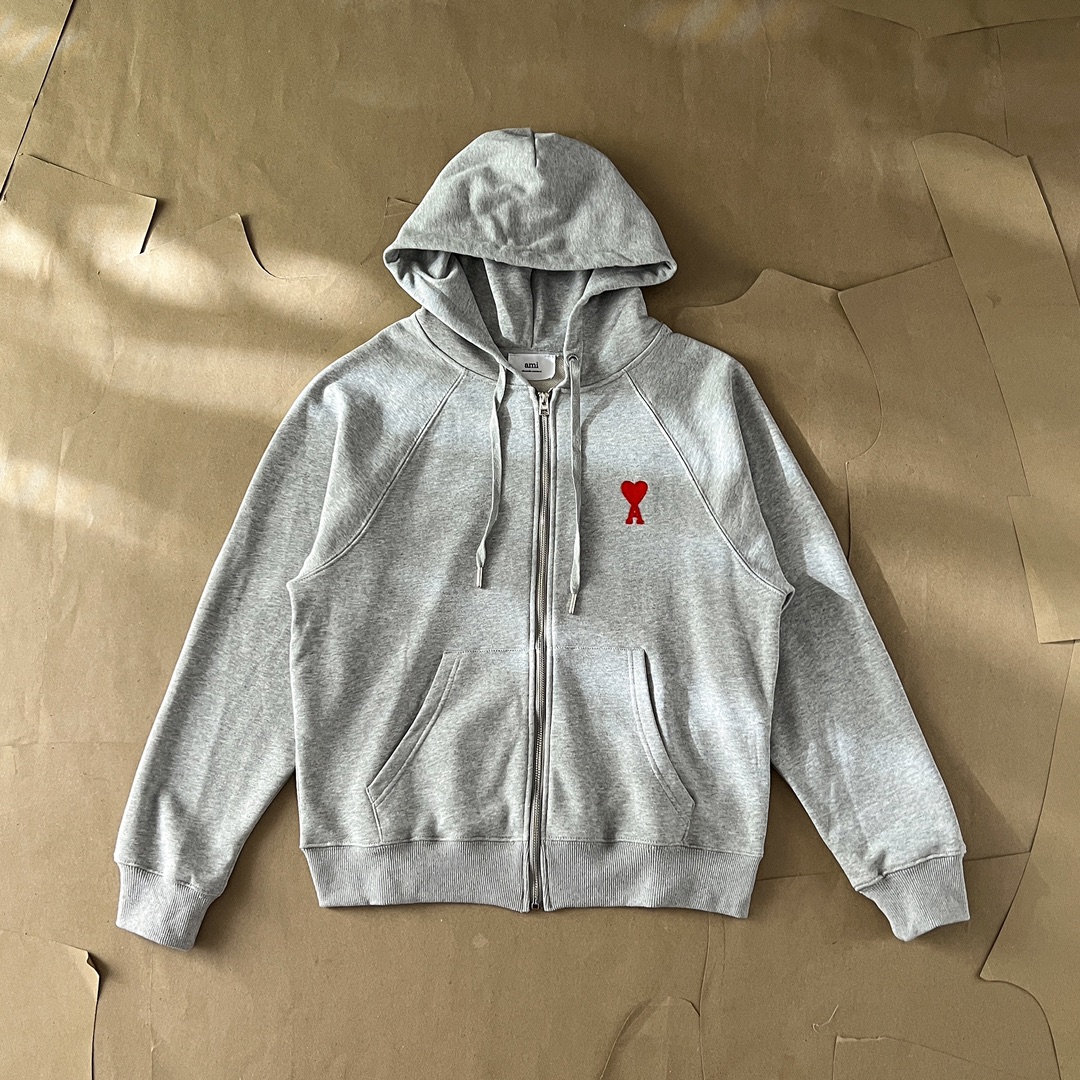 Ami Paris Ami de Coeur Zip-Up Hoodie - Unisex Relaxed Fit Sweatshirt