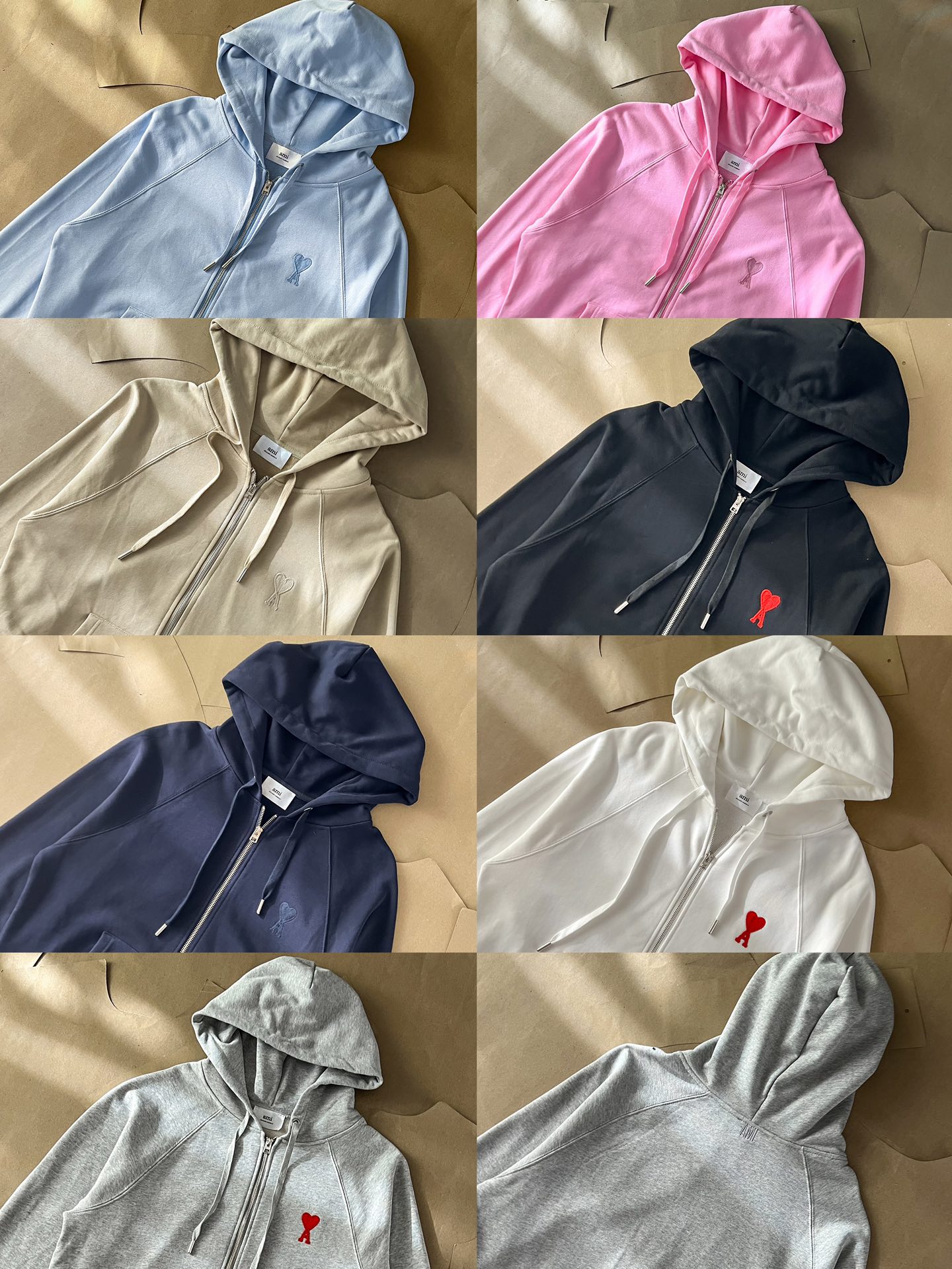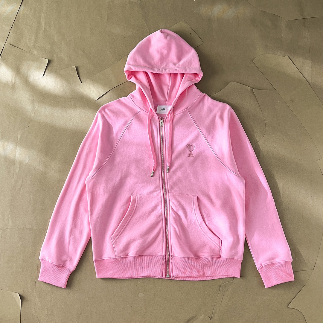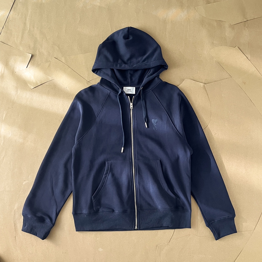 Ami Paris Ami de Coeur Zip-Up Hoodie - Unisex Relaxed Fit Sweatshirt