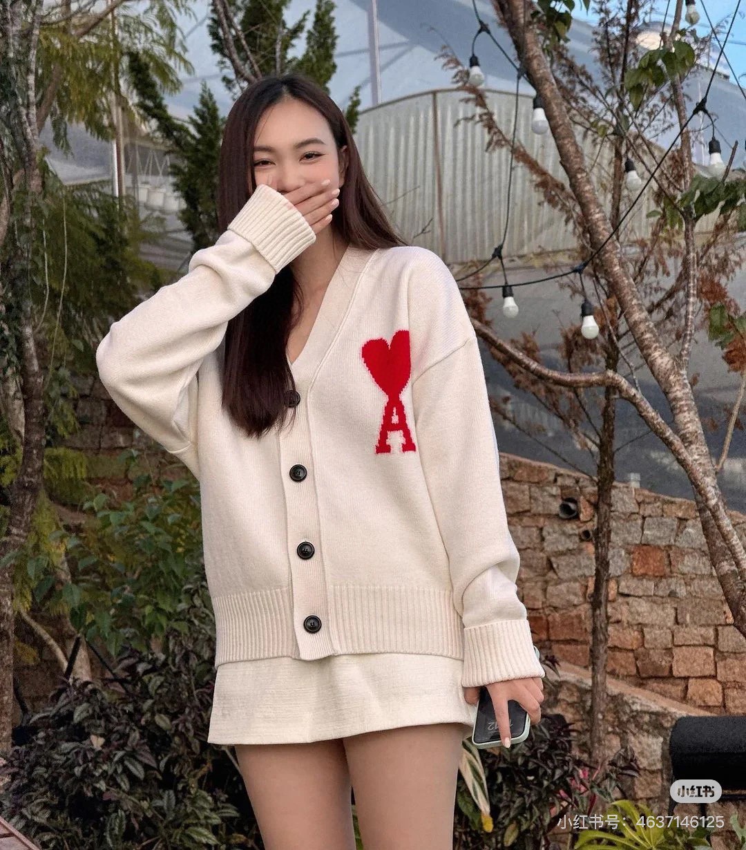Crafted with meticulous attention to detail, this AMI Paris cardigan seamlessly blends comfort and style. It's an ideal piece for layering or wearing on its own, offering versatility for various occasions.
