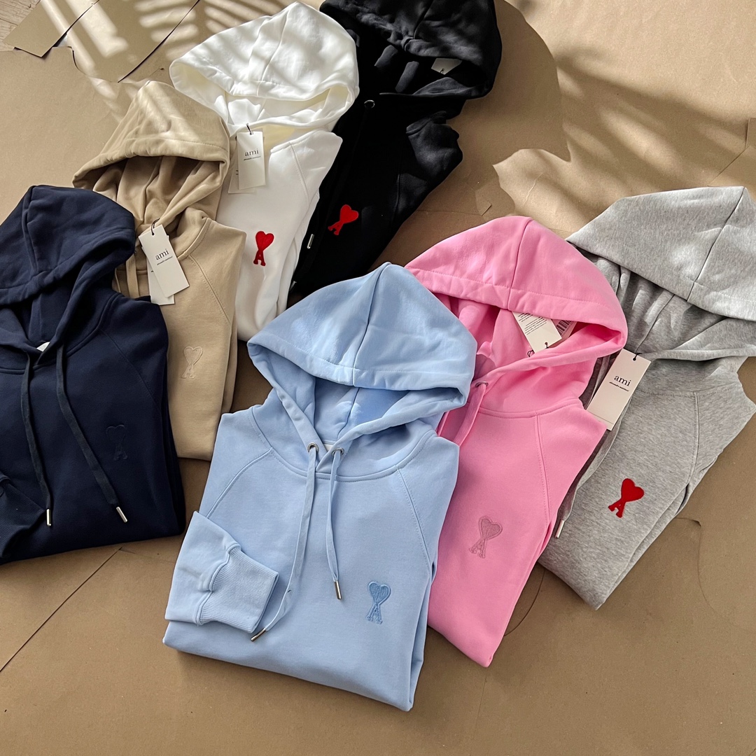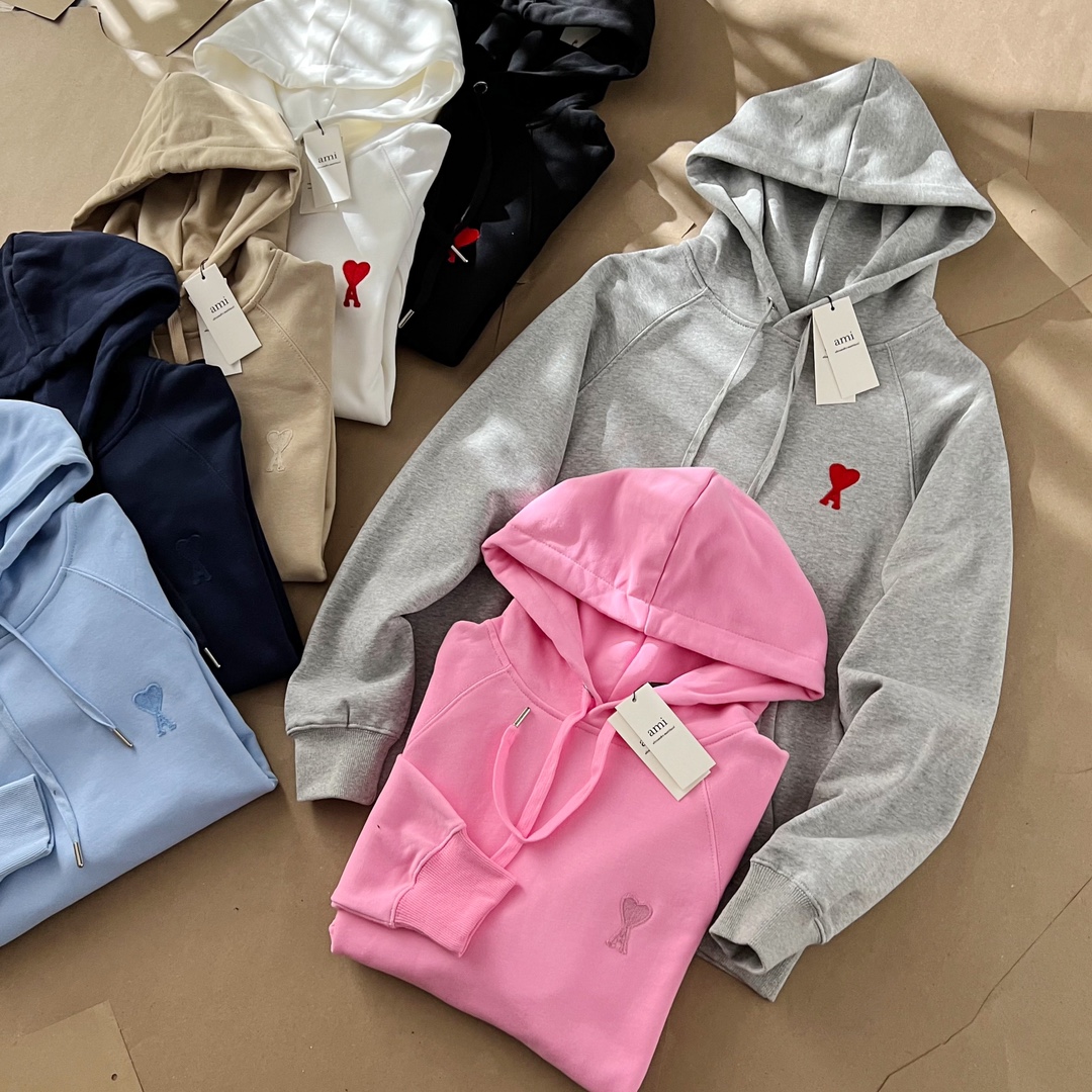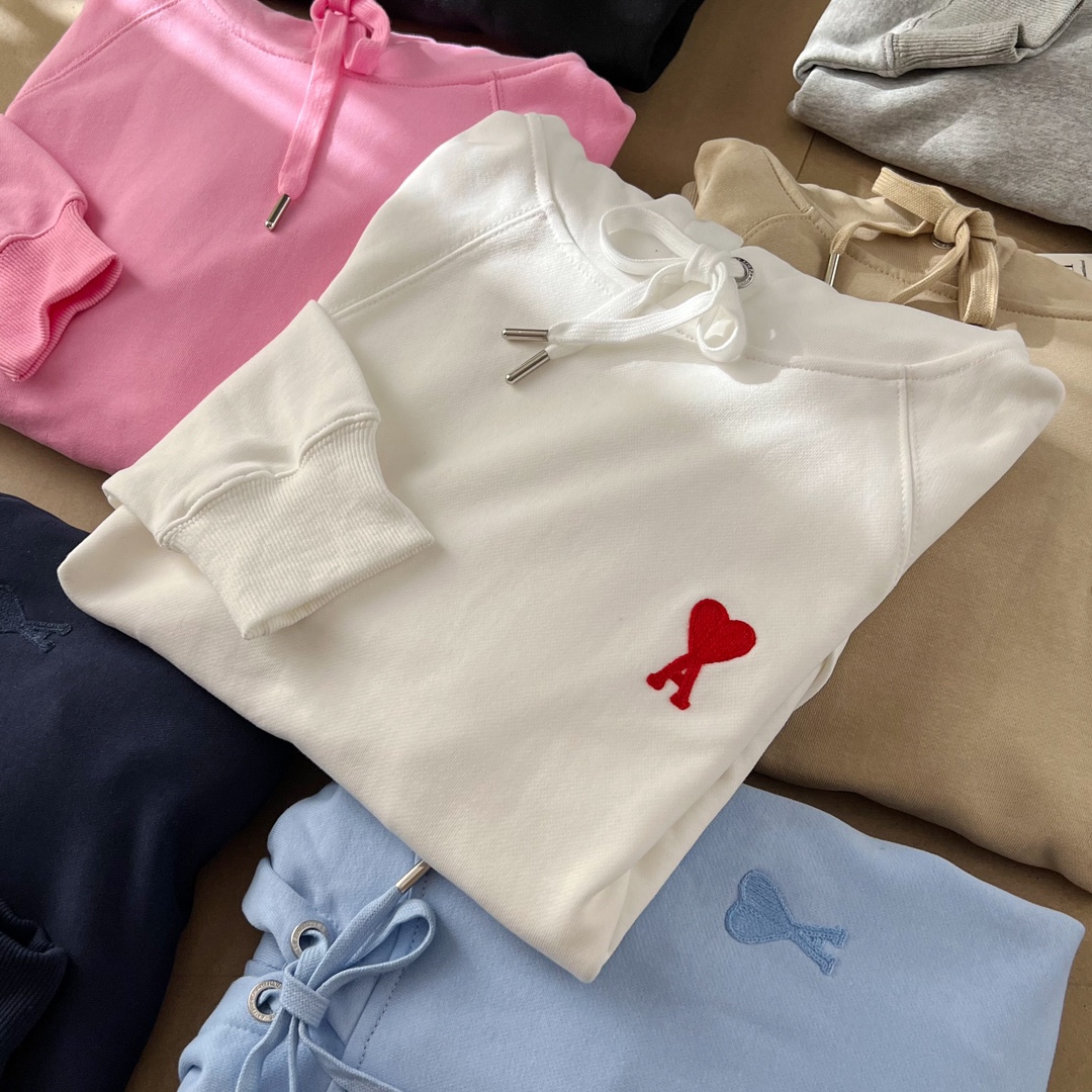 Ami Paris Heart Logo Hoodie, Unisex Style, Comfortable Fit for Every Day