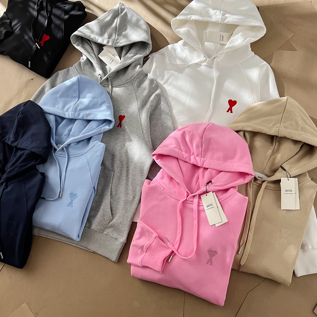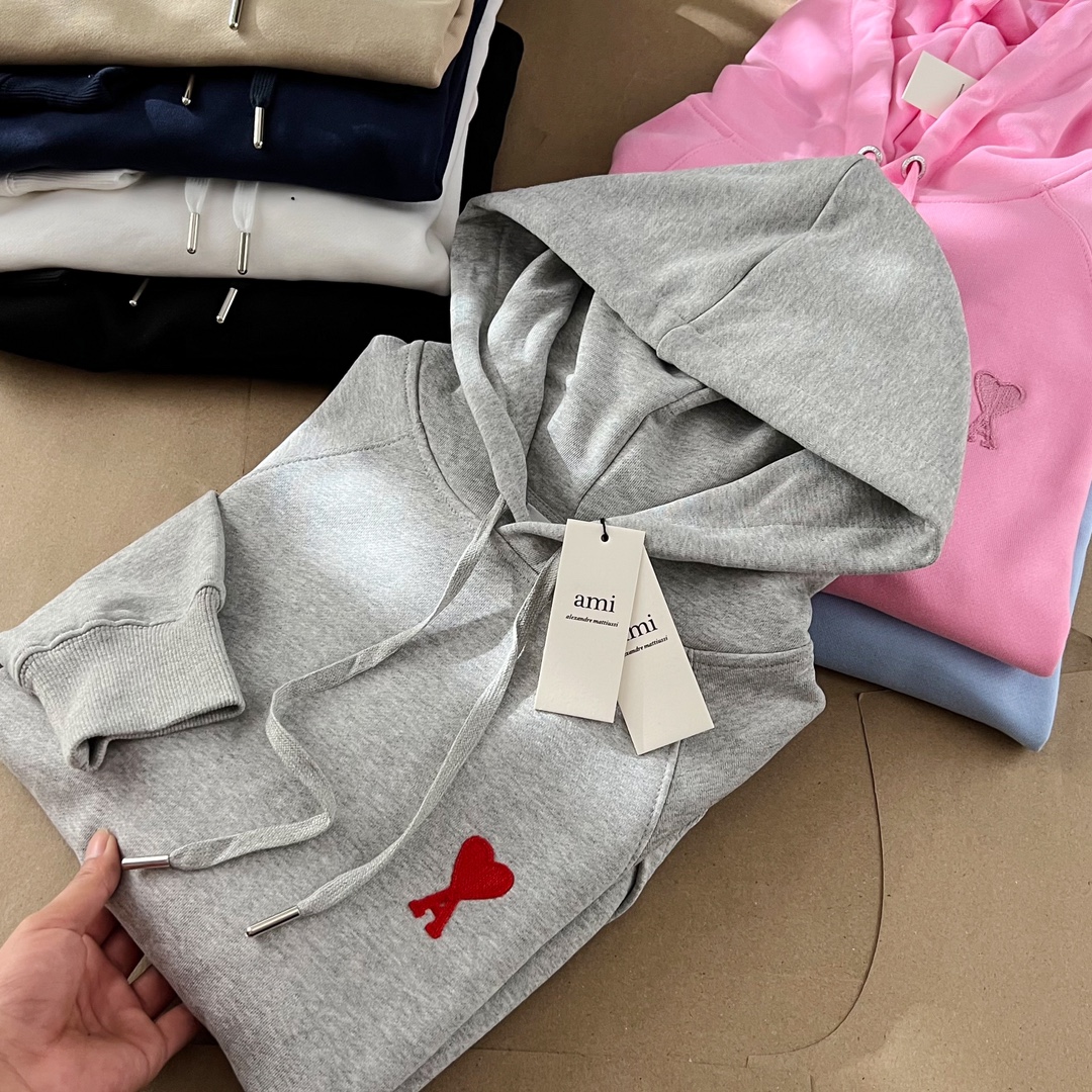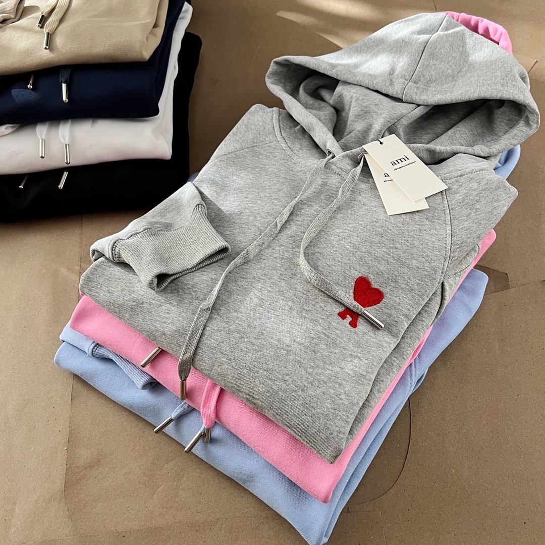 Ami Paris Heart Logo Hoodie, Unisex Style, Comfortable Fit for Every Day