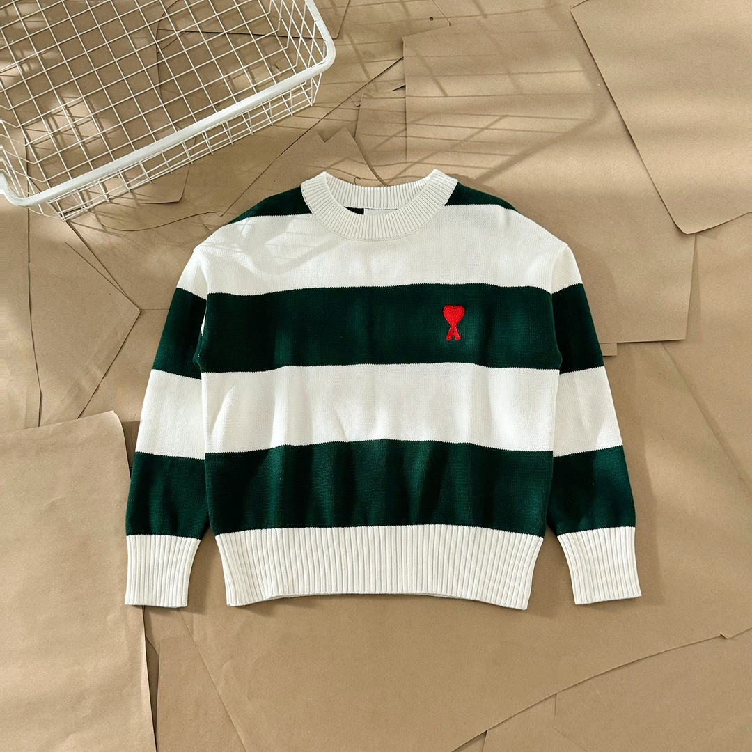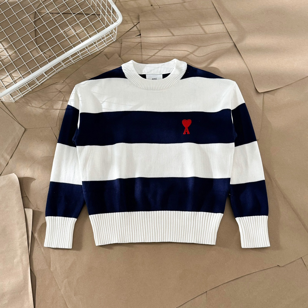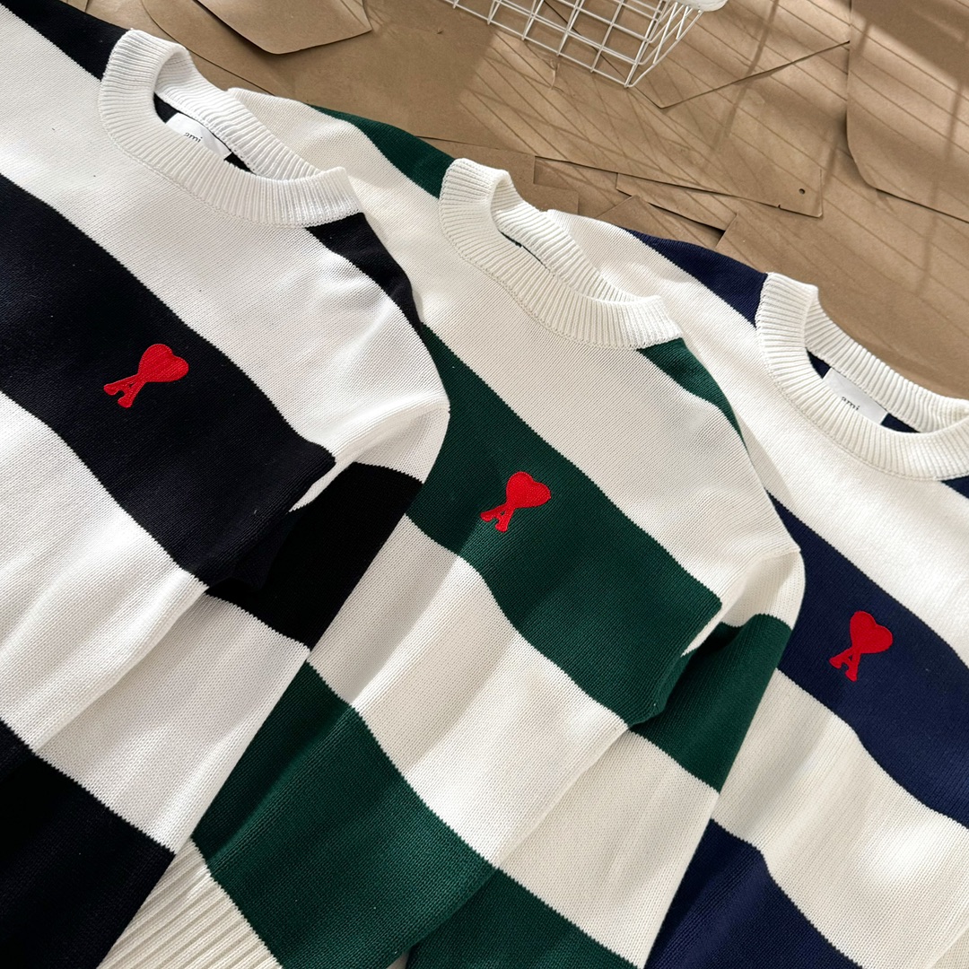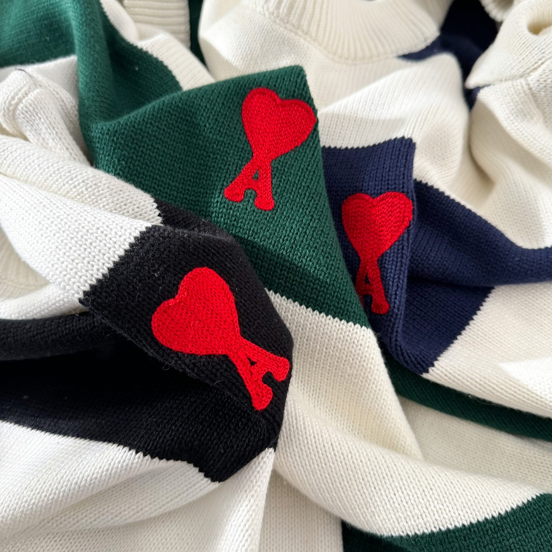 AMI Paris Striped Wool Sweater with Heart Logo - Unisex Design