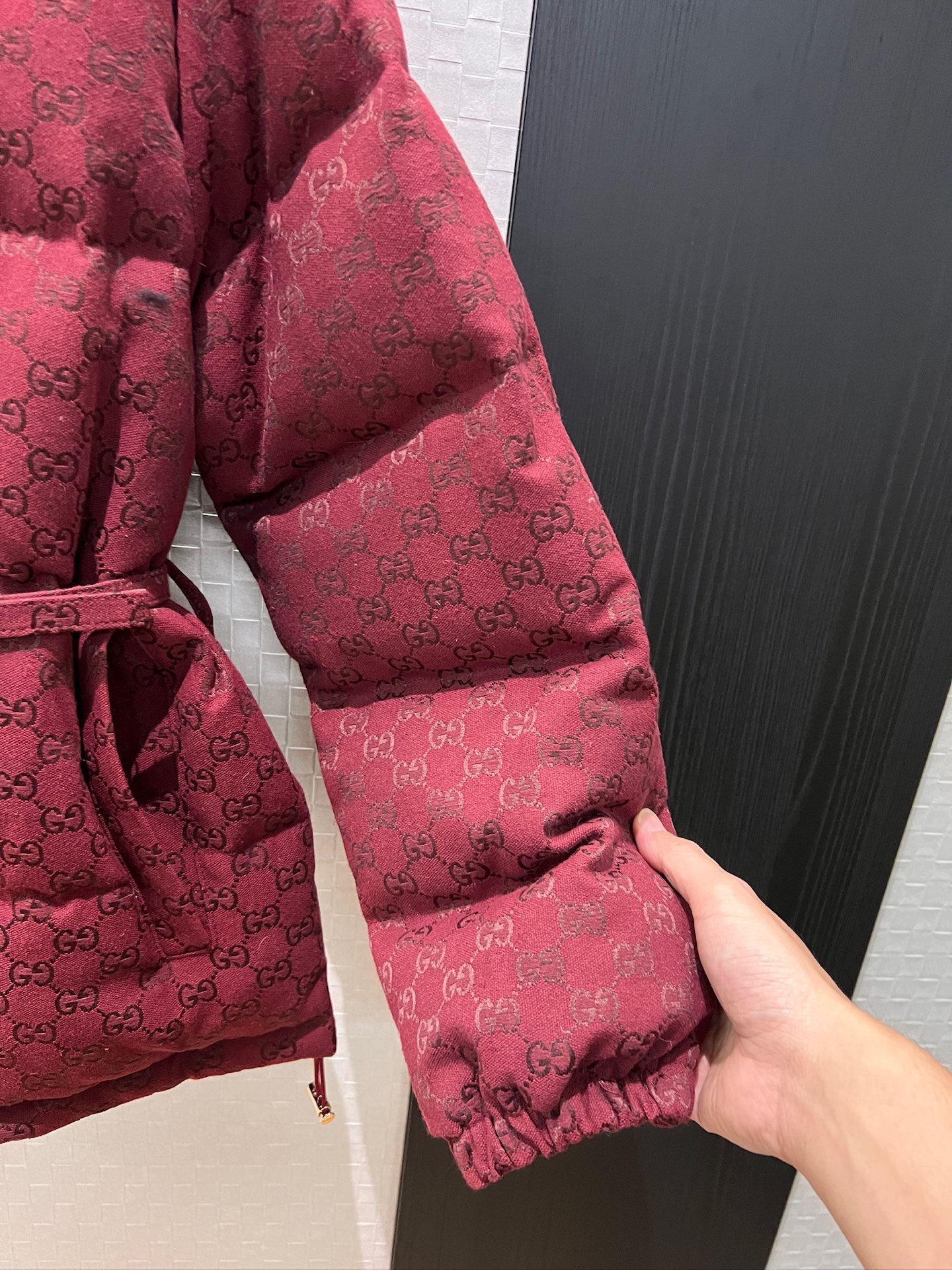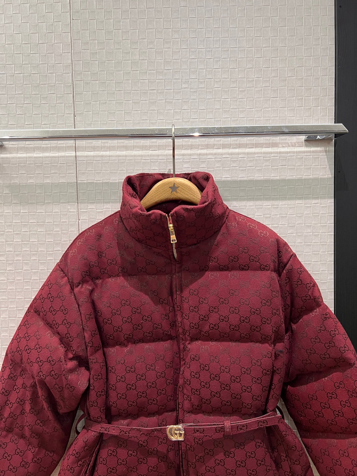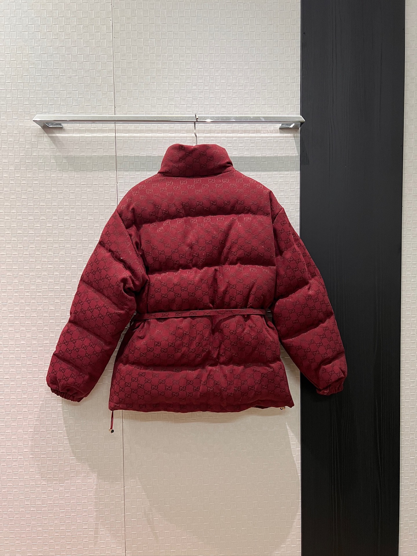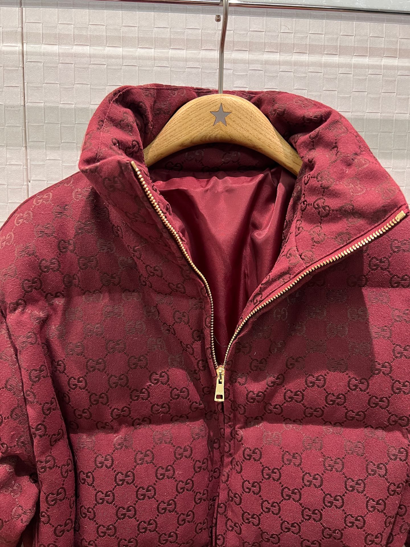 This Ancola red double G jacquard down jacket is the perfect blend of fashion and function, ensuring you stay warm and stylish all winter long.