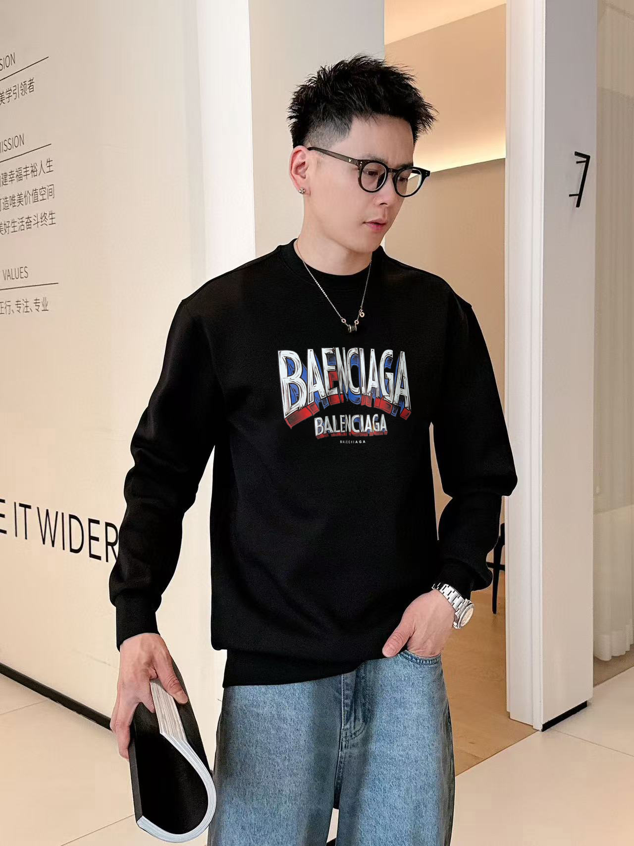 Balenciaga 2025 Crew Neck Sweatshirt Comfortable 400g Pure Cotton Fabric