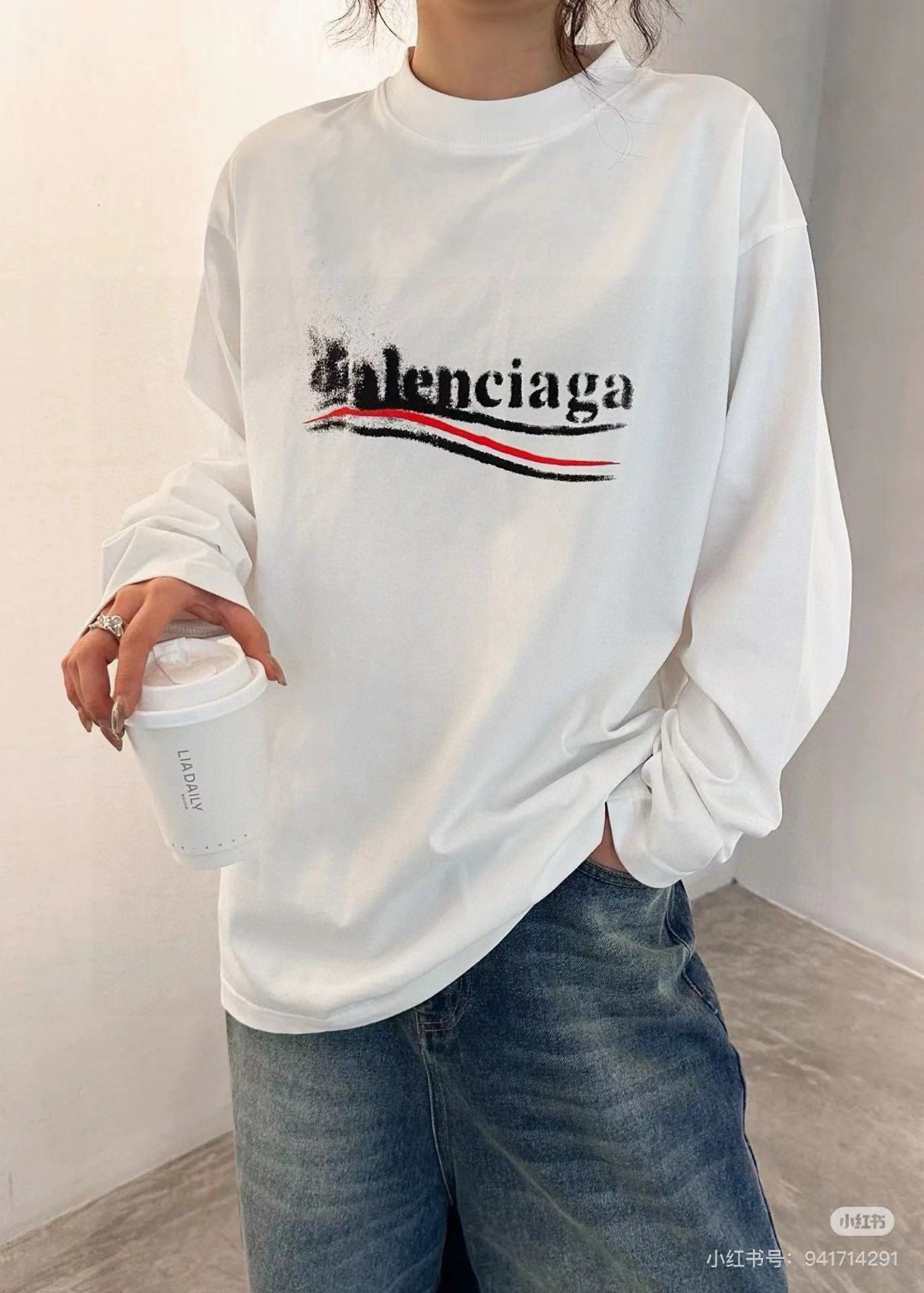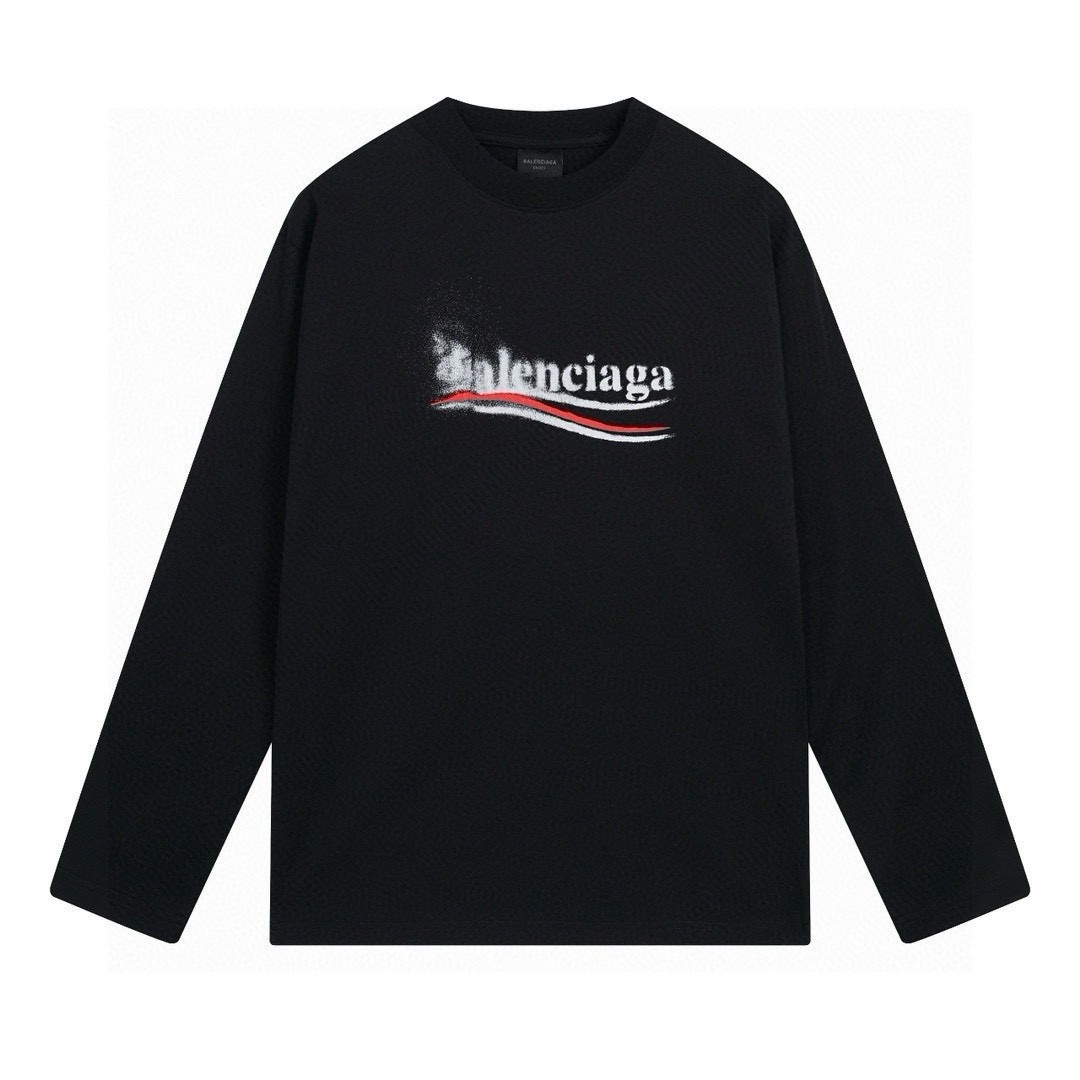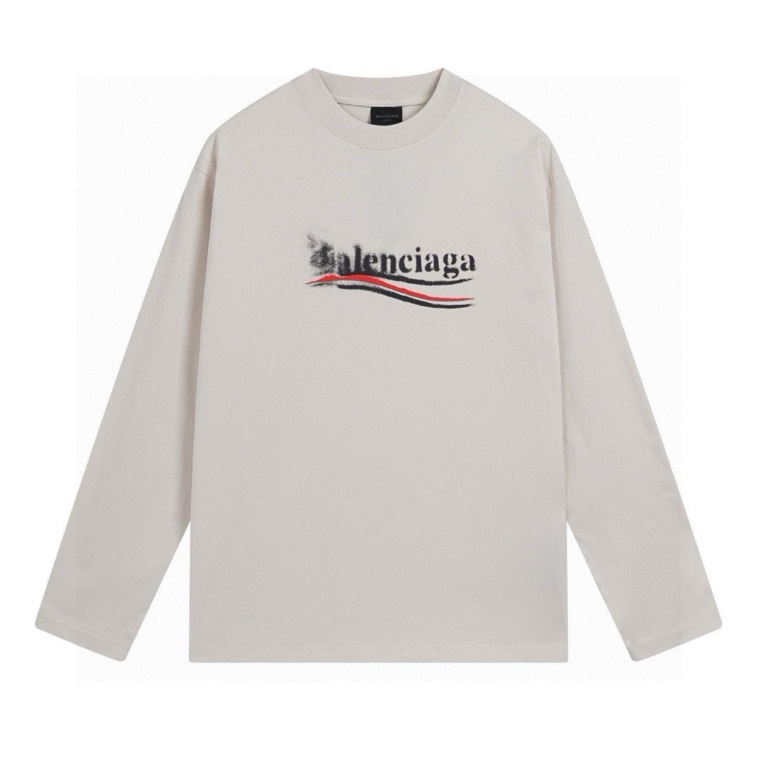 This Balenciaga long-sleeve T-shirt is a blend of luxury and casual style, perfect for those who appreciate high-end streetwear. The unique Coca-Cola wave graffiti print sets it apart, making it a statement piece for any wardrobe.