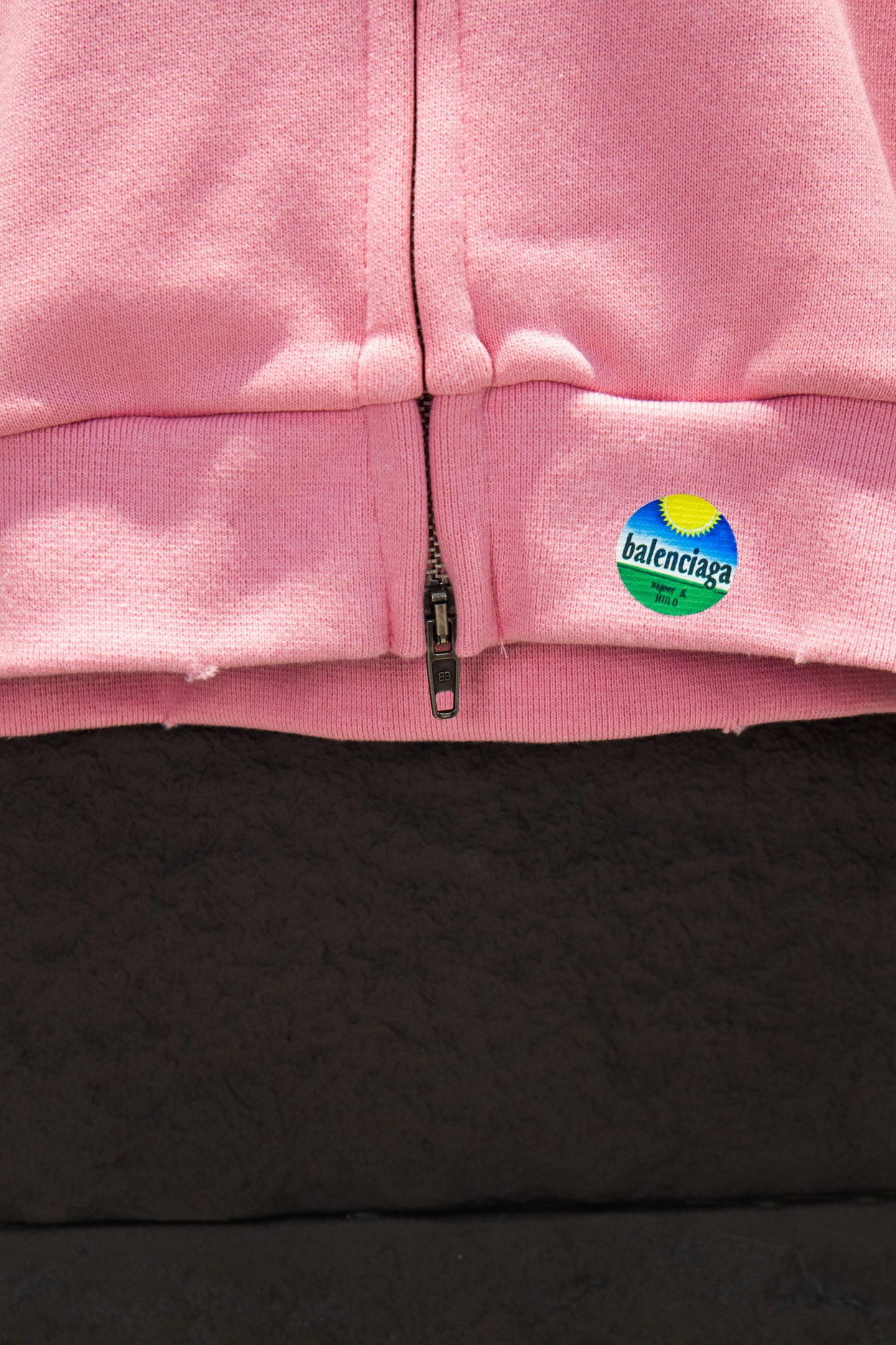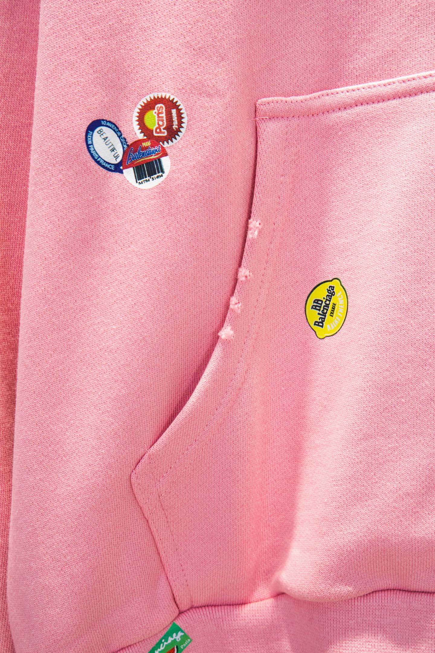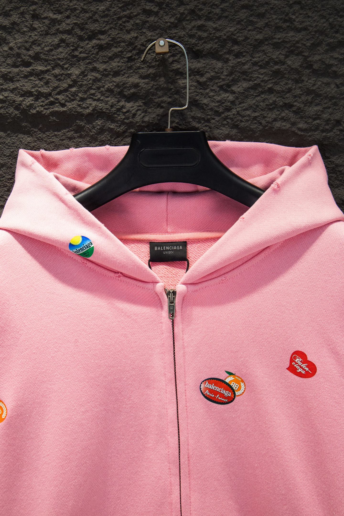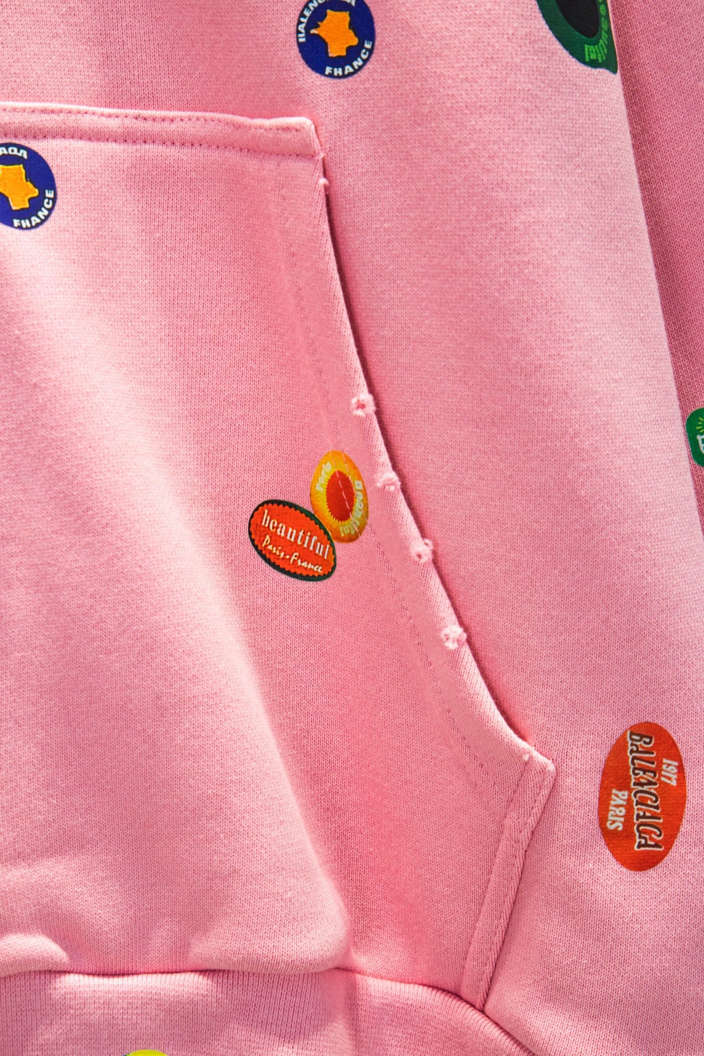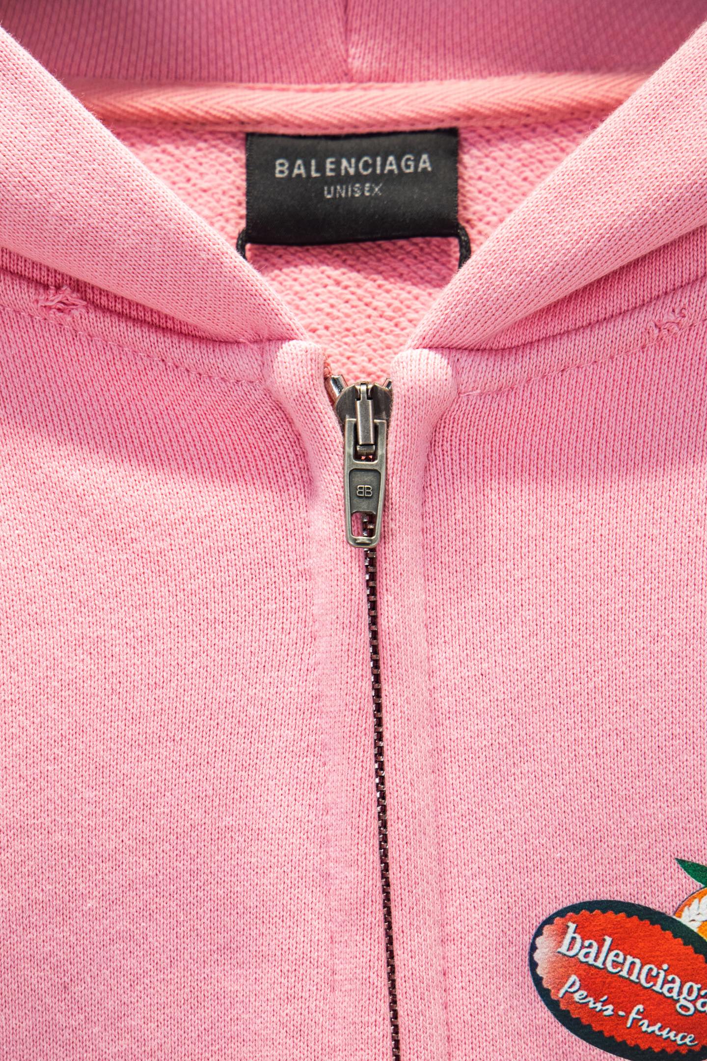 Balenciaga Inspired Pink Fruit Print Oversized Hooded Sweatshirt with Zipper