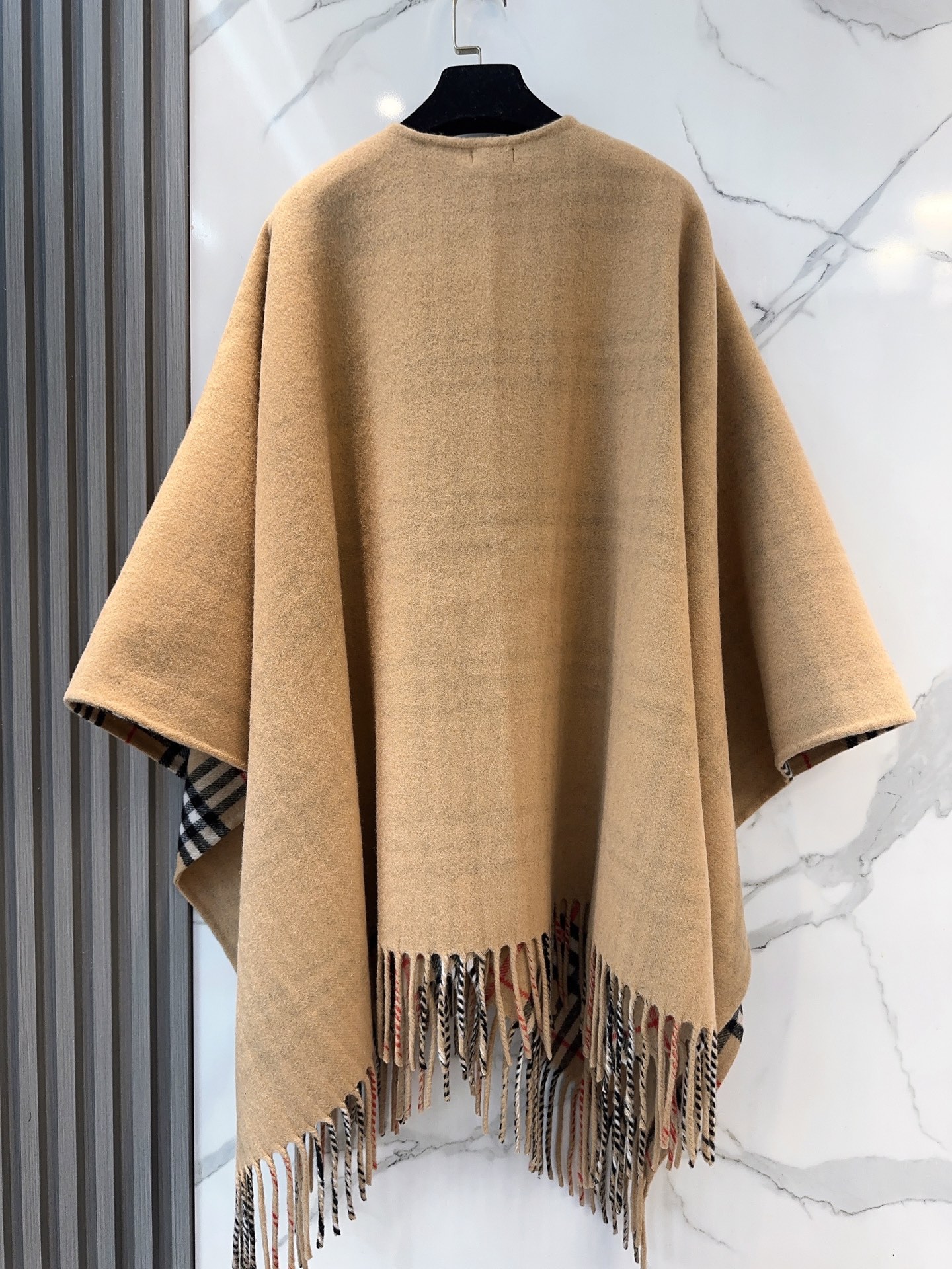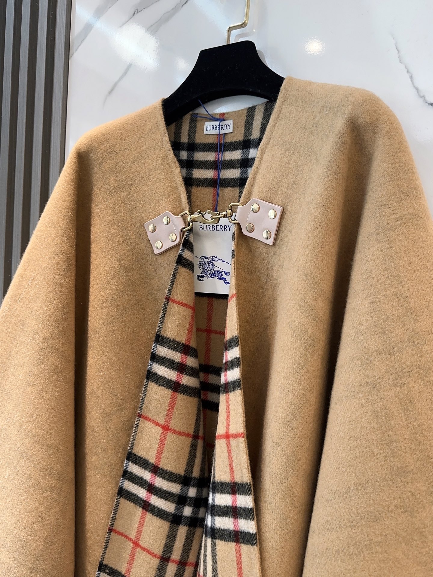 This BURBERRY wool cape shawl is a statement piece that combines luxury, style, and versatility. Whether you're dressing up for a special occasion or adding a touch of elegance to your everyday look, this cape is sure to turn heads.