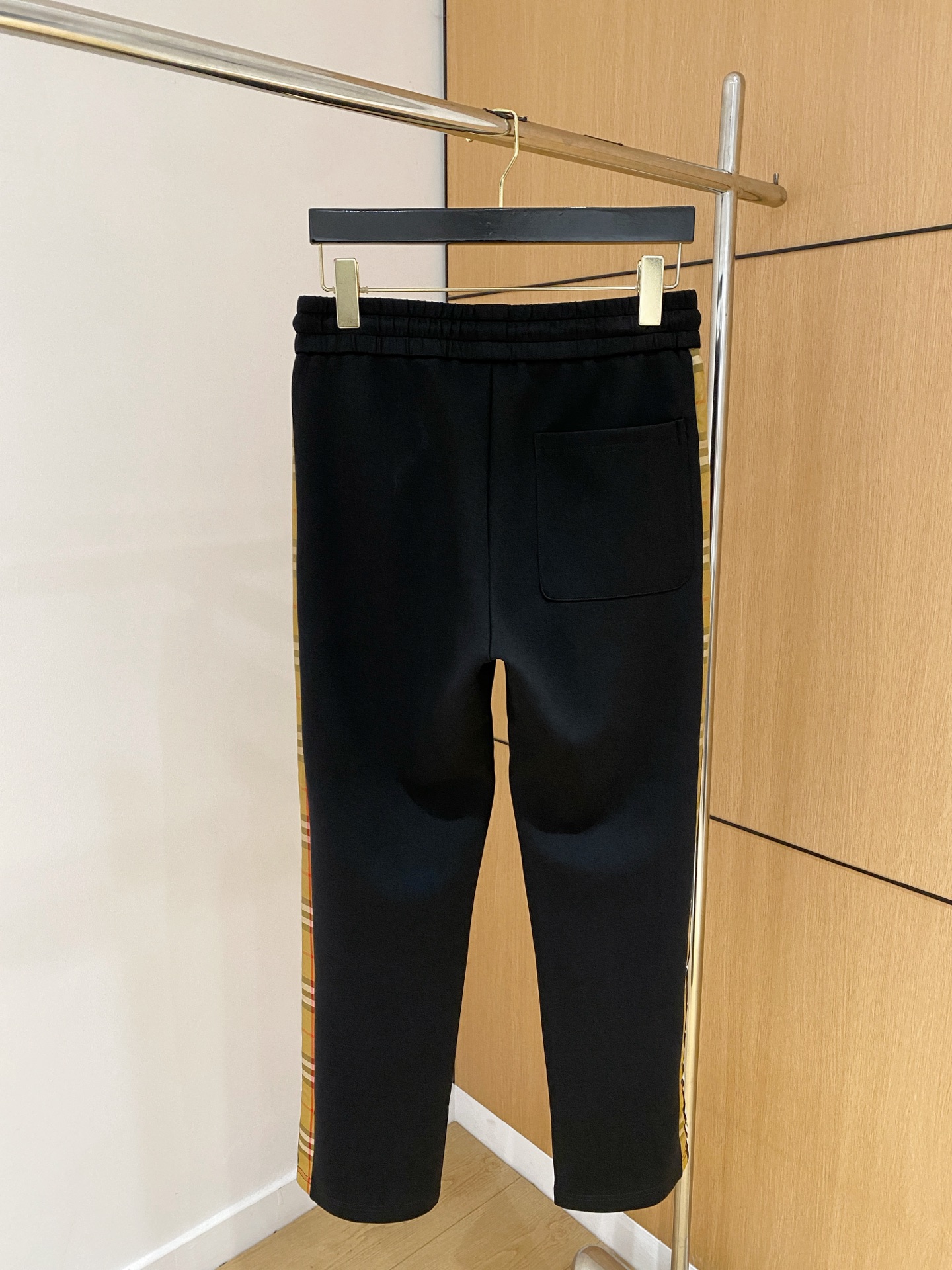 Burberry Men's Black Cotton Blend Sweatpants with Checkered Side Stripe