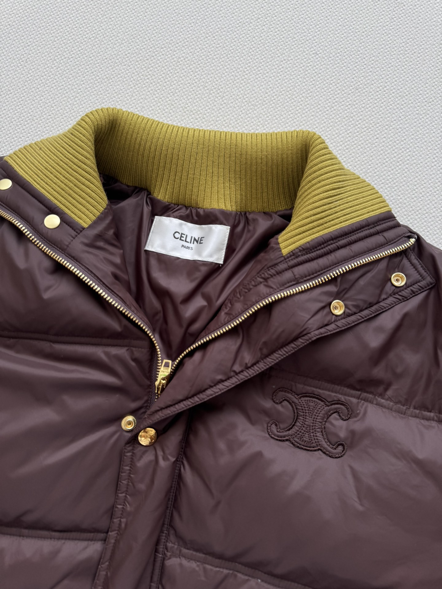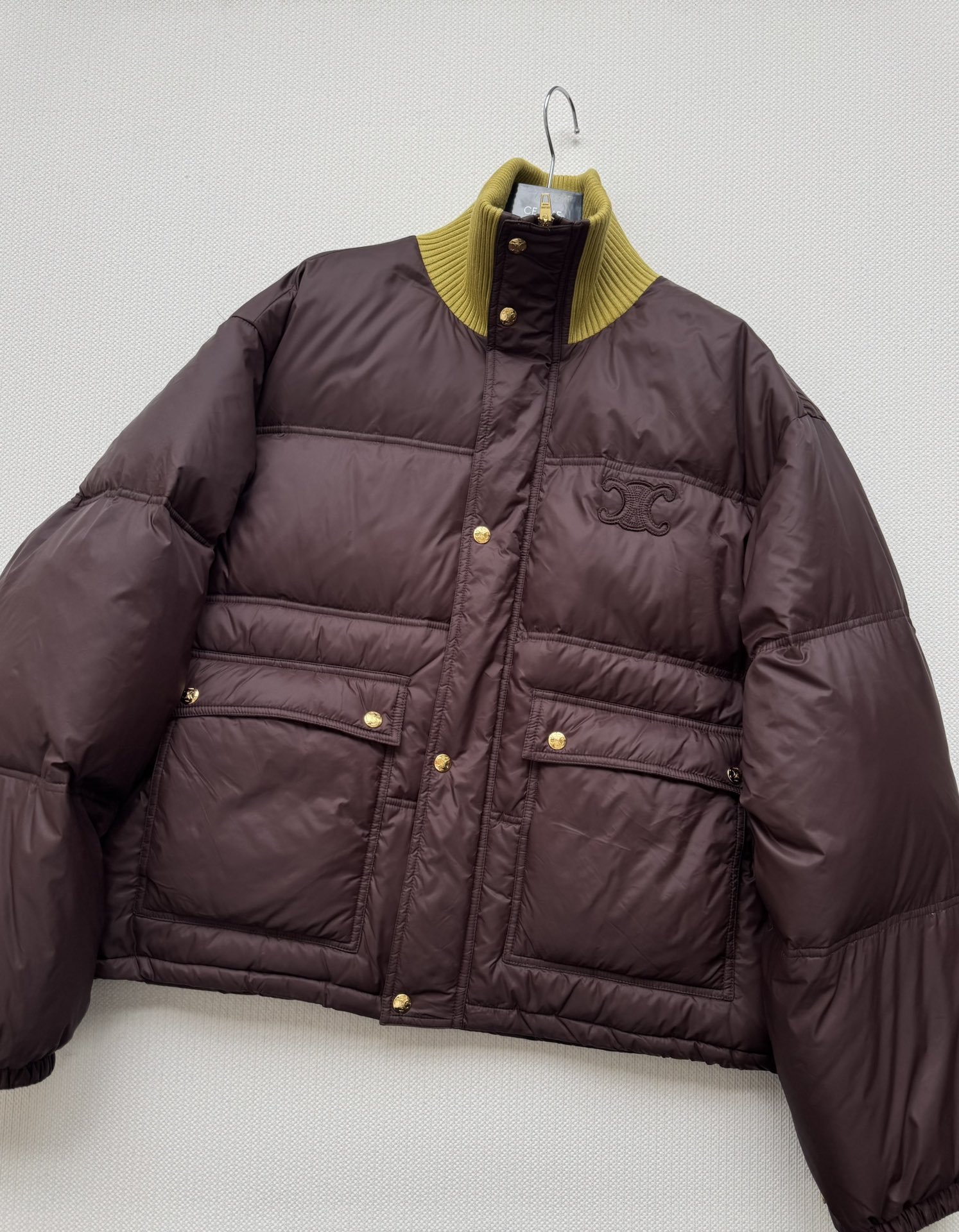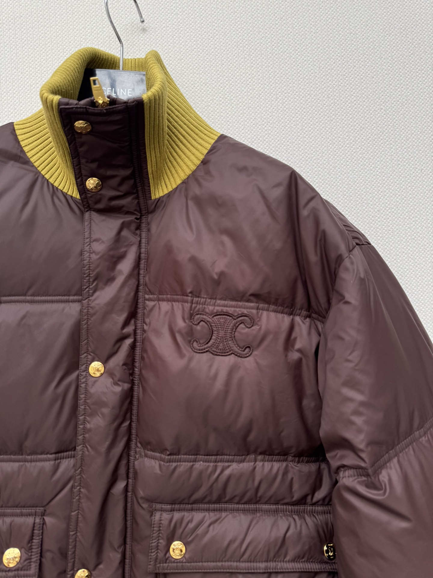 Celine 25FW Color Block Knitted Collar Down Jacket - Luxurious & Warm