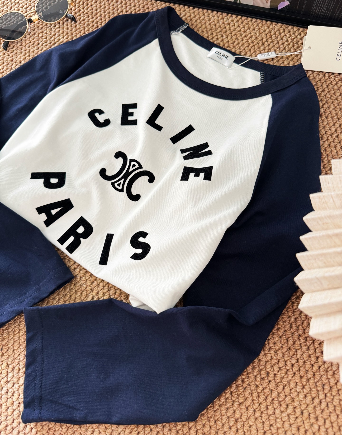 Elevate your casual style with this Celine logo print raglan sleeve T-shirt.Soft cotton blend for ultimate comfort. Perfect for everyday wear.