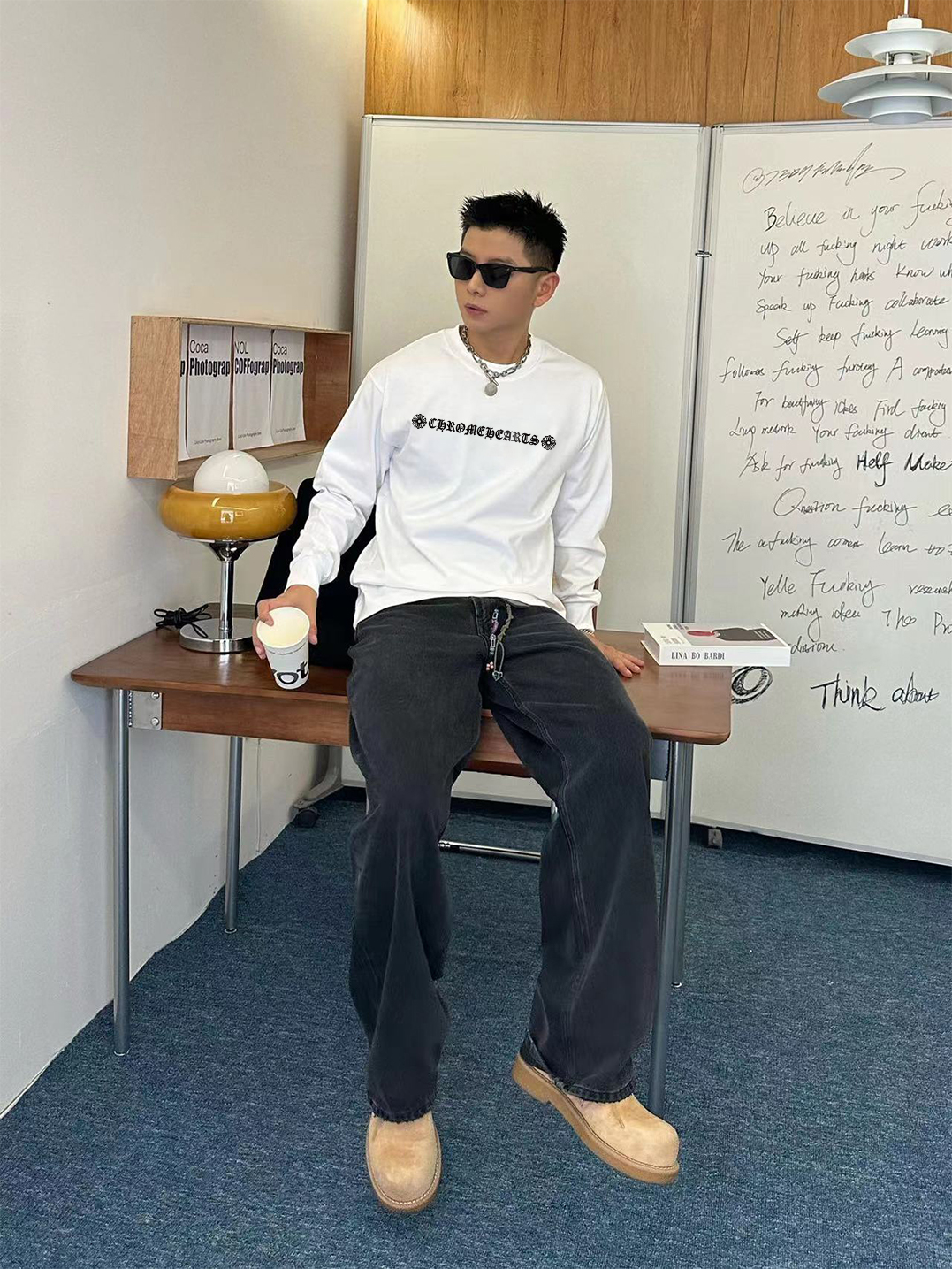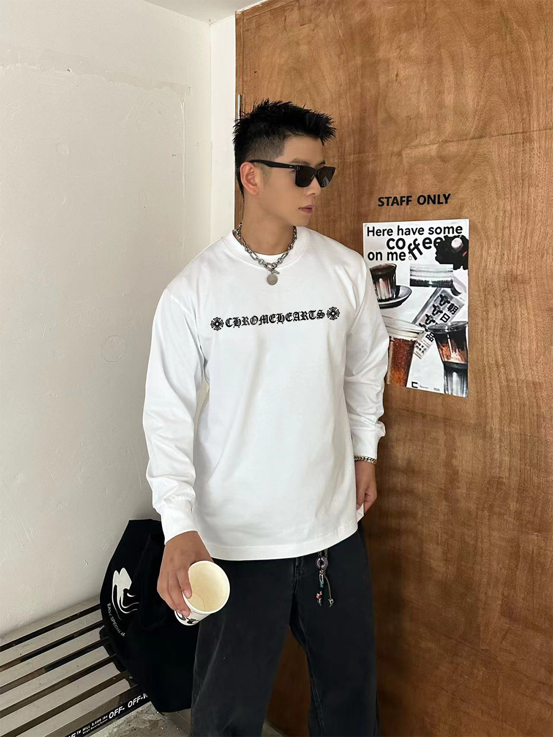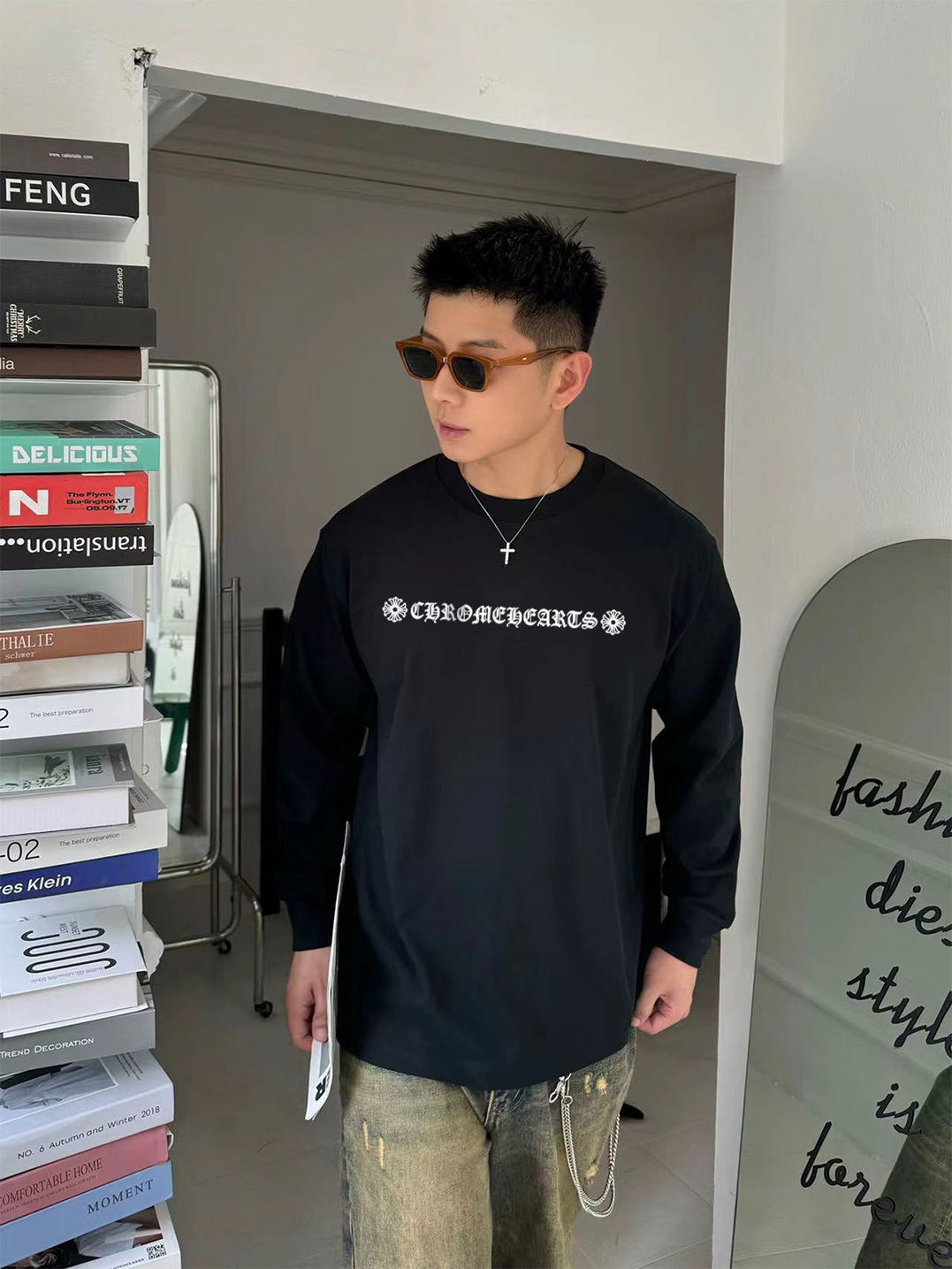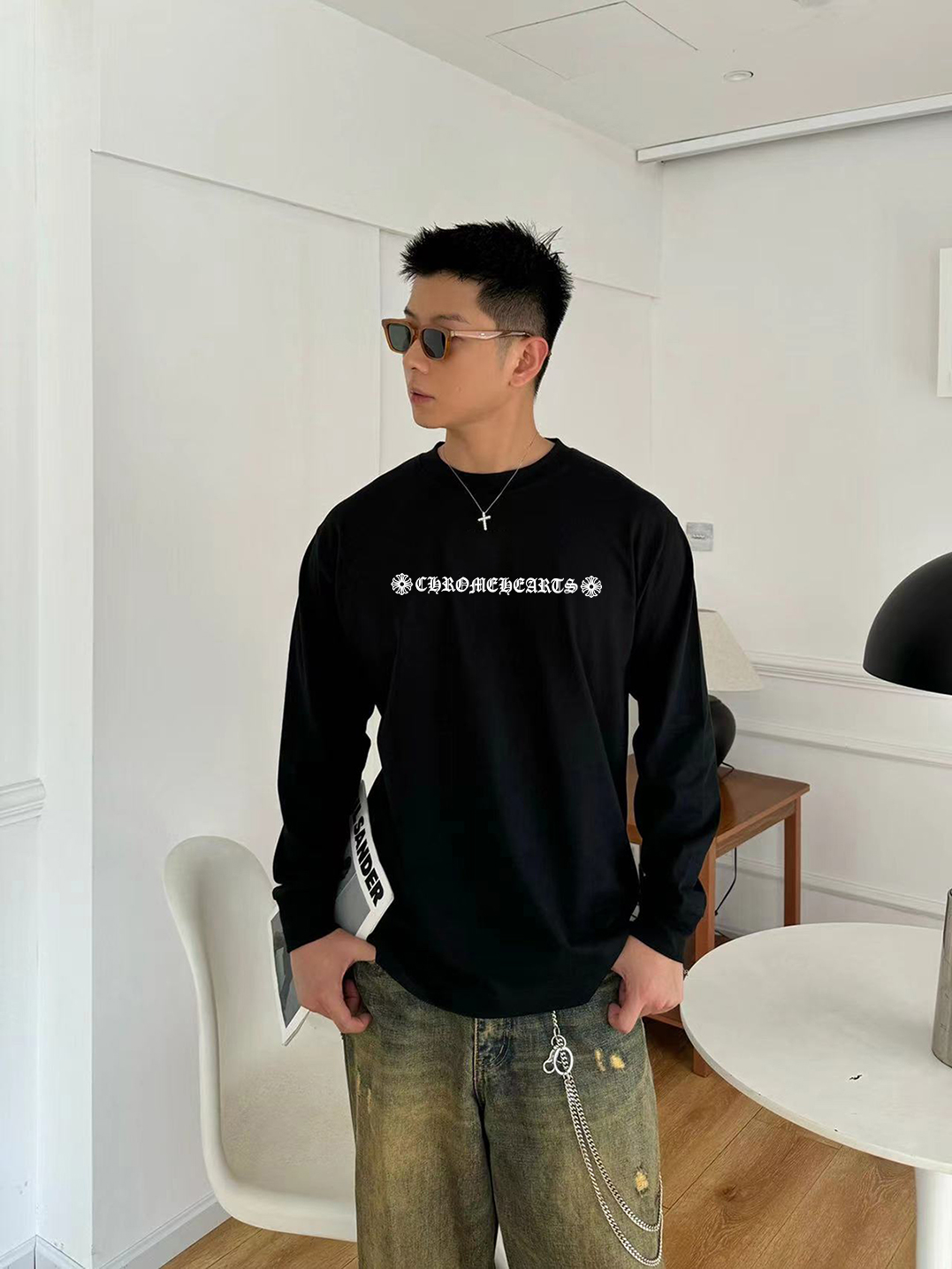 This Chrome Hearts long-sleeve T-shirt is a versatile addition to any wardrobe, blending high-end design with everyday comfort.