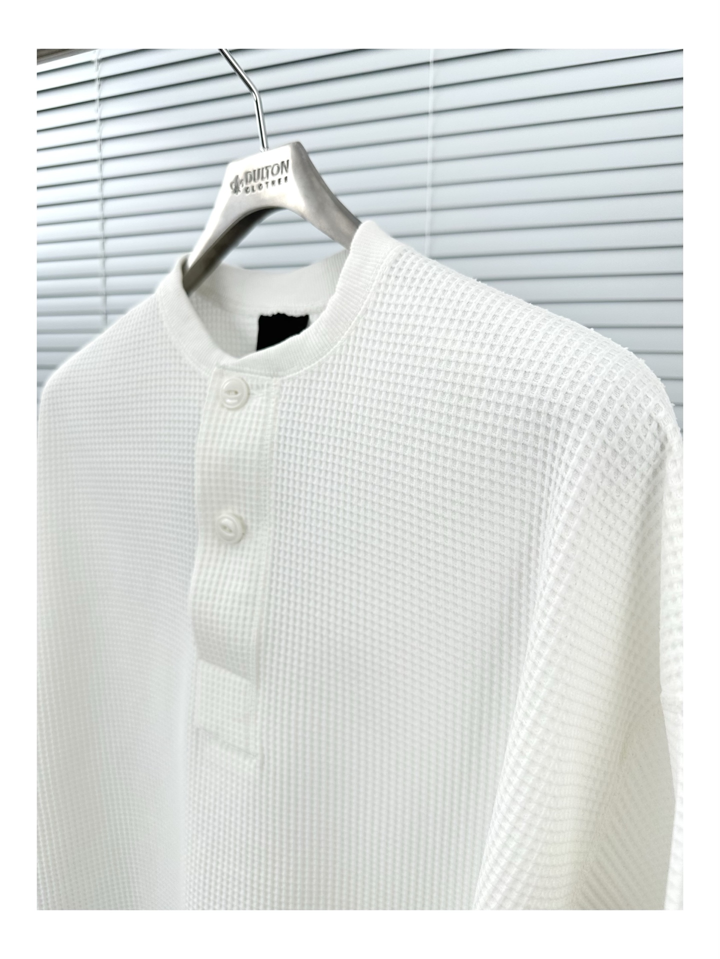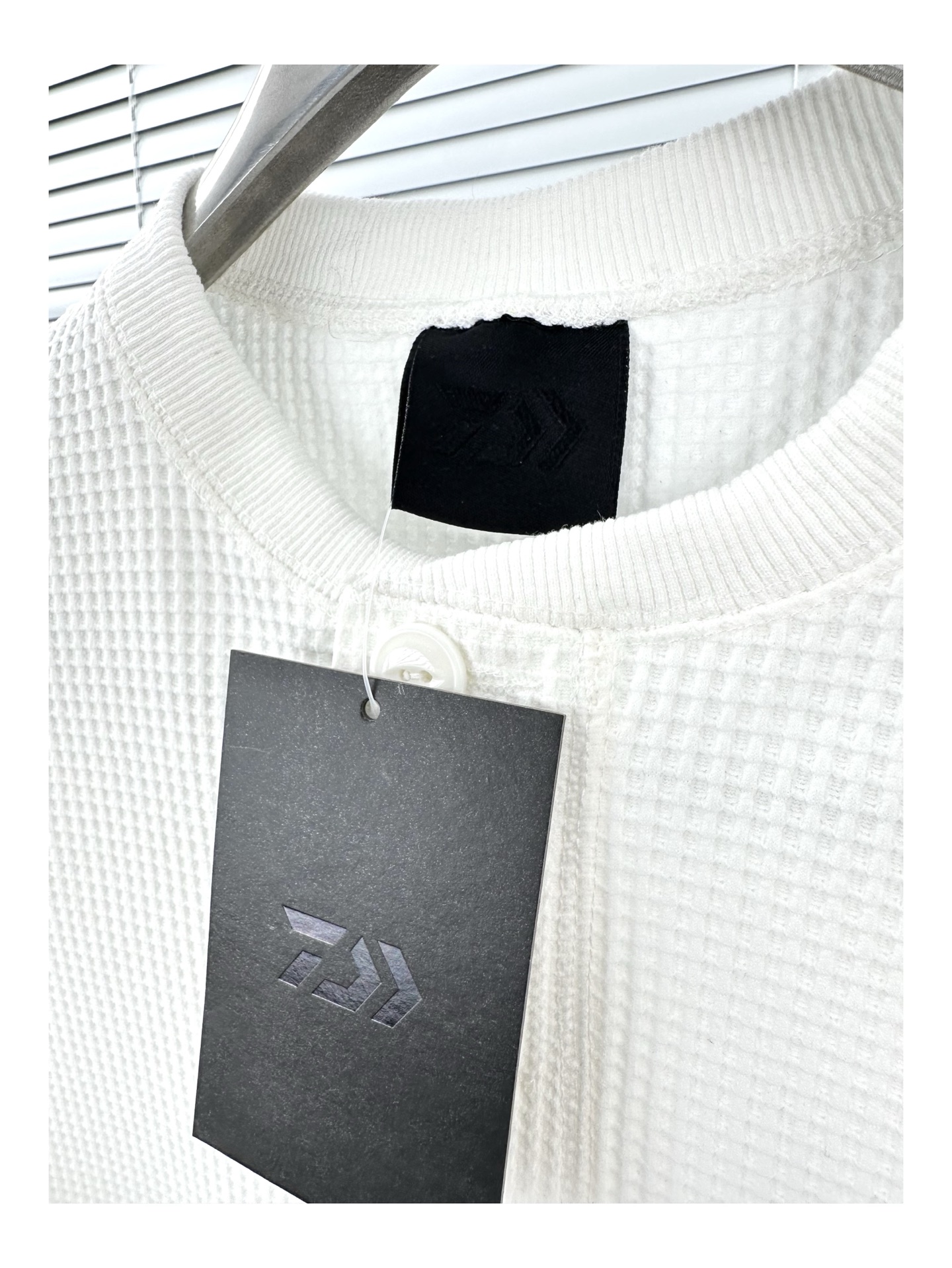 Experience comfort and style with this Daiwa Pier39 Henley. Features waffle fabric, a classic Henley collar, and a relaxed fit, perfect for layering or wearing solo.