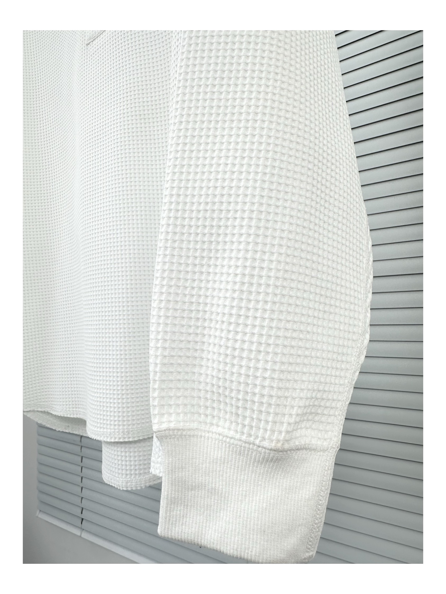 - Made with 280g waffle fabric for a unique texture and breathability.