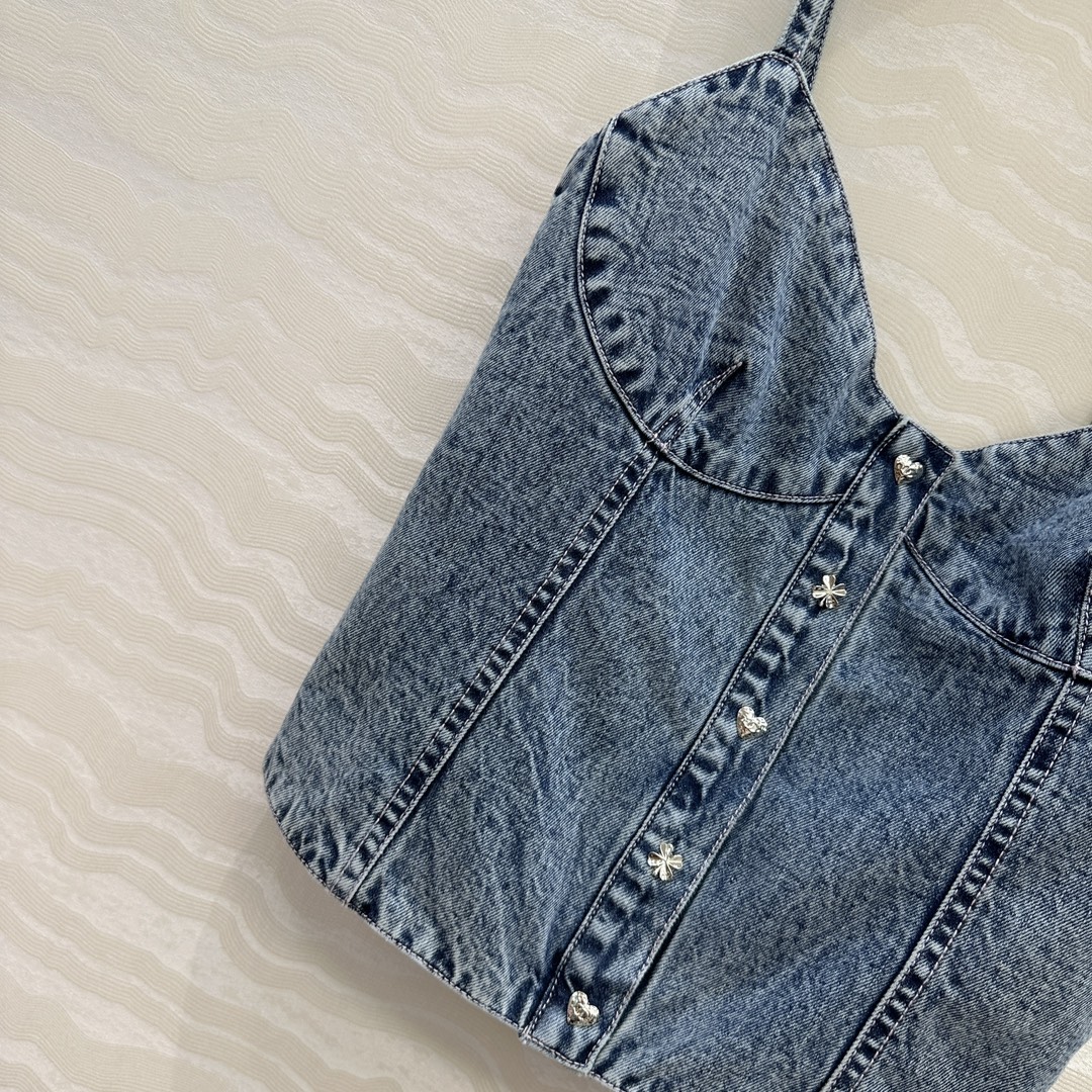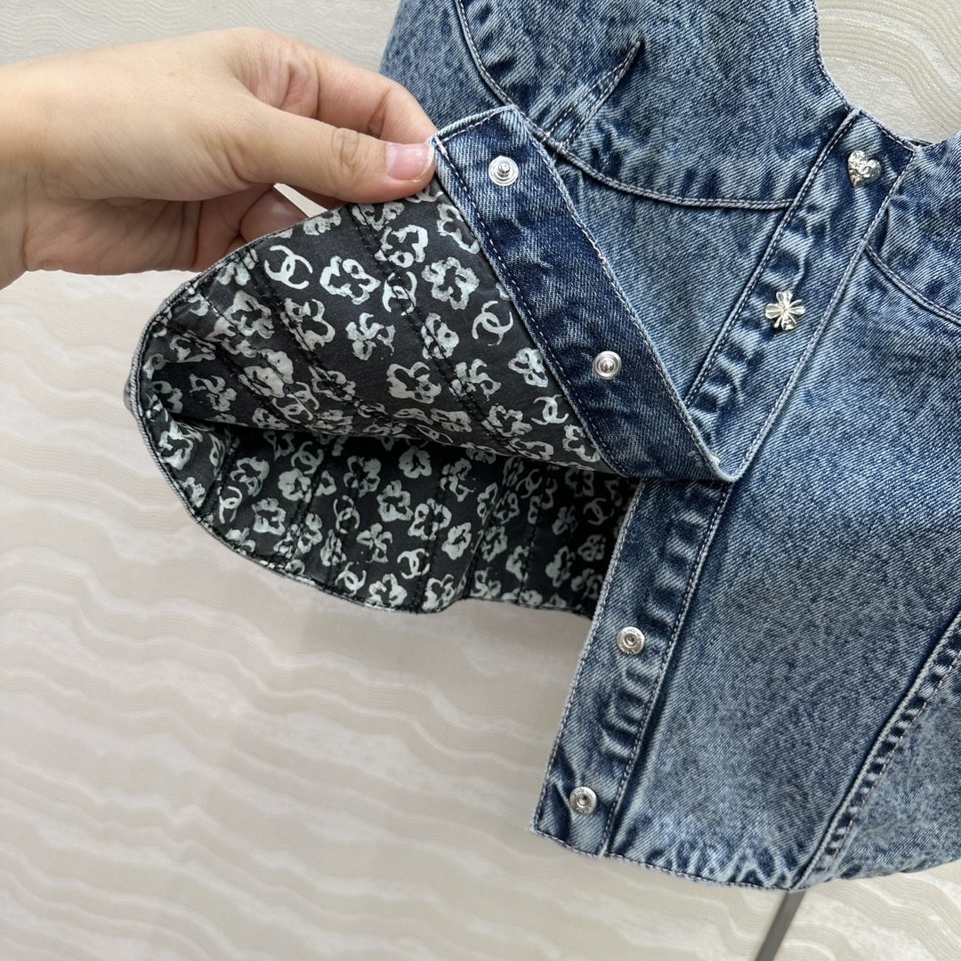 This denim bustier corset top is designed to enhance your silhouette and add a touch of vintage charm to your wardrobe.