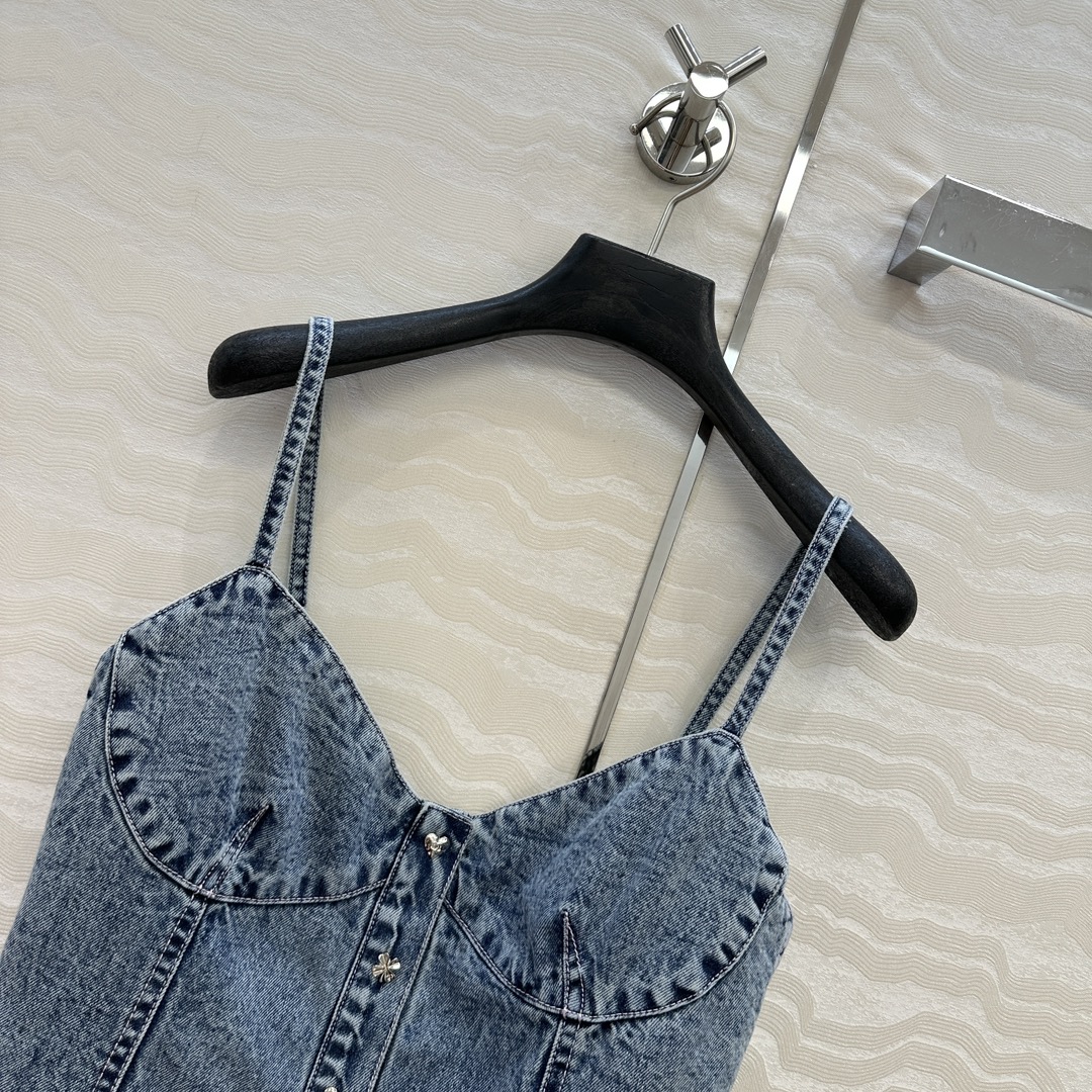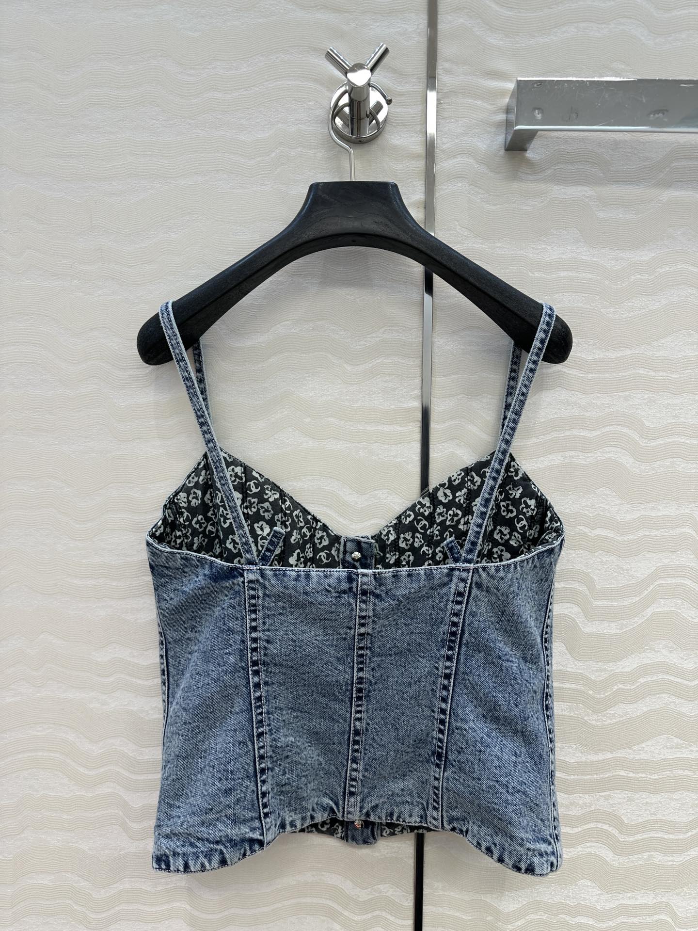 This denim corset top is a versatile piece that can be styled in numerous ways. Pair it with high-waisted jeans for a casual look.